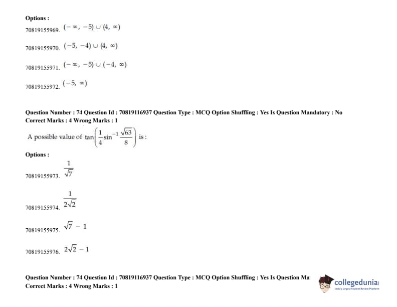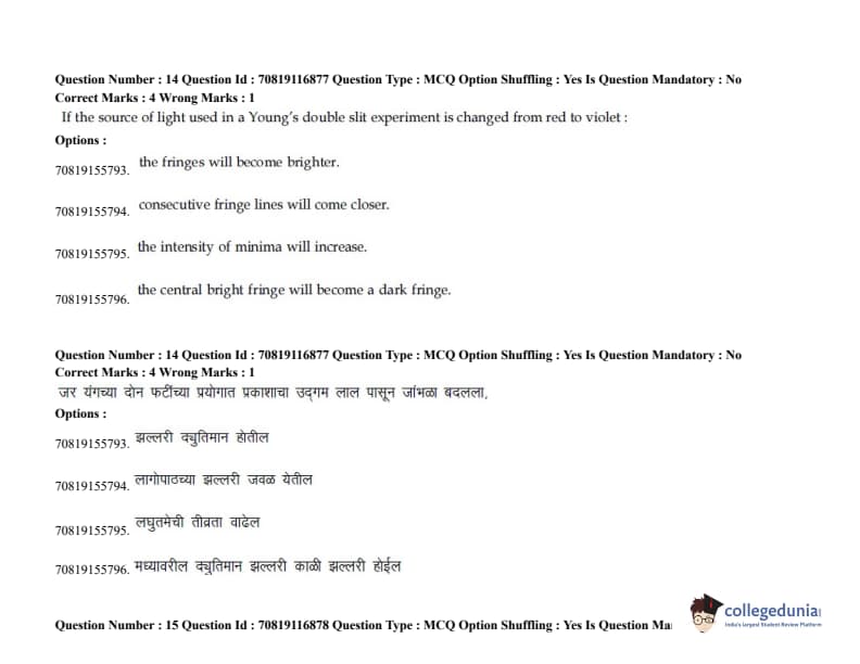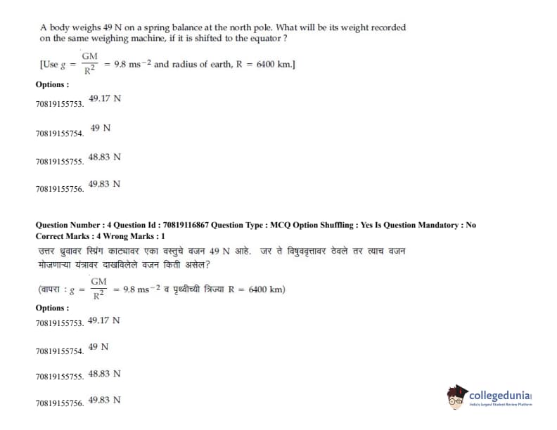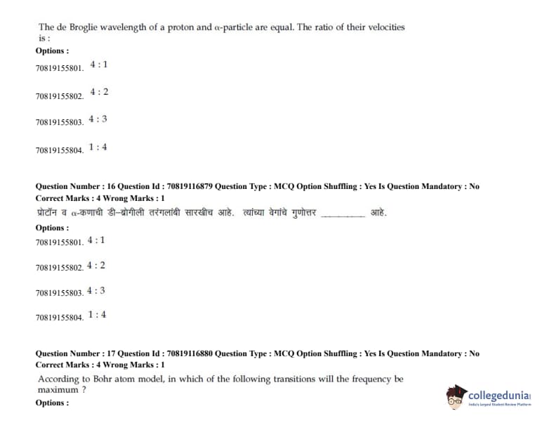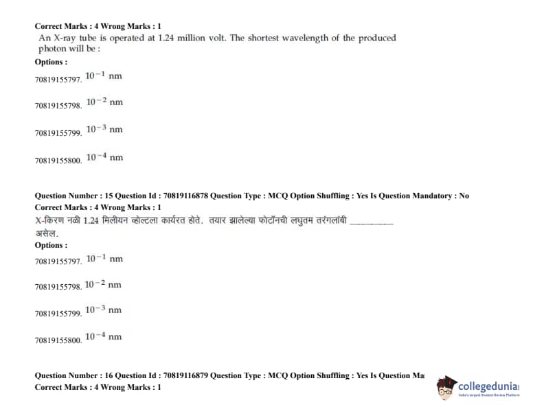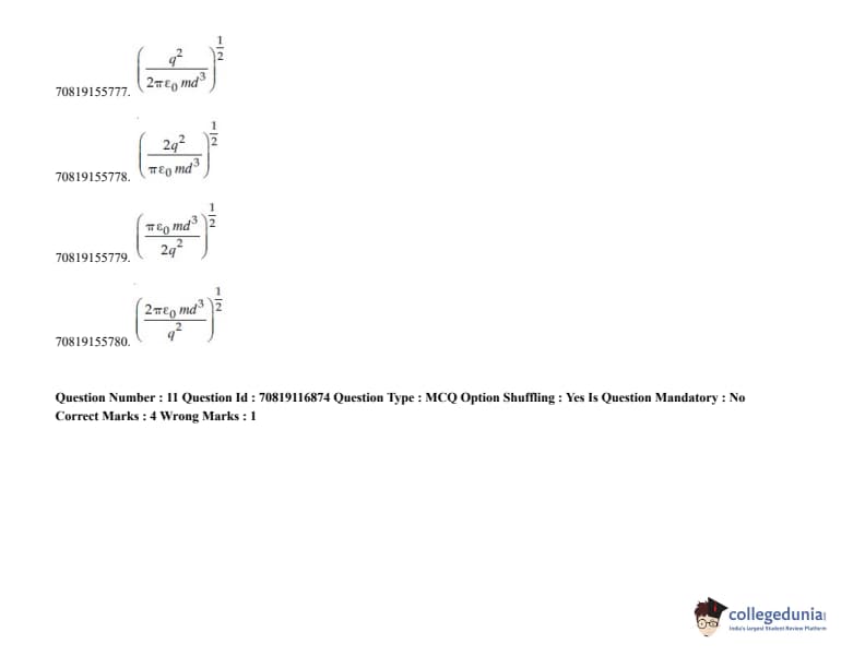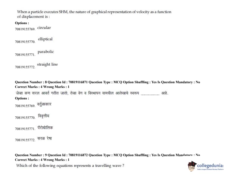 | JEE Main भौतिकशास्त्र प्रश्नपत्रिका | JEE Main गणित प्रश्नपत्रिका | JEE Main रसायनशास्त्र प्रश्नपत्रिका |