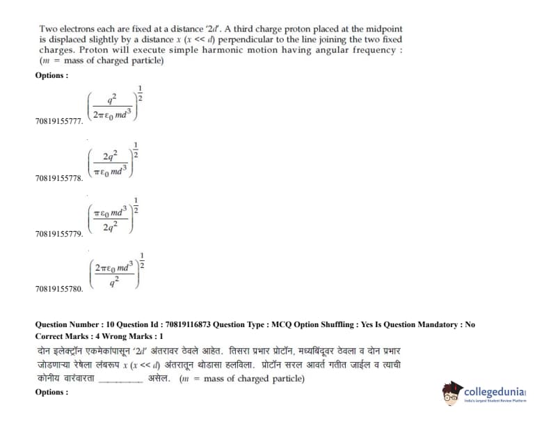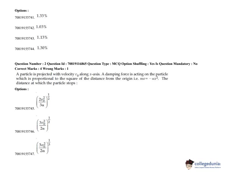 - भौतिकशास्त्रासाठी, इलेक्ट्रोस्टॅटिक्स, मेकॅनिक्स, ऑप्टिक्स आणि आधुनिक भौतिकशास्त्र हे प्रमुख विषय होते. JEE Main भौतिकशास्त्र अभ्यासक्रम तपासा