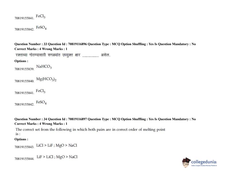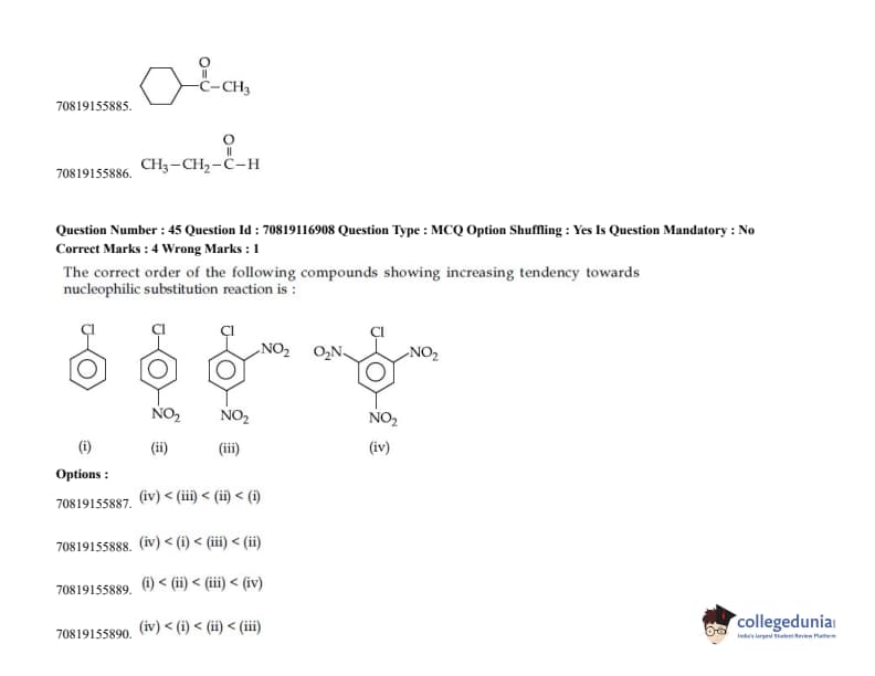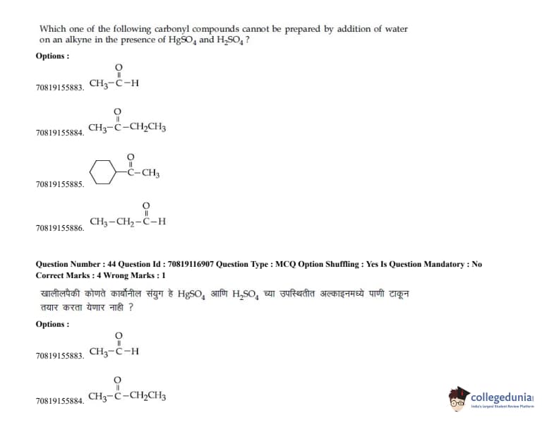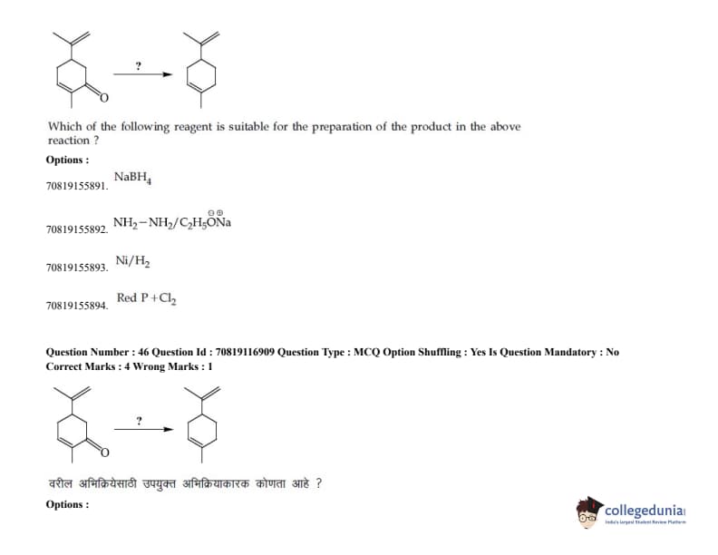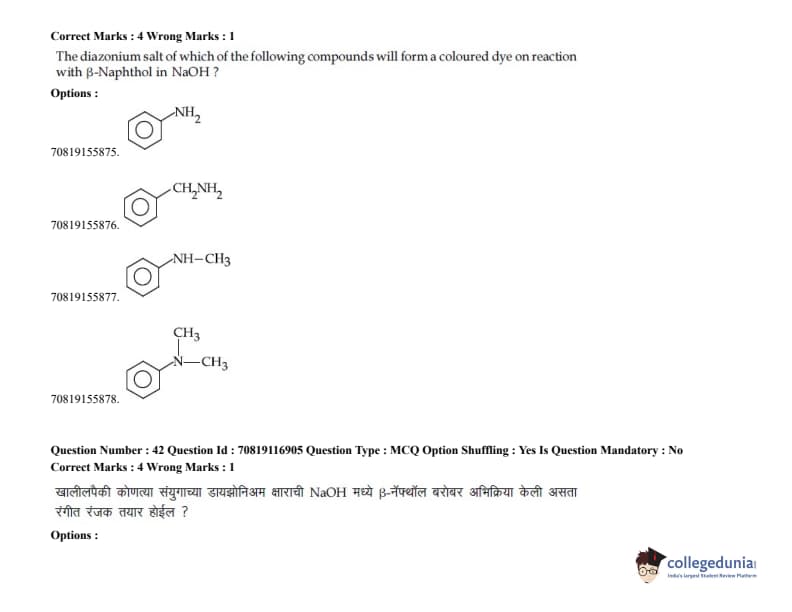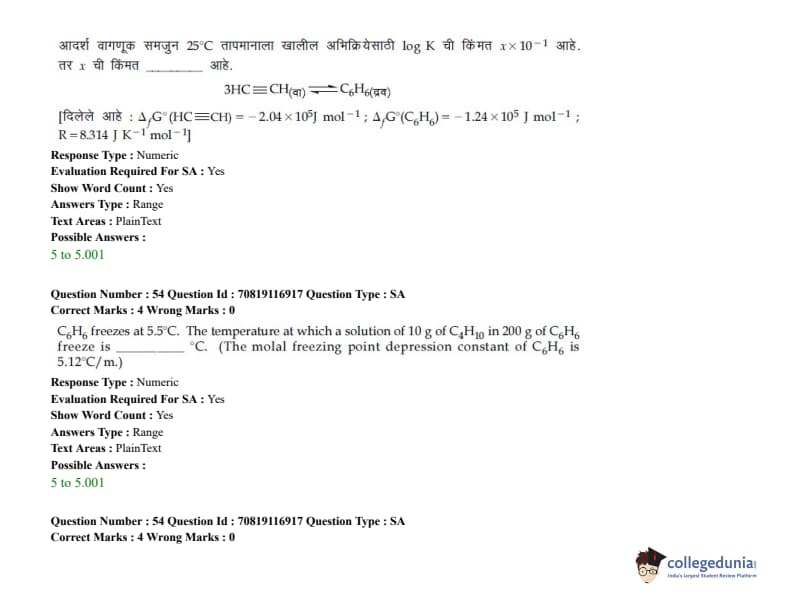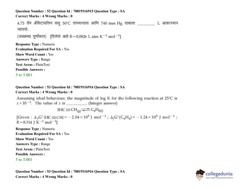 - रसायनशास्त्रामध्ये केमिकल थर्मोडायनामिक्स, केमिकल किनेटिक्स, कोऑर्डिनेशन कंपाऊंड्स आणि पॉलिमर्स मधील प्रमुख प्रश्न वैशिष्ट्यीकृत आहेत. JEE Main रसायनशास्त्र अभ्यासक्रम तपासा