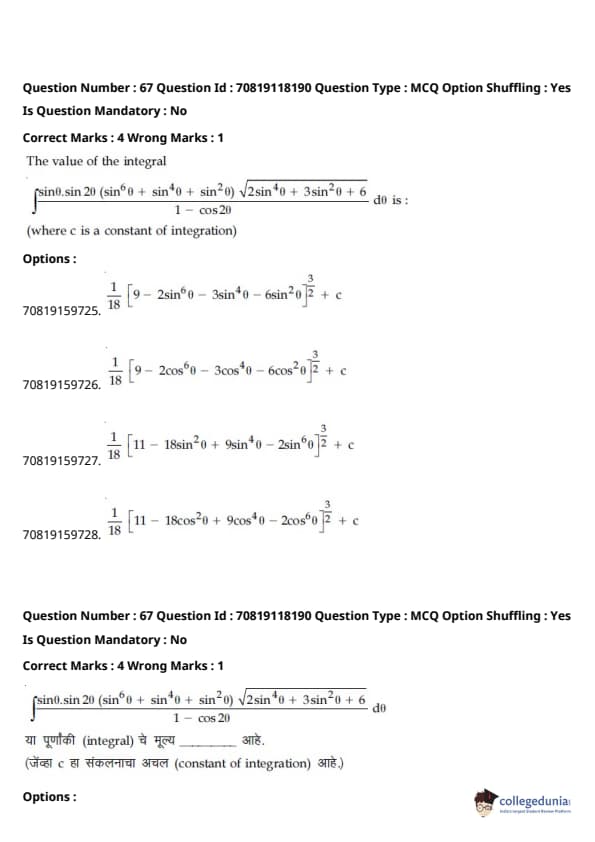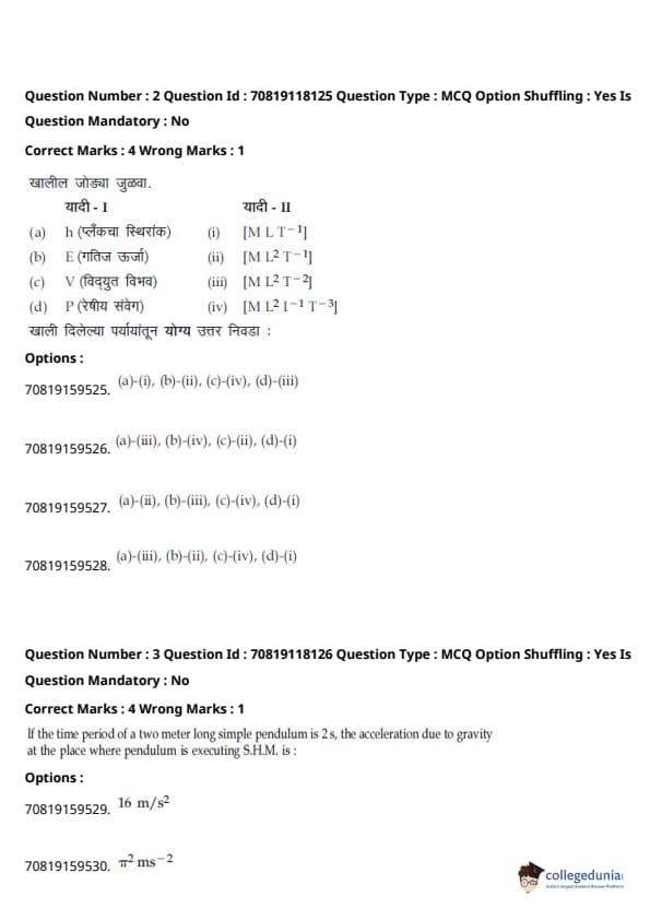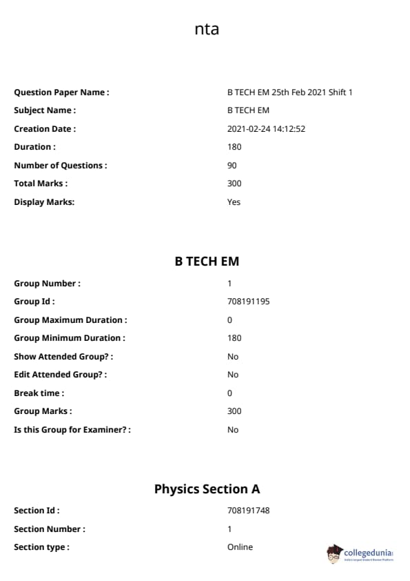 JEE Main BE/B.Tech प्रश्नपत्रिका- फेब्रुवारी 25,2021 (सकाळी)