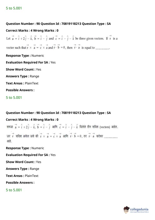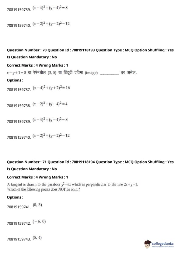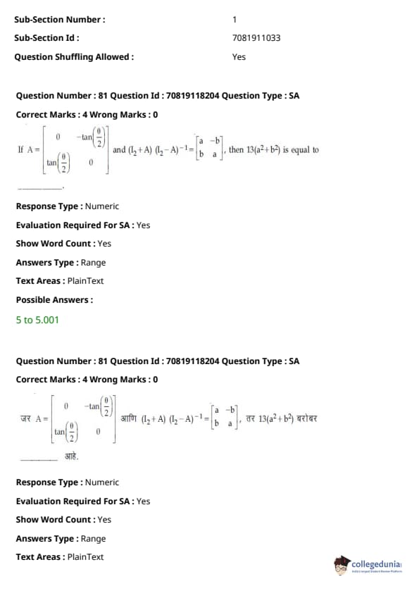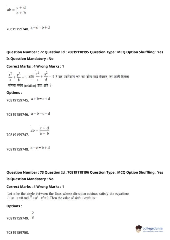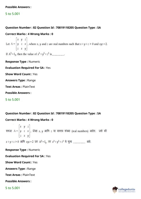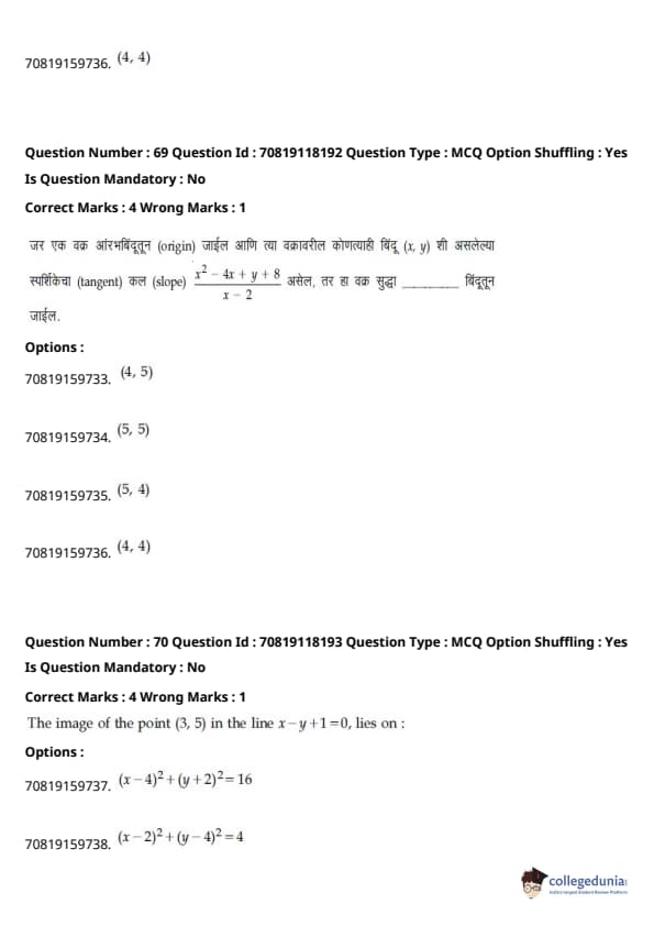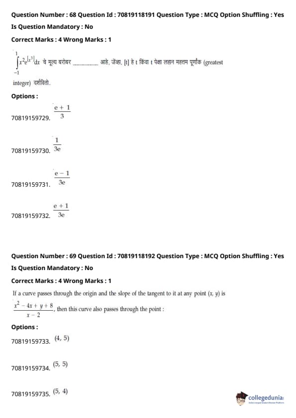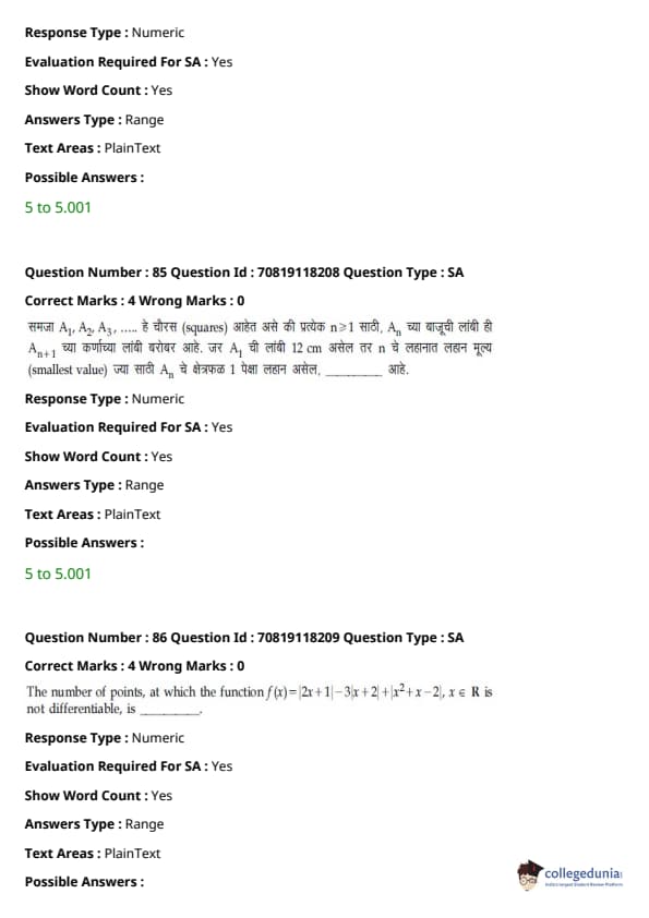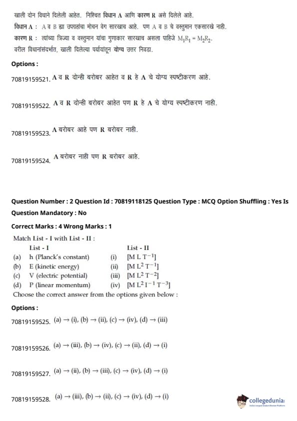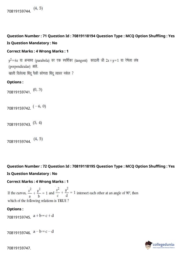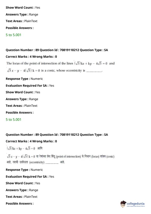 JEE Main 2021 बीई/बी.टेक प्रश्नपत्रिका - 25 फेब्रुवारी 2021- पूर्वाश्रमीच्या सत्राला मध्यम पातळीपेक्षा जास्त अडचणीचे मानण्यात आले.हे Mainतः गणित विभागाच्या उच्च काठीण्य पातळीमुळे होते.भौतिकशास्त्र आणि रसायनशास्त्र विभागांना अनुक्रमे मध्यम आणि सोपे रेट केले गेले. JEE Main 2022 चे उमेदवार खाली दिलेल्या लिंकवरून 25 फेब्रुवारी 2021 च्या सत्रासाठी प्रश्नपत्रिका आणि उत्तर की डाउनलोड करू शकतात.