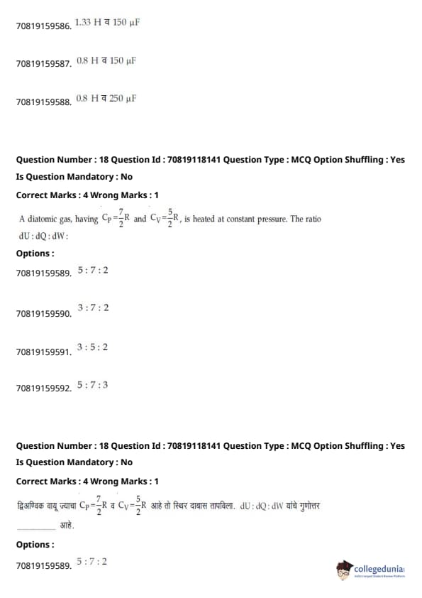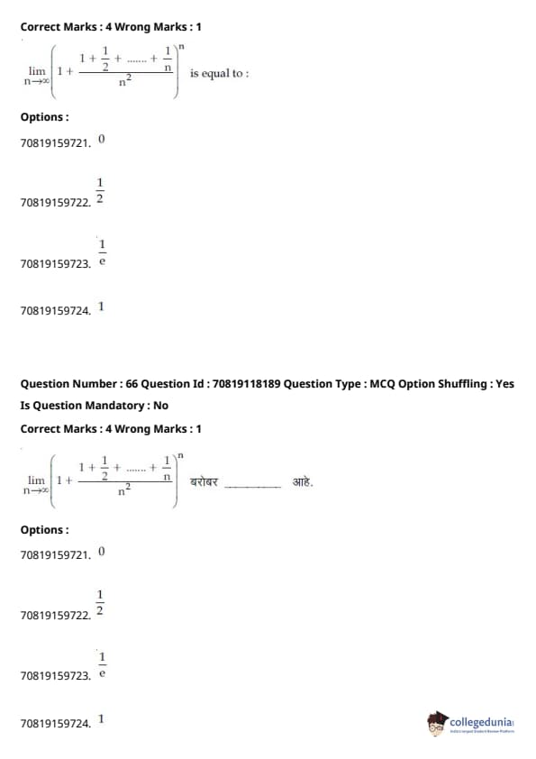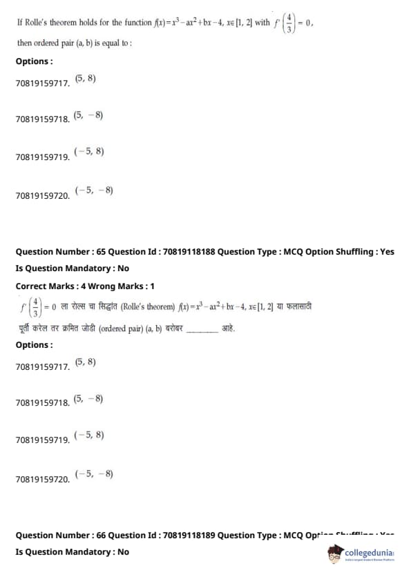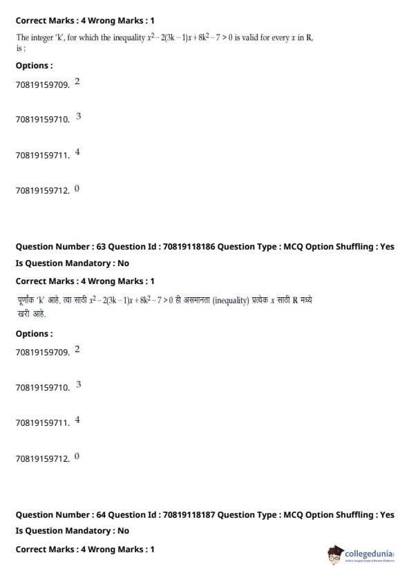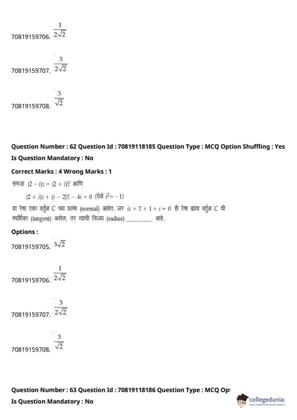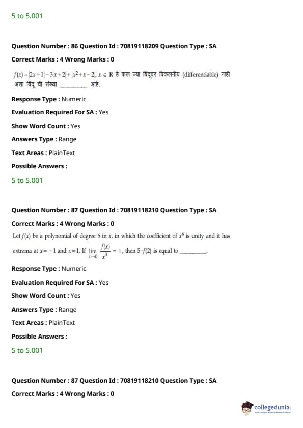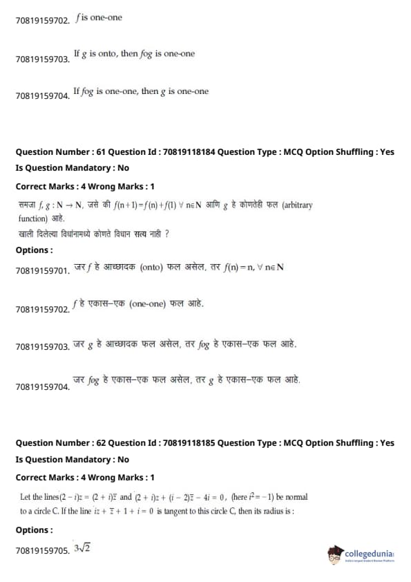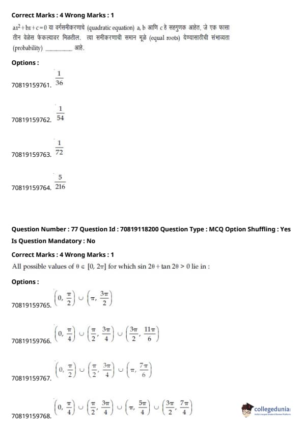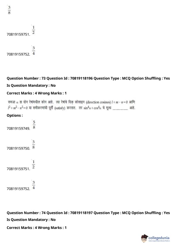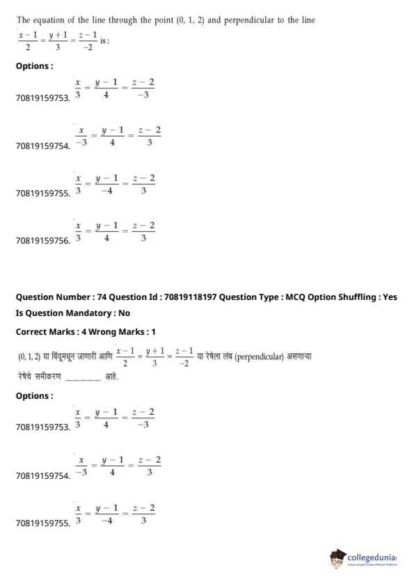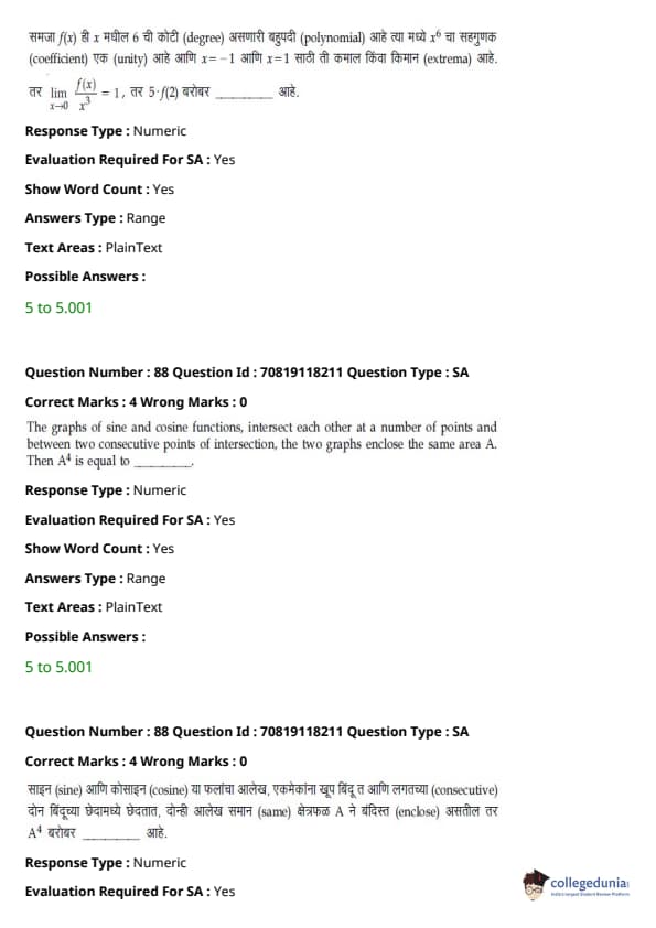 JEE Main 2021 बीई/बी.टेक प्रश्नपत्रिका - 25 फेब्रुवारी 2021- पूर्वाश्रमीच्या सत्राला मध्यम पातळीपेक्षा जास्त अडचणीचे मानण्यात आले.हे Mainतः गणित विभागाच्या उच्च काठीण्य पातळीमुळे होते.भौतिकशास्त्र आणि रसायनशास्त्र विभागांना अनुक्रमे मध्यम आणि सोपे रेट केले गेले. JEE Main 2022 चे उमेदवार खाली दिलेल्या लिंकवरून 25 फेब्रुवारी 2021 च्या सत्रासाठी प्रश्नपत्रिका आणि उत्तर की डाउनलोड करू शकतात.