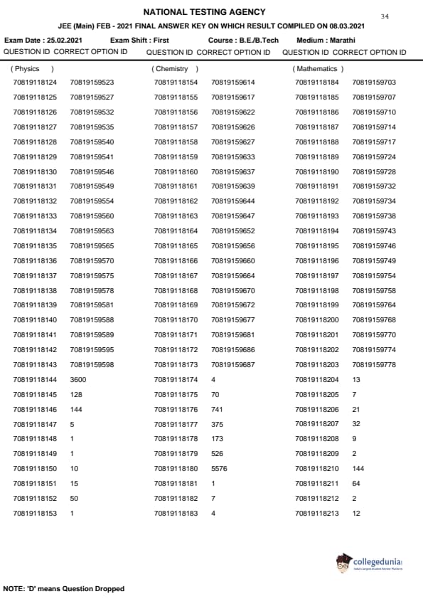 | JEE MAIN 2021 प्रश्नपत्रिका | JEE MAIN 2021 उत्तर की |