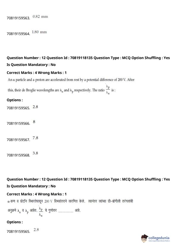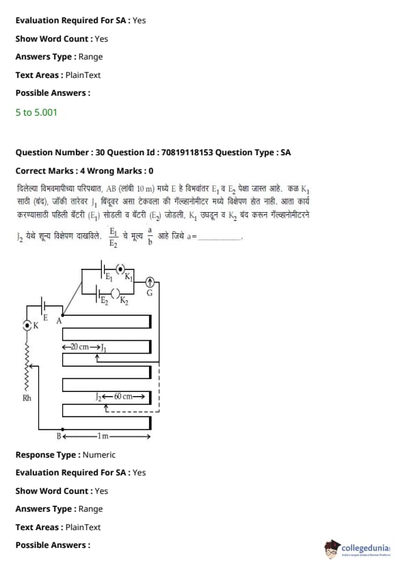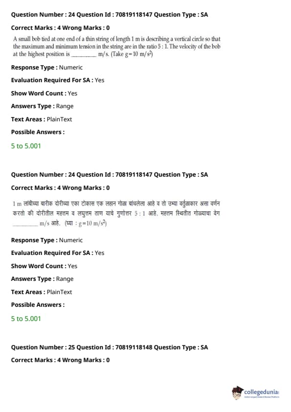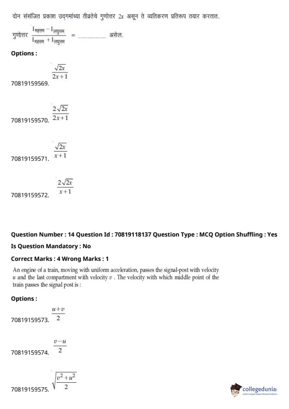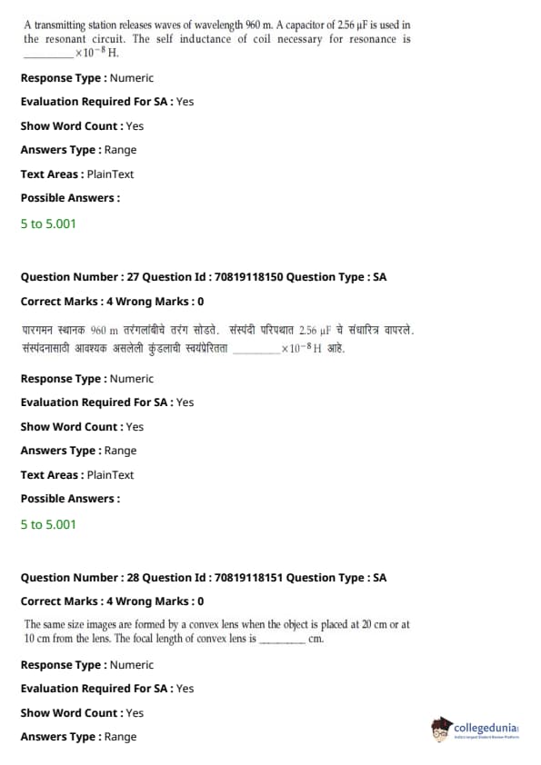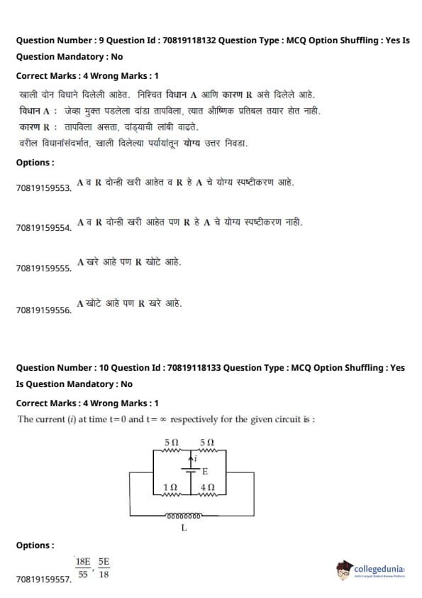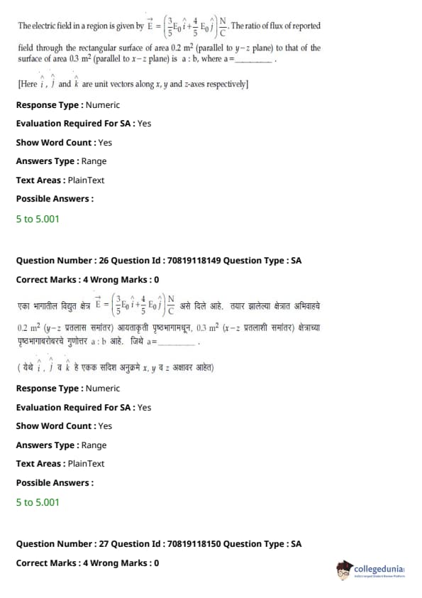 - भौतिकशास्त्र विभाग मध्यम अडचणीत होता आणि पेपरमध्ये इलेक्ट्रोडायनामिक्स आणि मेकॅनिक्सवर आधारित प्रश्न प्रबळ होते. JEE Main भौतिकशास्त्र अभ्यासक्रमतपासा