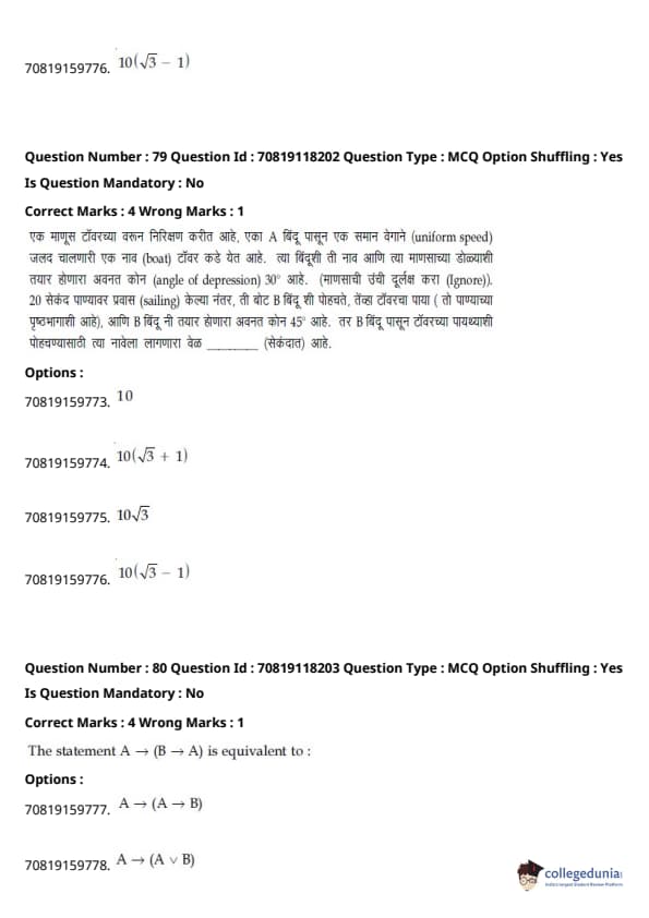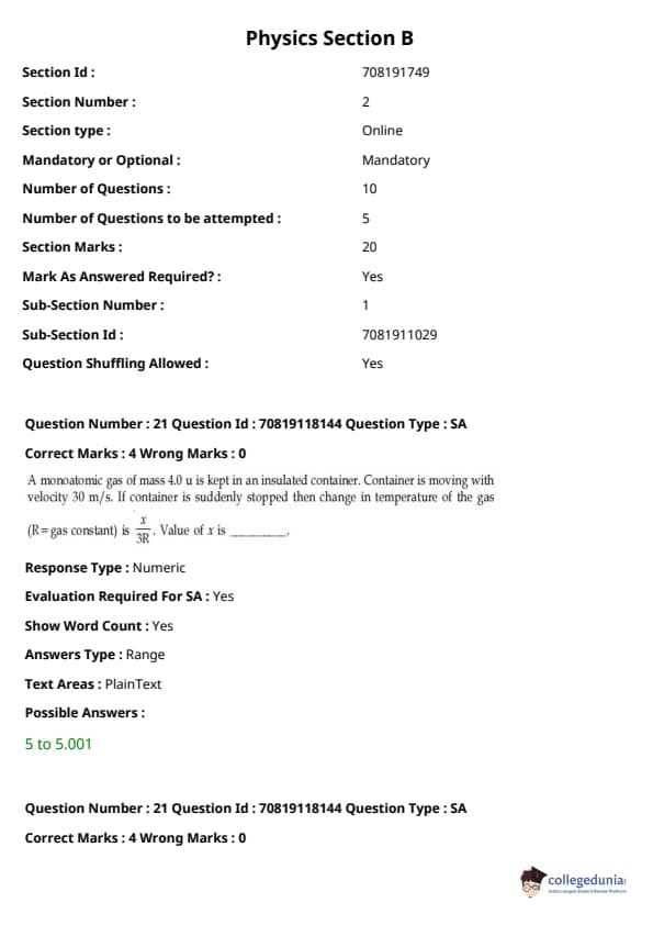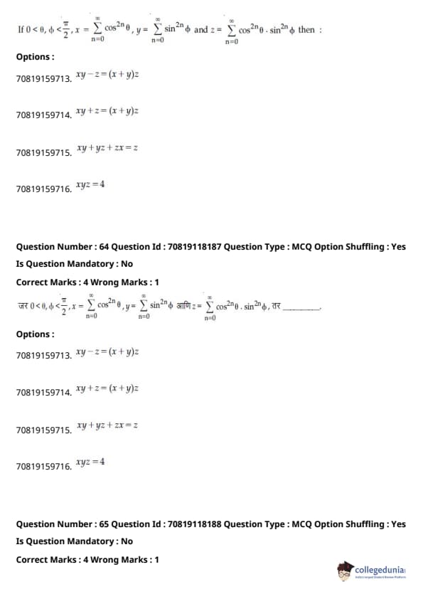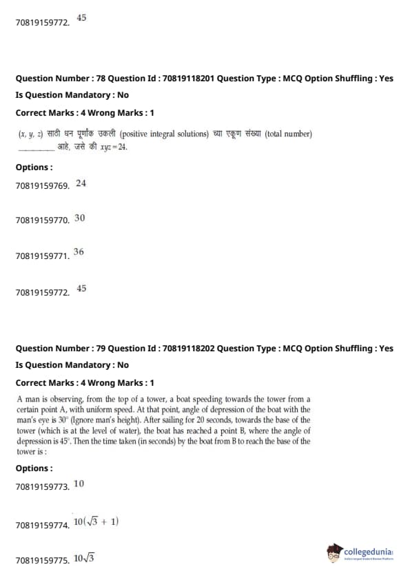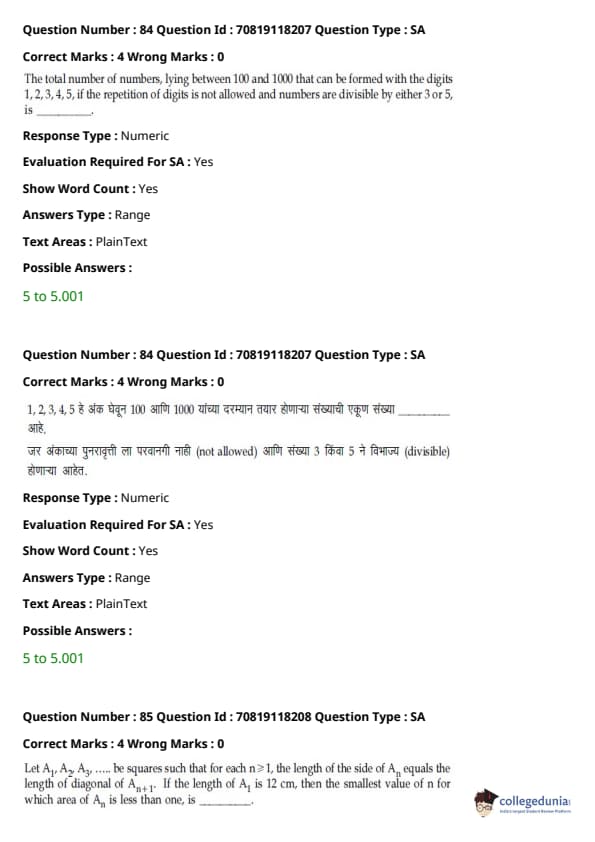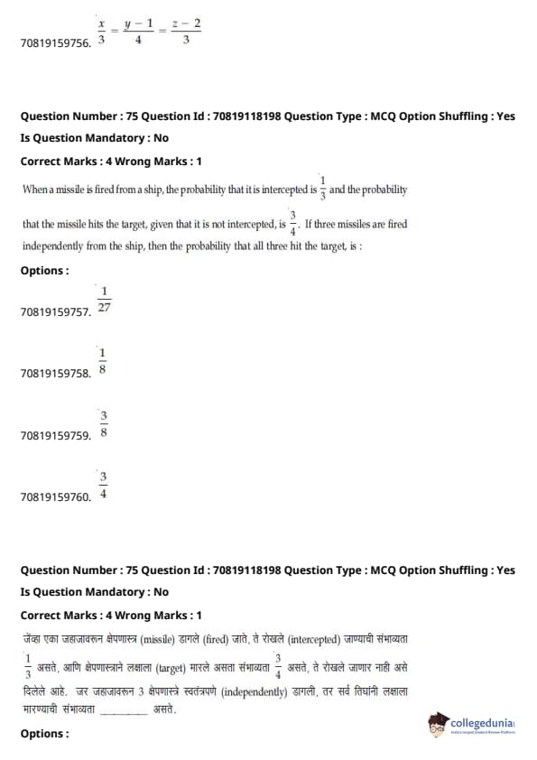 | JEE Main भौतिकशास्त्र प्रश्नपत्रिका | JEE Main गणित प्रश्नपत्रिका | JEE Main रसायनशास्त्र प्रश्नपत्रिका |