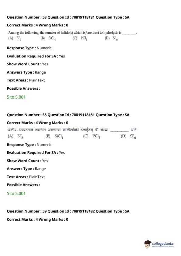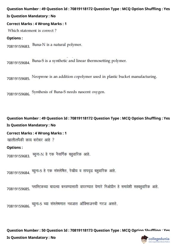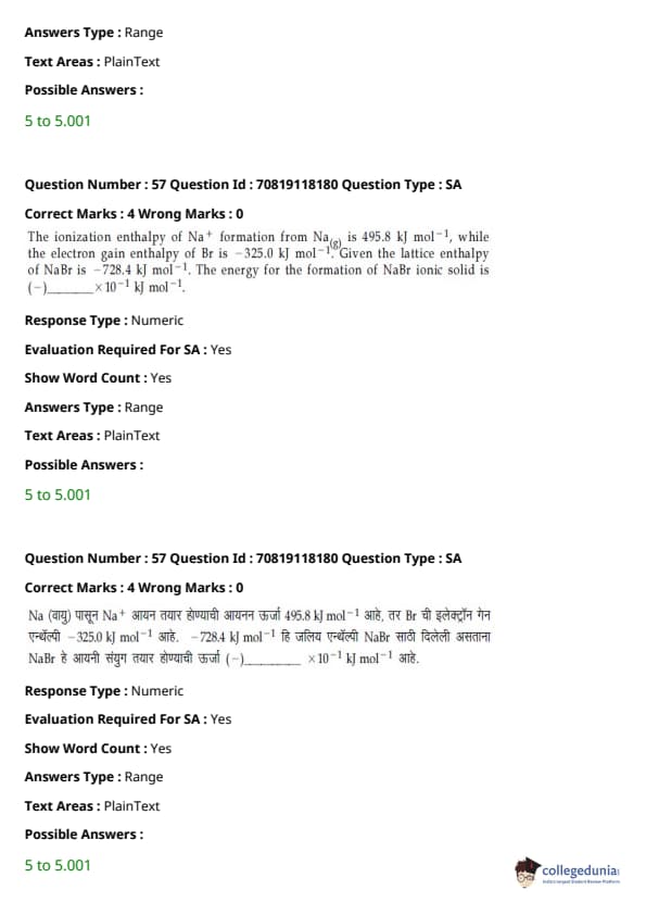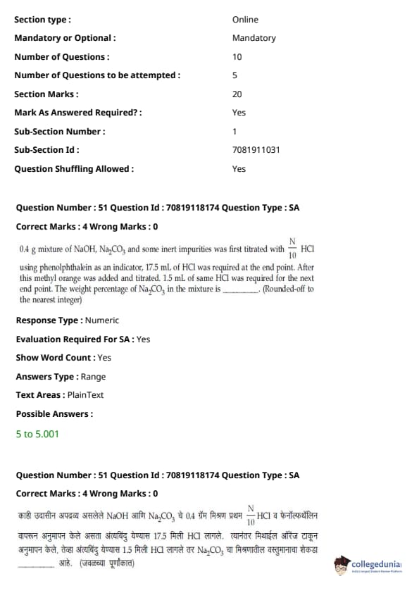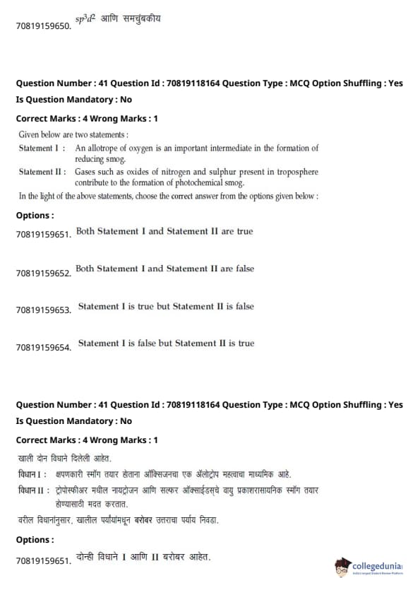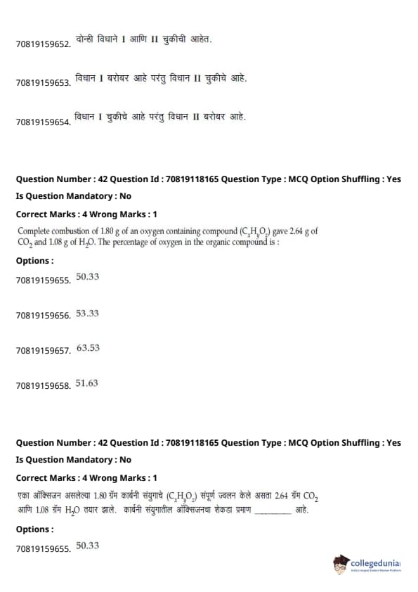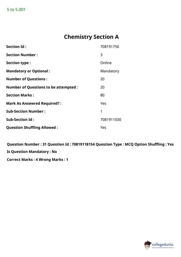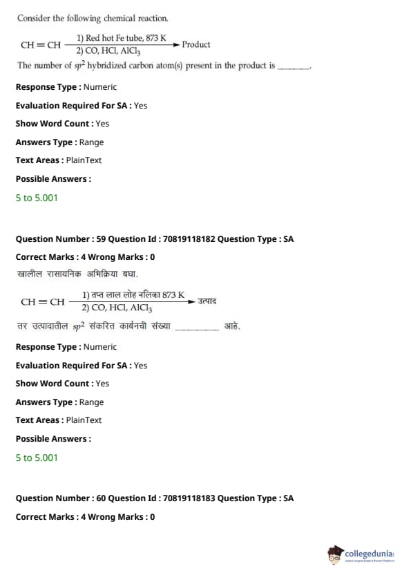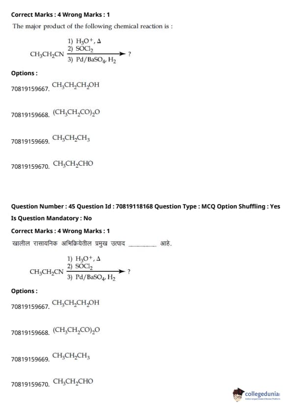 - रसायनशास्त्र विभाग सर्वात सोपा होता आणि बहुतेक प्रश्न ऑर्गेनिक केमिस्ट्री आणि फिजिकल केमिस्ट्रीमधून विचारले गेले. JEE Main रसायनशास्त्र अभ्यासक्रमतपासा