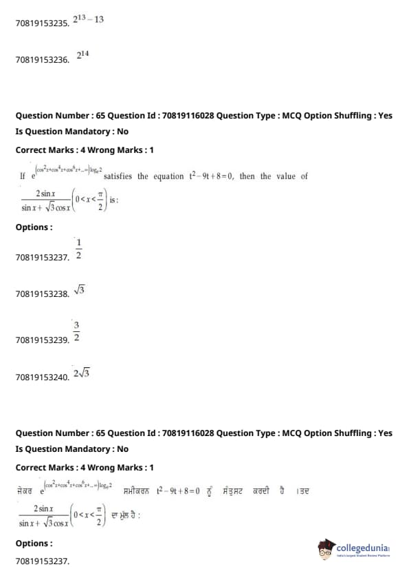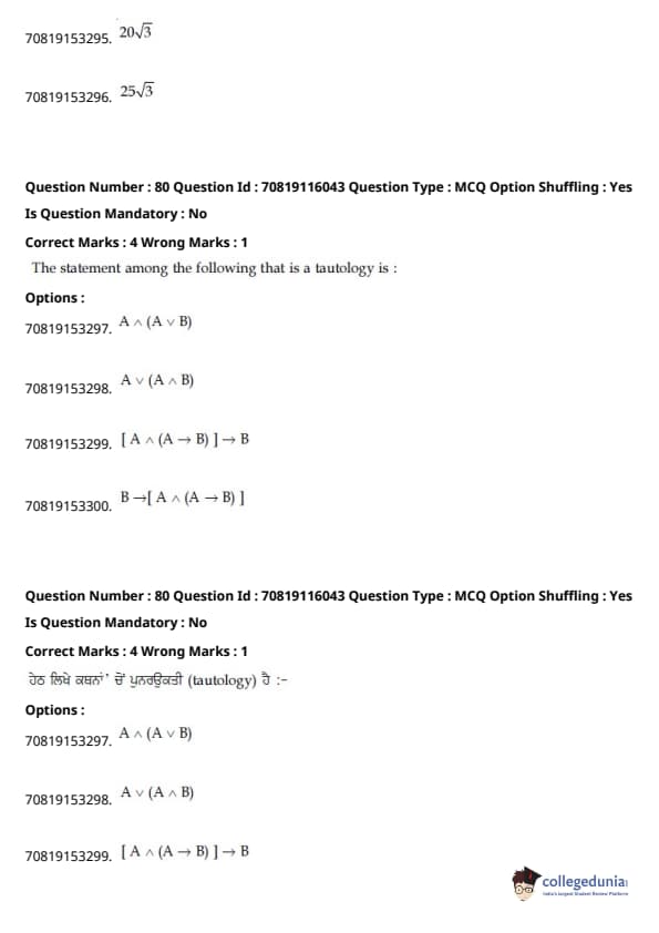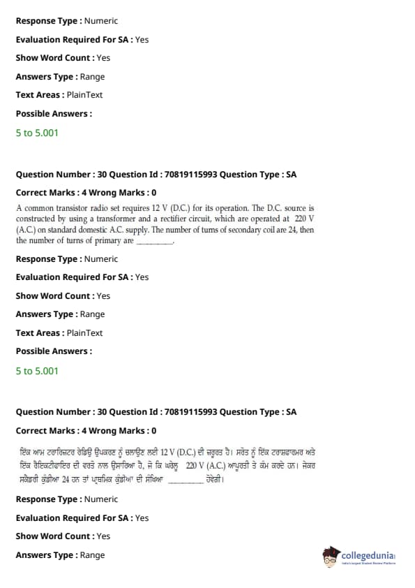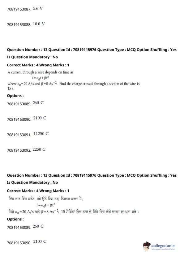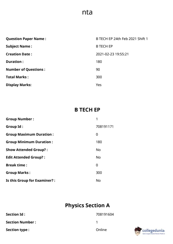 JEE Main ਬੀ.ਈ./ਬੀ.ਟੈਕ ਪ੍ਰਸ਼ਨ ਪੱਤਰ- ਫਰਵਰੀ 24, 2021 (ਪੂਰਵ ਦੁਪਹਿਰ)