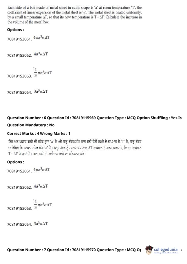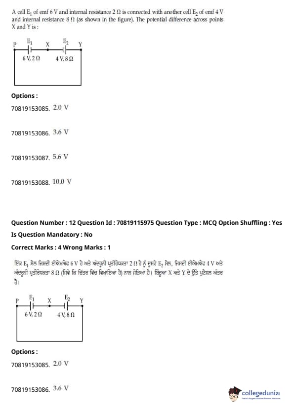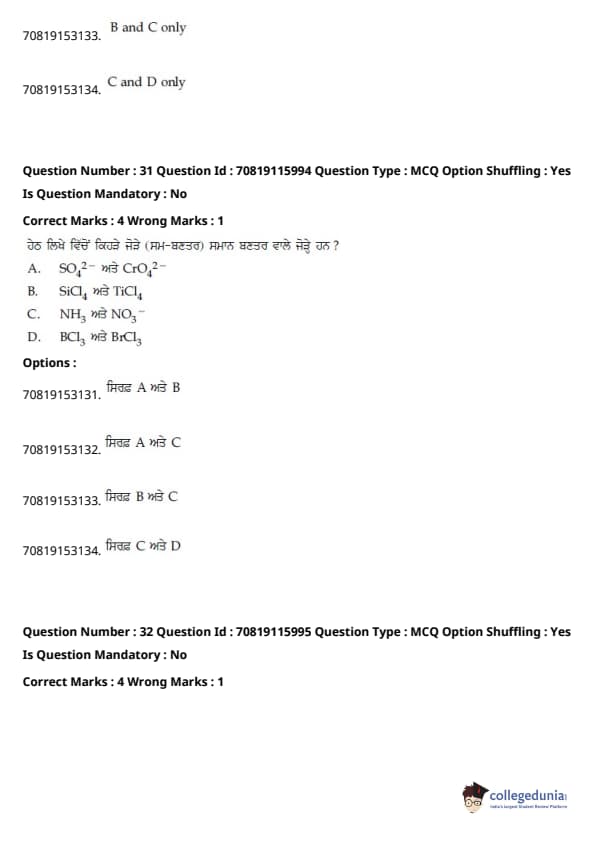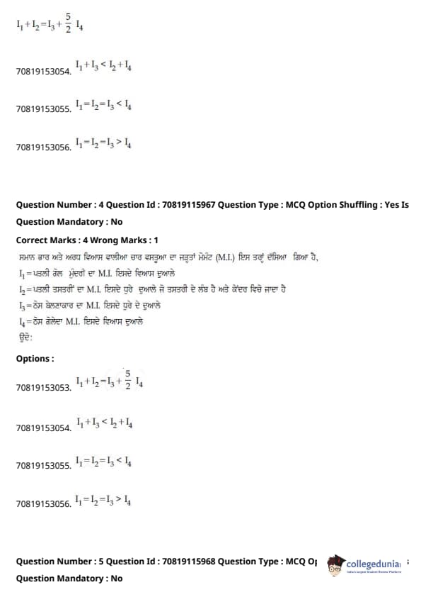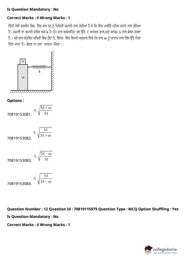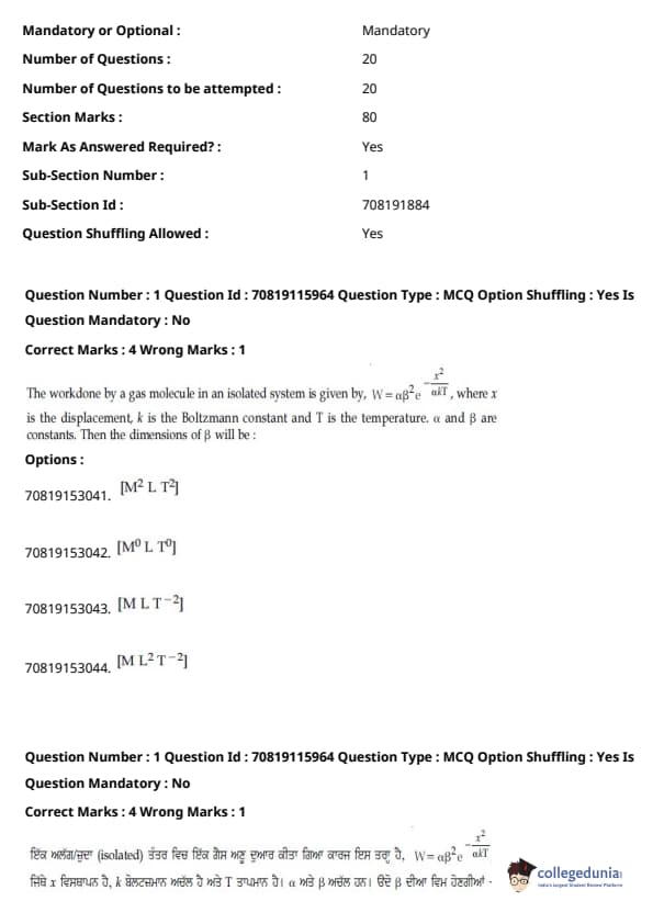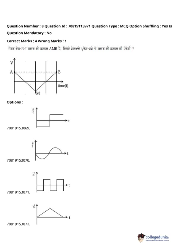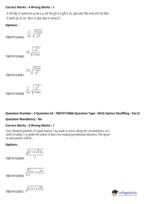 | JEE Main ਭੌਤਿਕ ਵਿਗਿਆਨ ਪ੍ਰਸ਼ਨ ਪੱਤਰ | JEE Main ਗਣਿਤ ਪ੍ਰਸ਼ਨ ਪੱਤਰ | JEE Main ਕੈਮਿਸਟਰੀਪ੍ਰਸ਼ਨ ਪੱਤਰ |