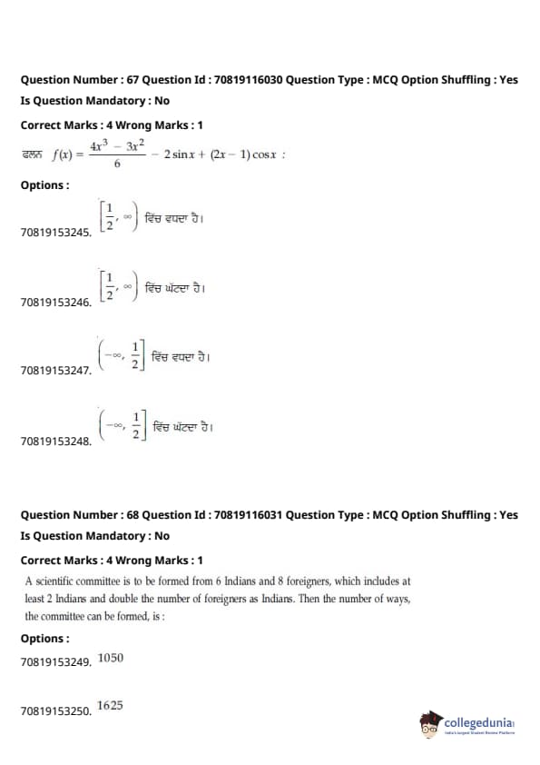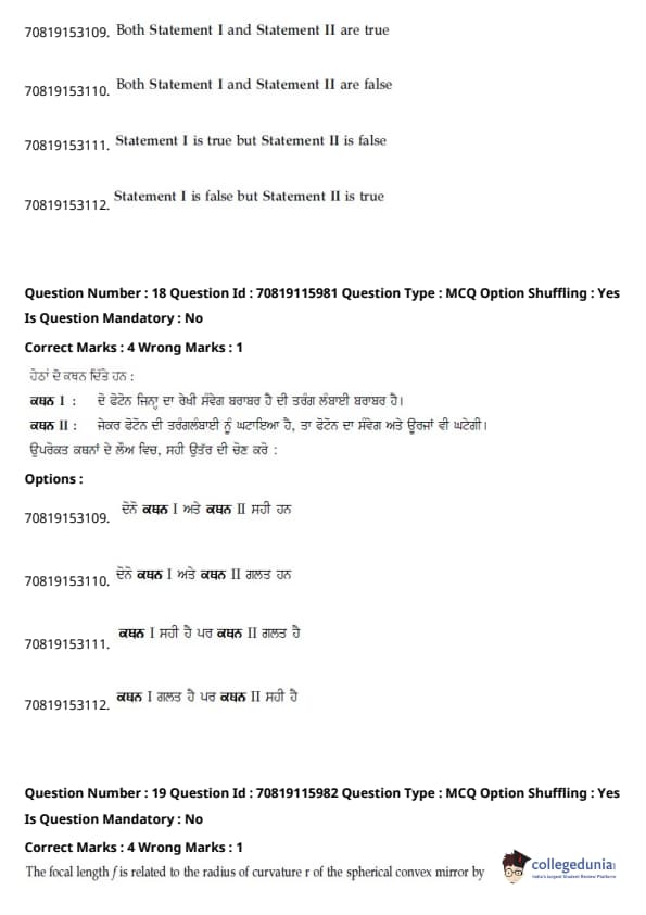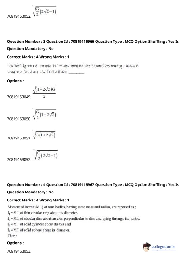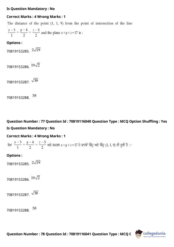 | JEE Main 2020 ਪ੍ਰਸ਼ਨ ਪੱਤਰ | JEE Main 2019 ਪ੍ਰਸ਼ਨ ਪੱਤਰ | JEE Main 2018 ਪ੍ਰਸ਼ਨ ਪੱਤਰ |