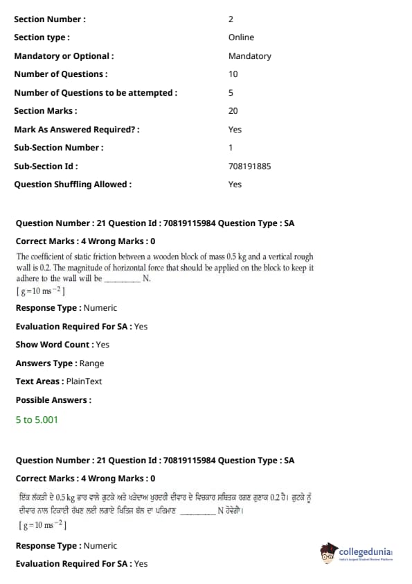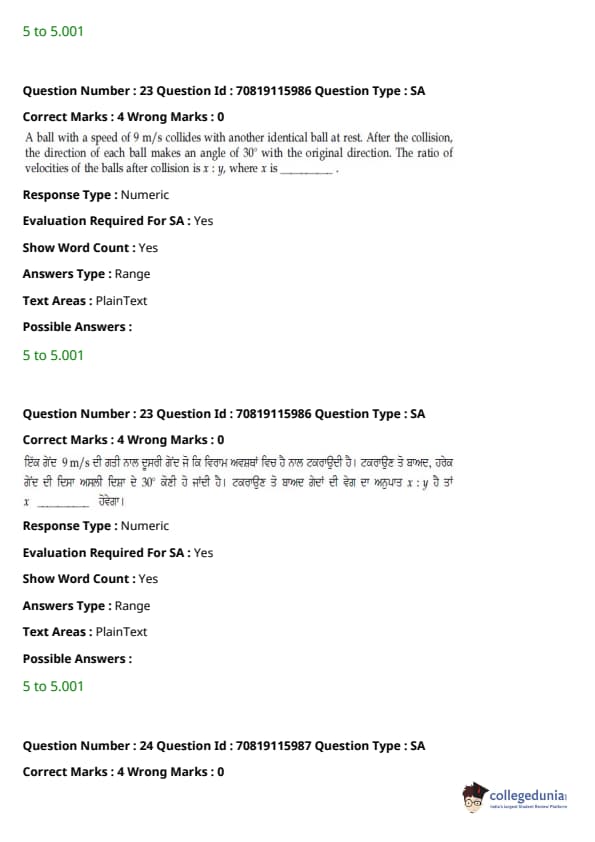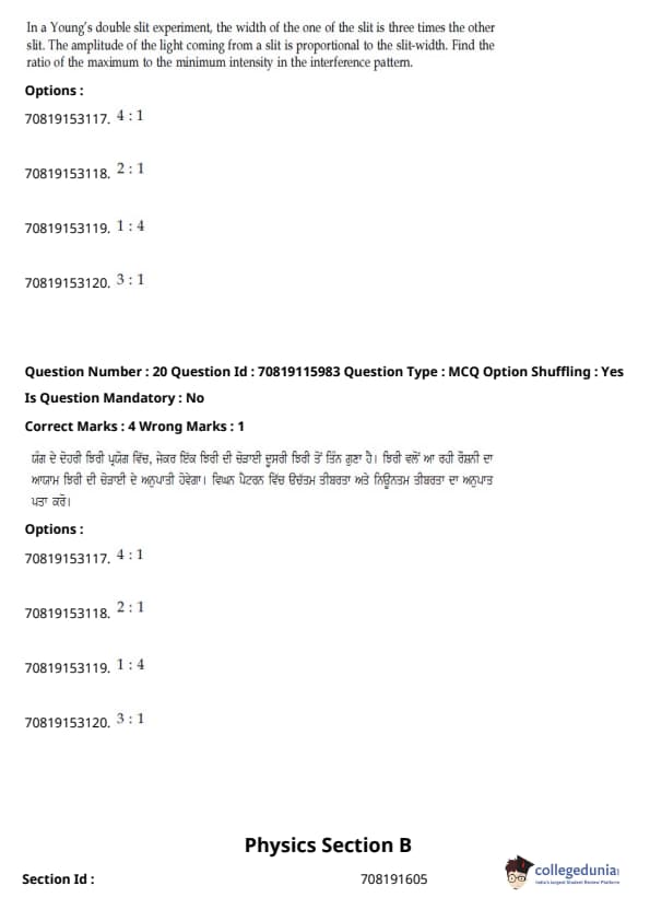 - ਭੌਤਿਕ ਵਿਗਿਆਨ ਭਾਗ ਦੂਜੇ ਭਾਗਾਂ ਨਾਲੋਂ ਤੁਲਨਾਤਮਕ ਤੌਰ 'ਤੇ ਆਸਾਨ ਸੀ। ਹਾਲਾਂਕਿ ਗਣਨਾ-ਆਧਾਰਿਤ ਪ੍ਰਸ਼ਨਾਂ ਦੀ ਗਿਣਤੀ ਥਿਊਰੀ-ਅਧਾਰਿਤ ਪ੍ਰਸ਼ਨਾਂ ਨਾਲੋਂ ਵੱਧ ਸੀ, ਉਹ ਜਿਆਦਾਤਰ ਛੋਟੇ ਸਨ ਅਤੇ ਸਿੱਧੇ ਫਾਰਮੂਲੇ ਦੇ ਇੱਕ ਜਾਂ ਹੋਰ ਭਿੰਨਤਾਵਾਂ ਨੂੰ ਸ਼ਾਮਲ ਕਰਦੇ ਸਨ।