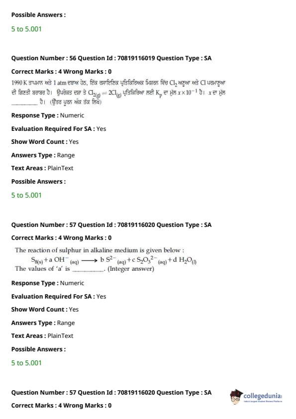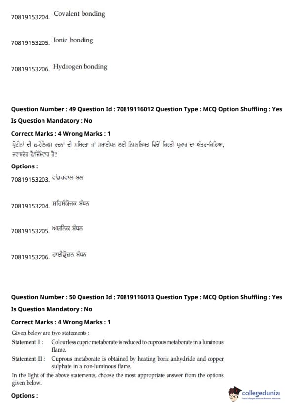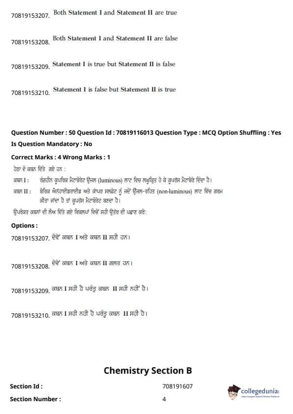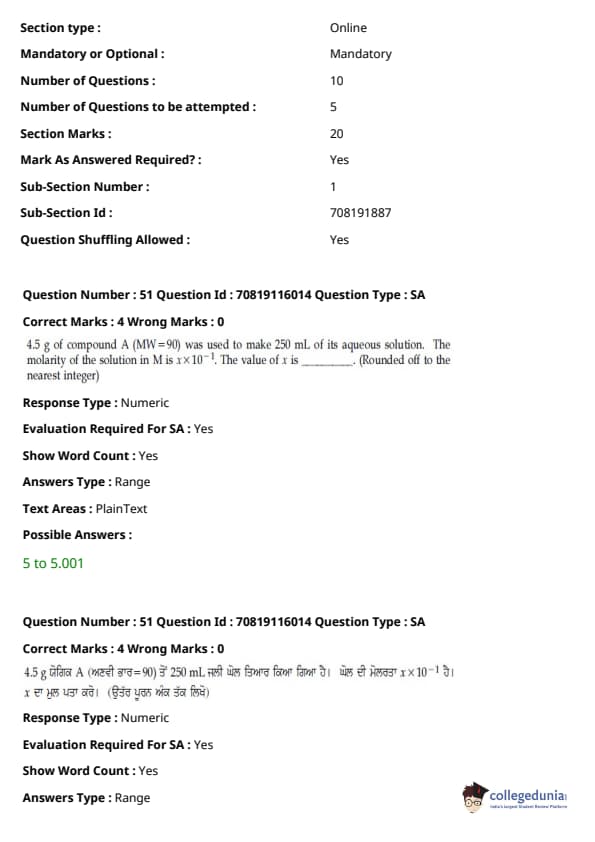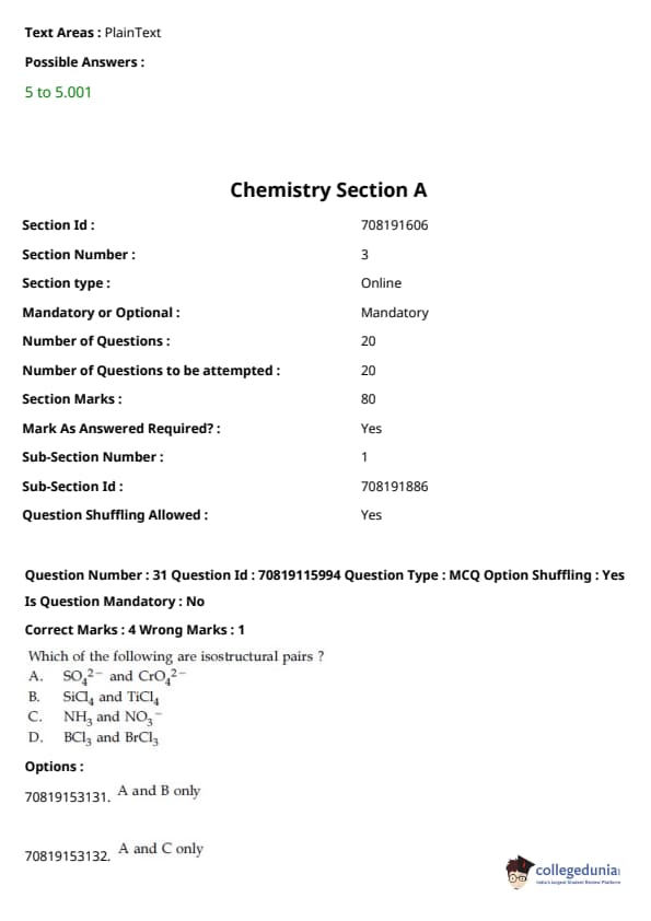 - ਕੈਮਿਸਟਰੀ ਸੈਕਸ਼ਨ ਵਿੱਚ, ਪ੍ਰਮੁੱਖ ਇਕਾਈਆਂ ਸਨ - ਆਰਗੈਨਿਕ ਕੈਮਿਸਟਰੀ II (30%), ਫਿਜ਼ੀਕਲ ਕੈਮਿਸਟਰੀ I (20%), ਅਤੇ ਫਿਜ਼ੀਕਲ ਕੈਮਿਸਟਰੀ II (18%)