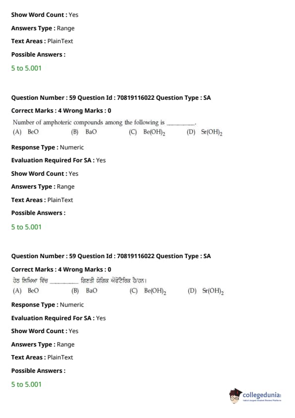 - ਪੇਪਰ ਵਿੱਚ 12ਵੀਂ ਜਮਾਤ ਦੇ ਸਿਲੇਬਸ ਵਿੱਚੋਂ ਲਗਭਗ 48 ਸਵਾਲ ਪੁੱਛੇ ਗਏ ਸਨ, ਅਤੇ 11ਵੀਂ ਜਮਾਤ ਦੇ ਸਿਲੇਬਸ ਵਿੱਚੋਂ ਲਗਭਗ 42 ਸਵਾਲ ਪੁੱਛੇ ਗਏ ਸਨ।