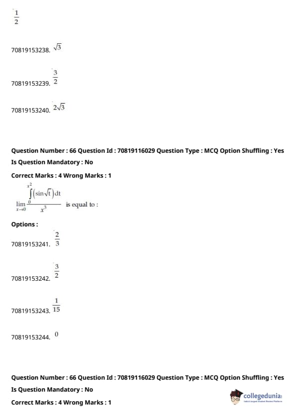 - ਗਣਿਤ ਵਿੱਚ ਪ੍ਰਮੁੱਖ ਇਕਾਈਆਂ ਸਨ - ਡਿਫਰੈਂਸ਼ੀਅਲ ਕੈਲਕੂਲਸ (20%), ਇੰਟੈਗਰਲ ਕੈਲਕੂਲਸ (20%), ਕੋਆਰਡੀਨੇਟ ਜਿਓਮੈਟਰੀ (12%), ਅਤੇ ਵੈਕਟਰ ਅਤੇ 3D (12%)