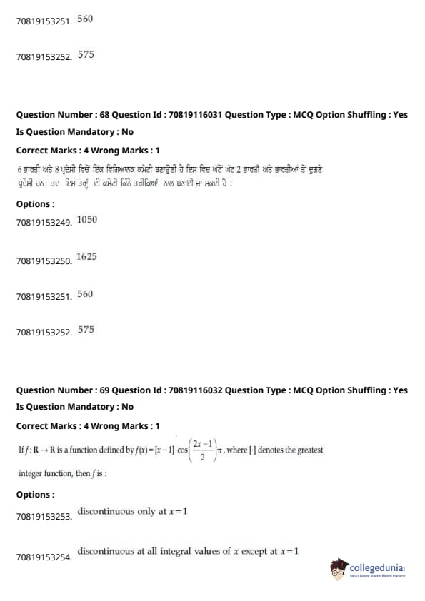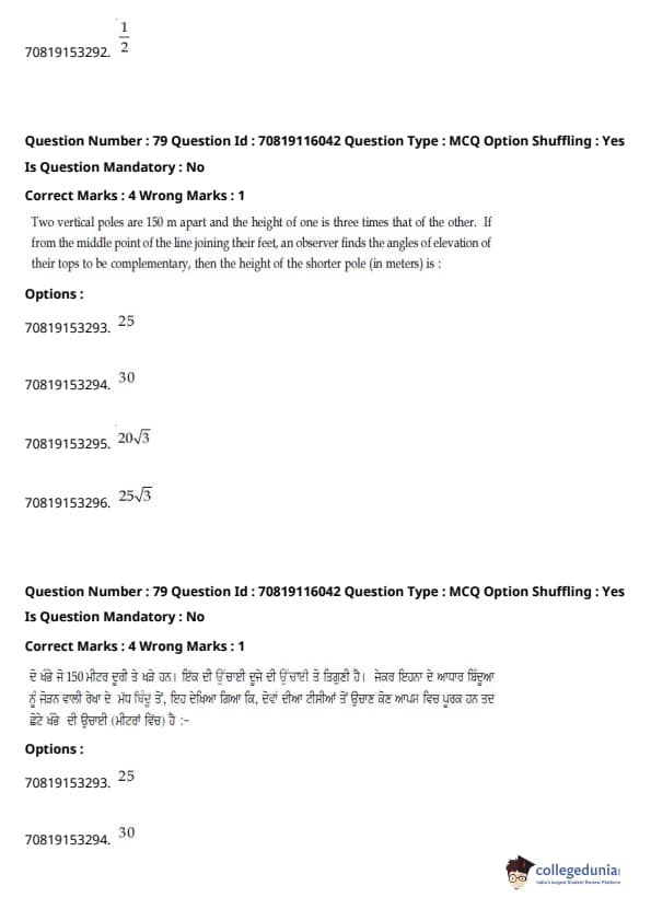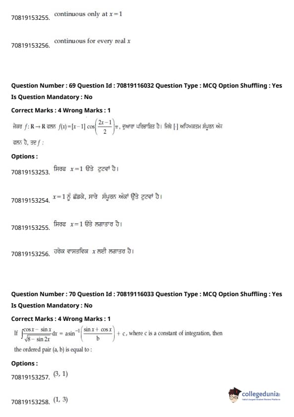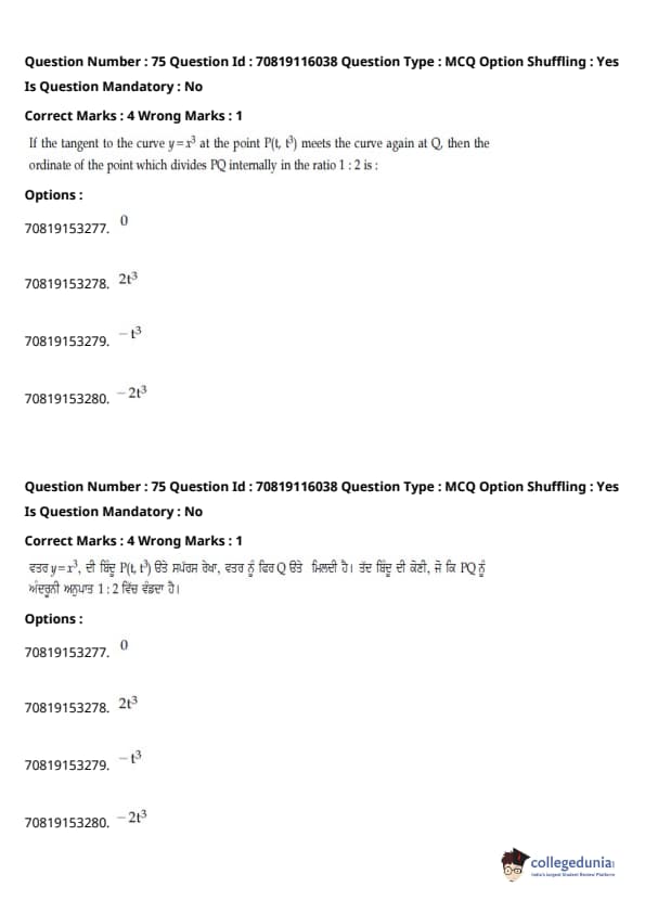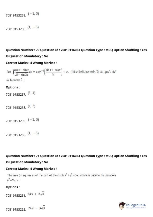 - ਆਮ ਵਾਂਗ, ਗਣਿਤ ਇਮਤਿਹਾਨ ਦਾ ਸਭ ਤੋਂ ਔਖਾ ਭਾਗ ਸੀ, ਜਿਸ ਵਿੱਚ ਇੰਟੈਗਰਲਸ ਅਤੇ ਅਲਜਬਰਾ ਦੇ ਸਵਾਲ ਲੰਬੇ ਸਨ।