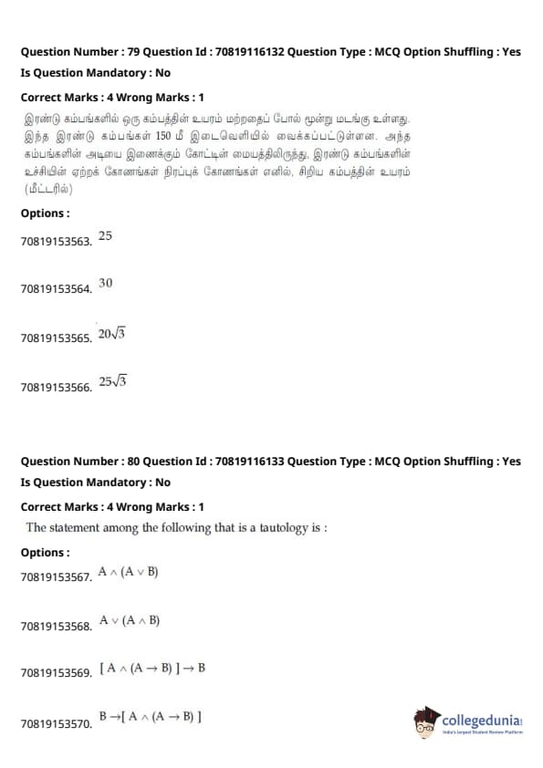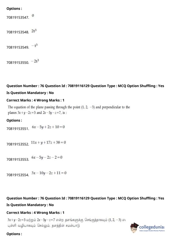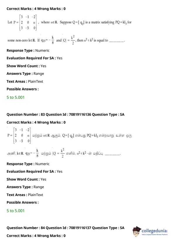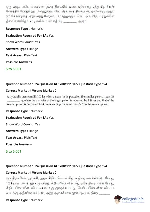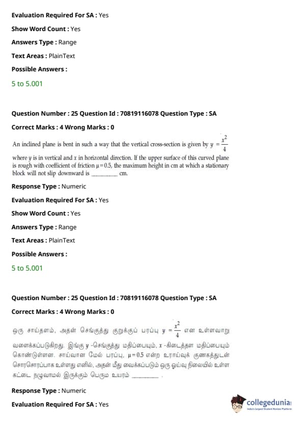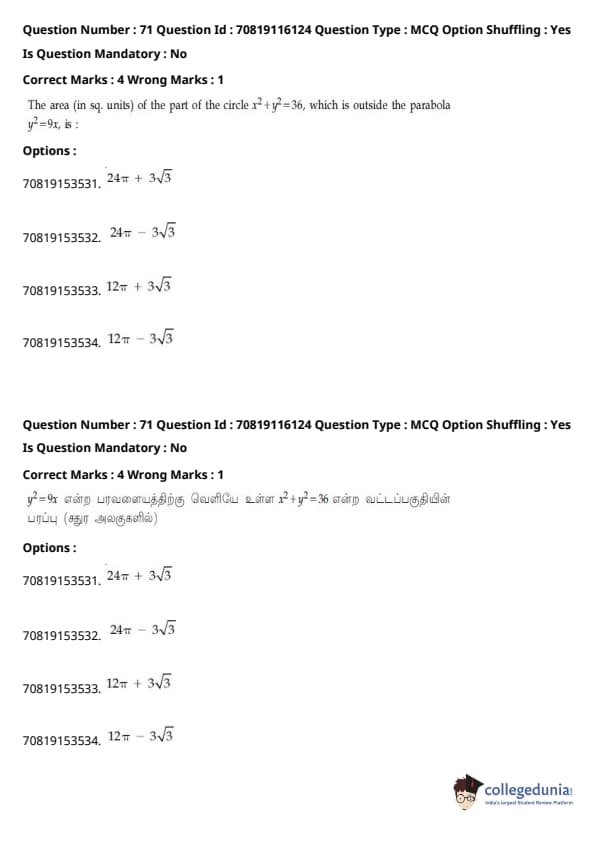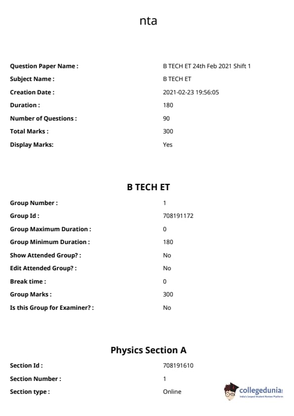 JEE Main B.E./B.Tech வினாத்தாள்- பிப்ரவரி 24,2021 (காலை)