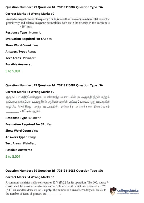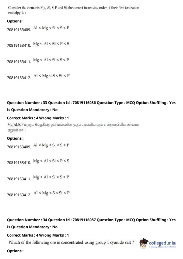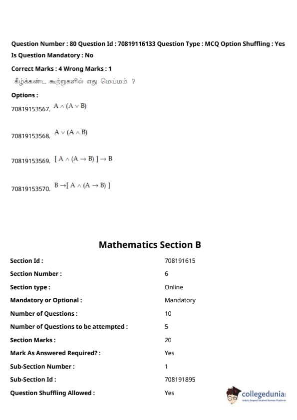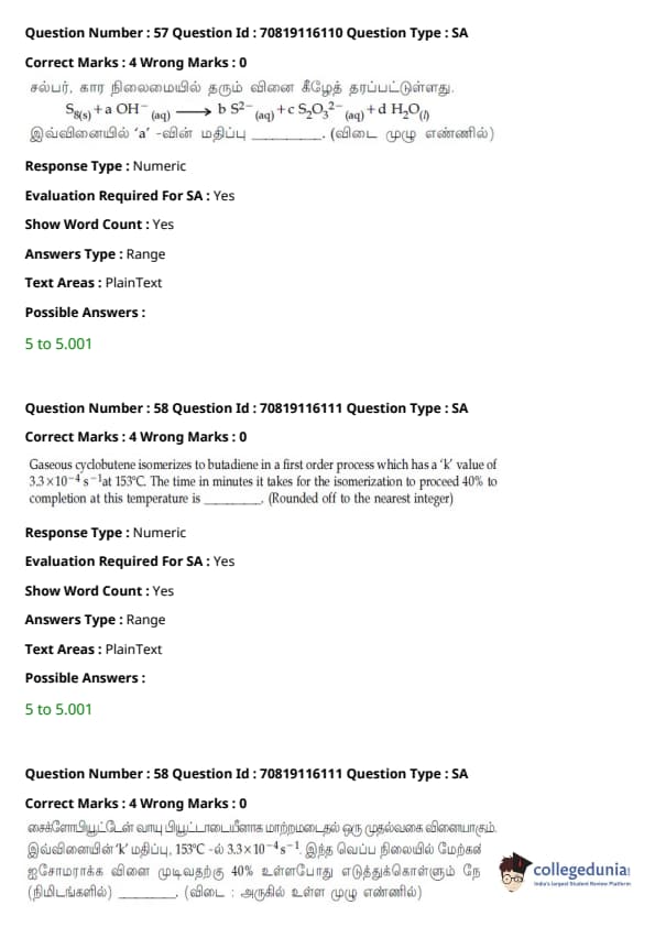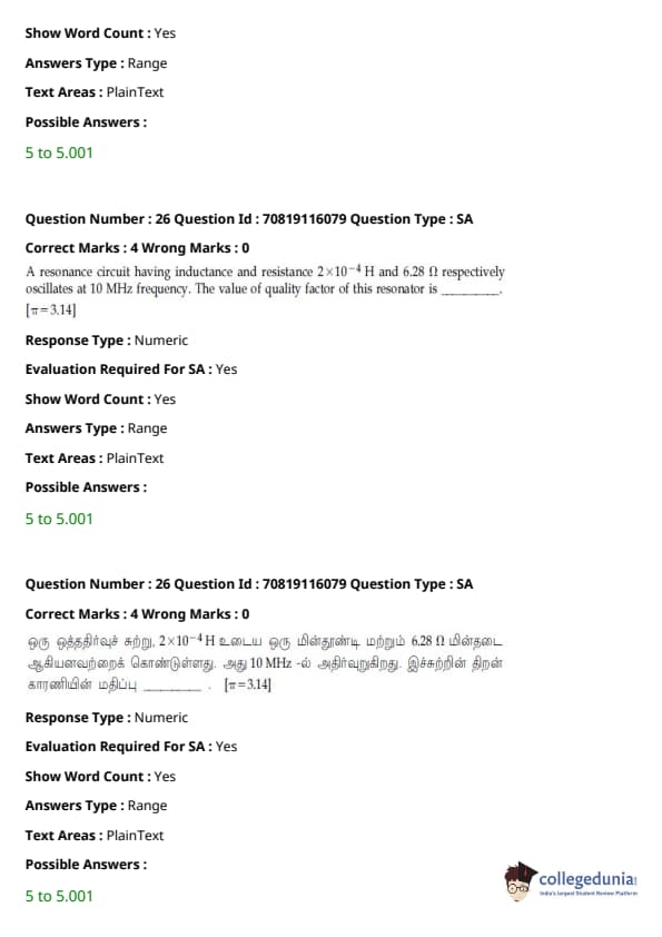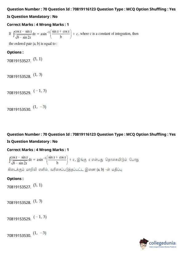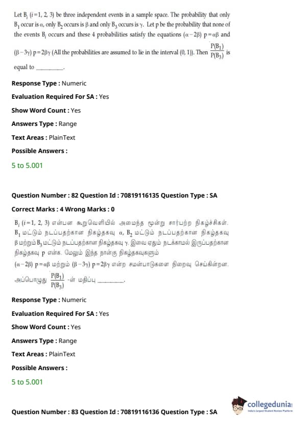 JEE Main B.E./B.Tech வினாத்தாள்- பிப்ரவரி 24,2021 (காலை)