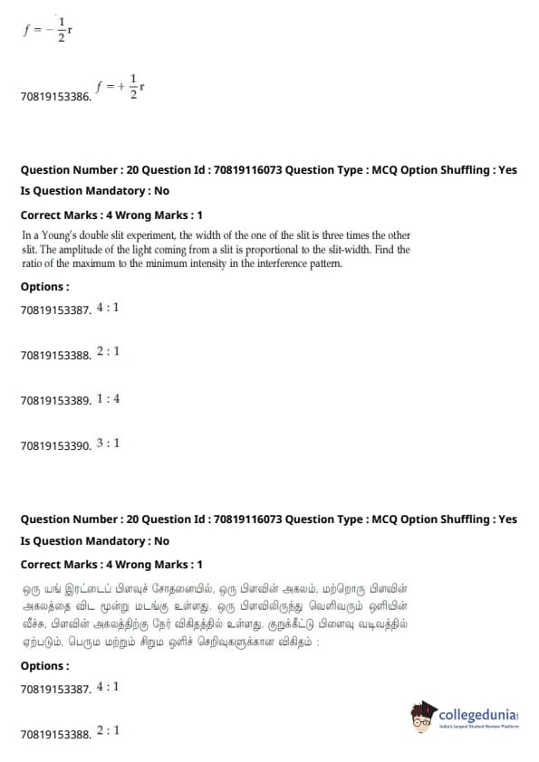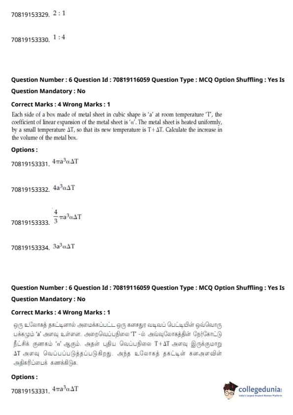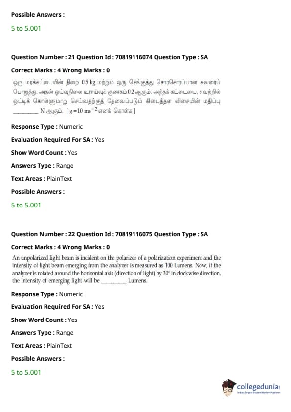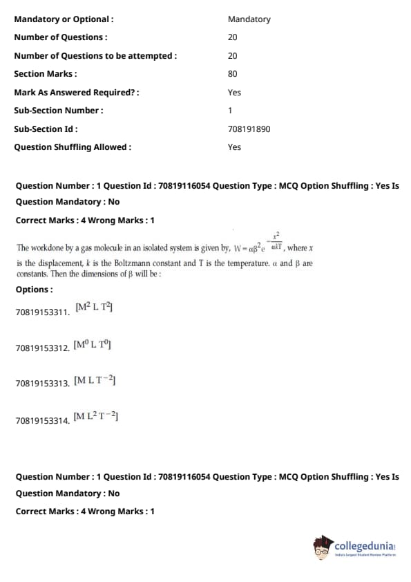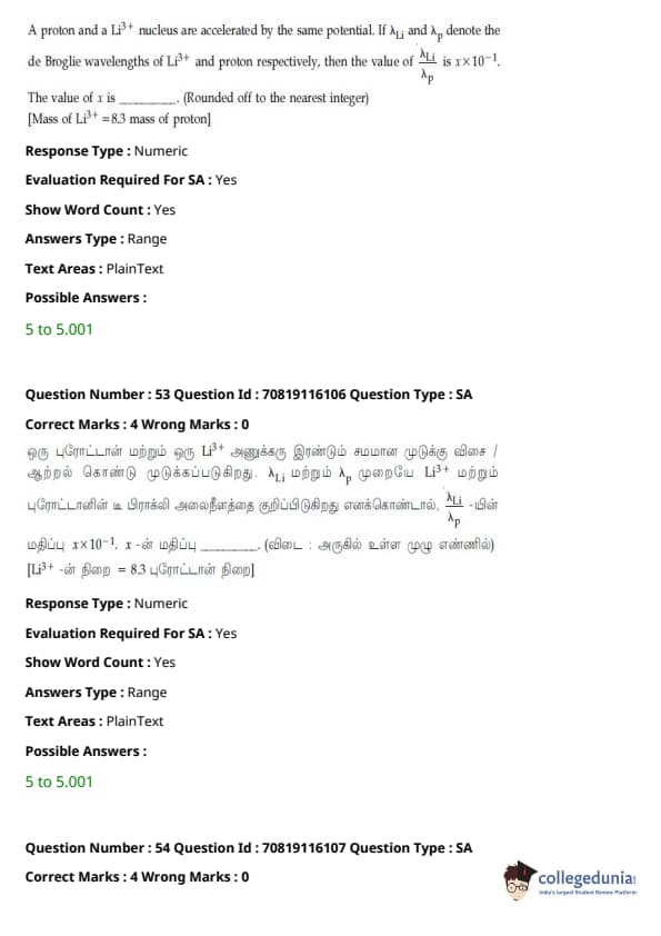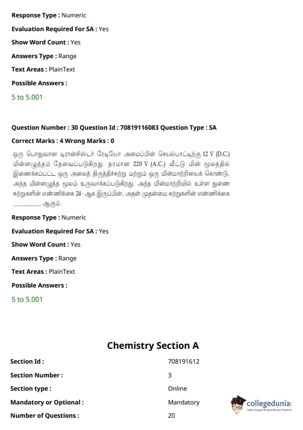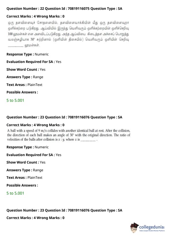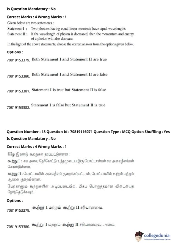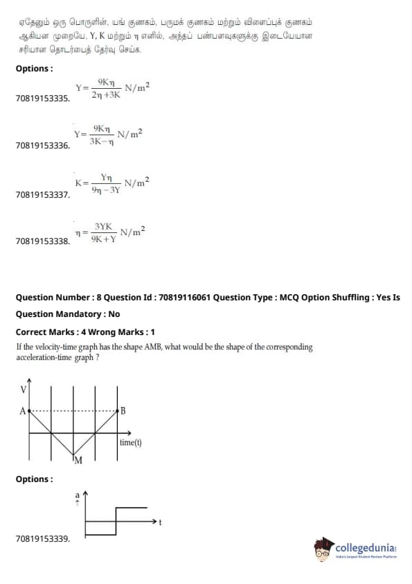 - இயற்பியல் பிரிவு மற்ற பிரிவுகளை விட ஒப்பீட்டளவில் எளிதாக இருந்தது. கோட்பாட்டின் அடிப்படையிலான கேள்விகளை விட கணக்கீடுகள் அடிப்படையிலான கேள்விகளின் எண்ணிக்கை அதிகமாக இருந்தாலும், அவை பெரும்பாலும் குறுகியதாகவும் நேரடி சூத்திரத்தின் ஒன்று அல்லது வேறு வேறுபாட்டை உள்ளடக்கியதாகவும் இருந்தன.