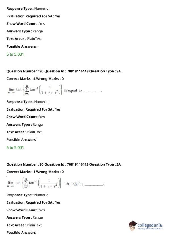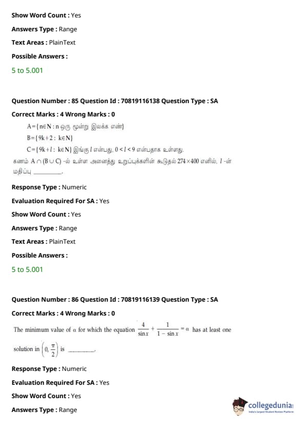 JEE Main B.E/ B. Tech வினாத்தாள் பதில் திறவுகோல் PDFகளுடன்