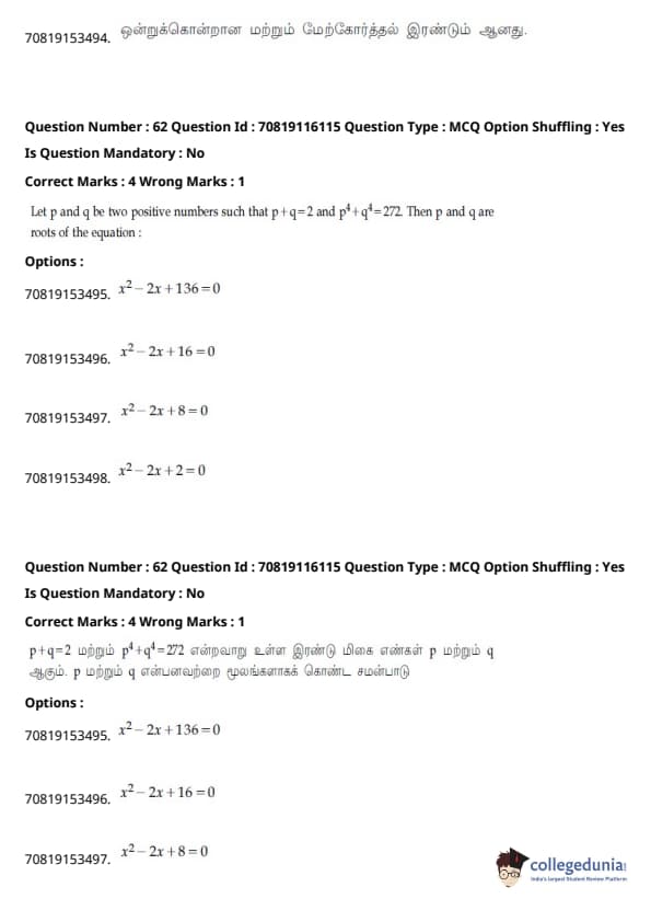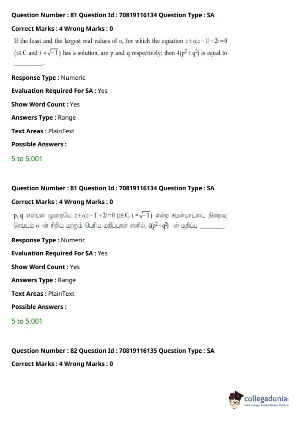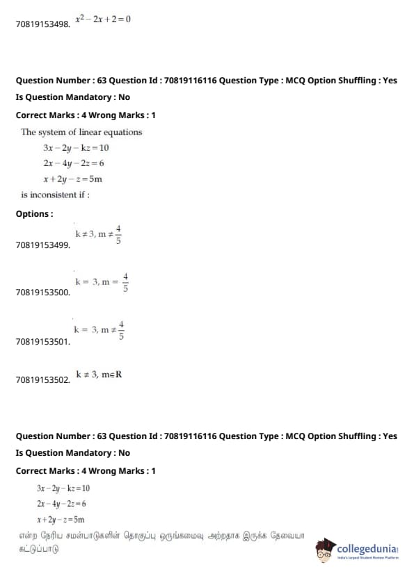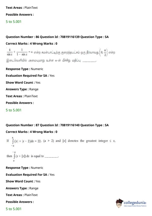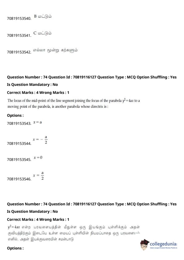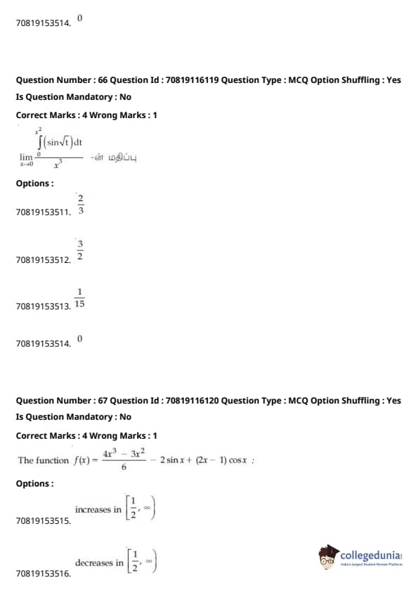 - வழக்கம் போல், கணிதம் தேர்வின் கடினமான பகுதியாக இருந்தது, ஒருங்கிணைப்புகள் மற்றும் இயற்கணிதம் பற்றிய கேள்விகள் நீளமாக இருந்தன.