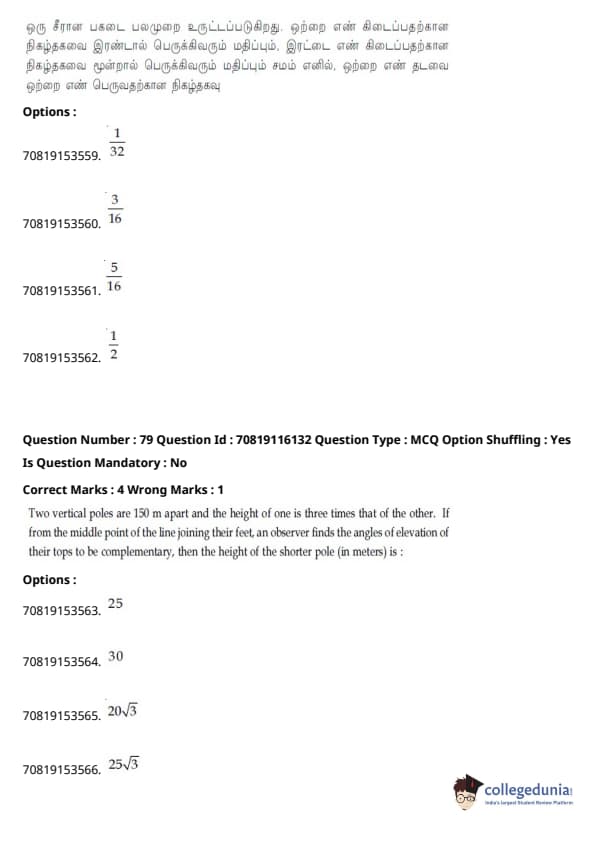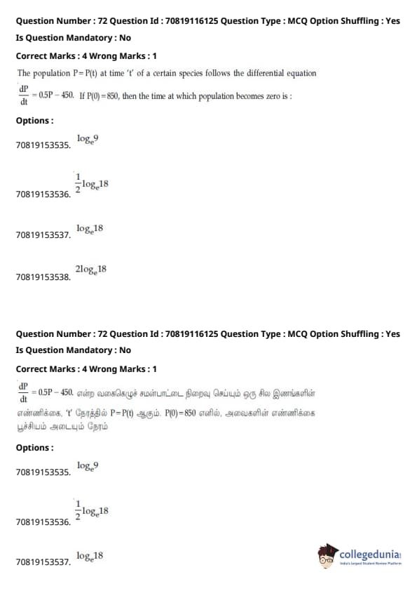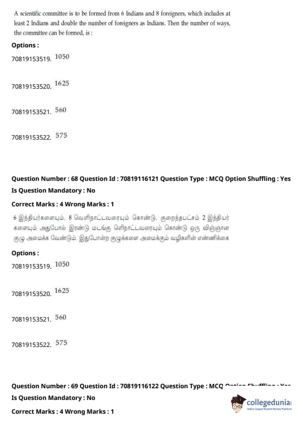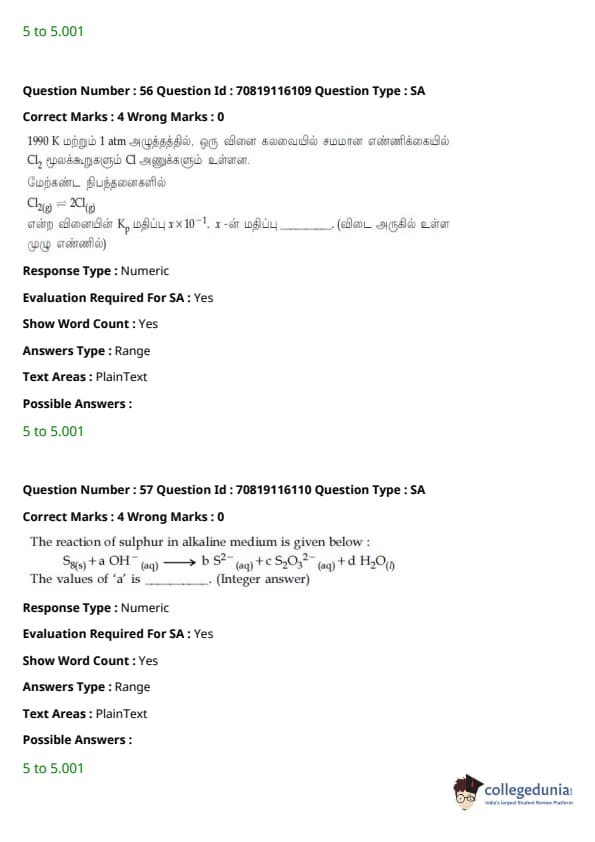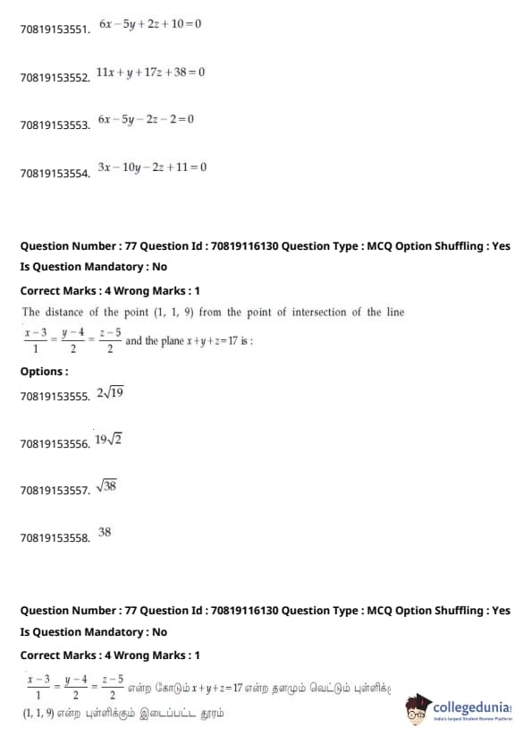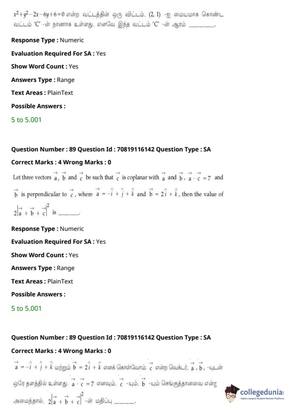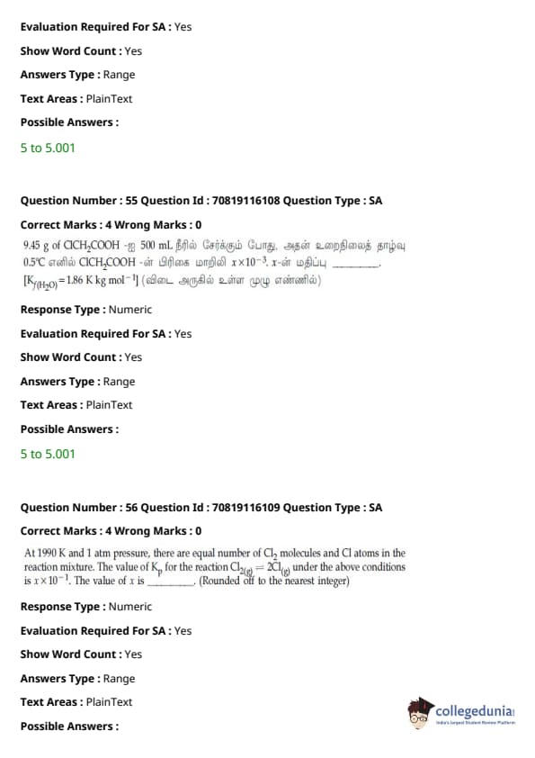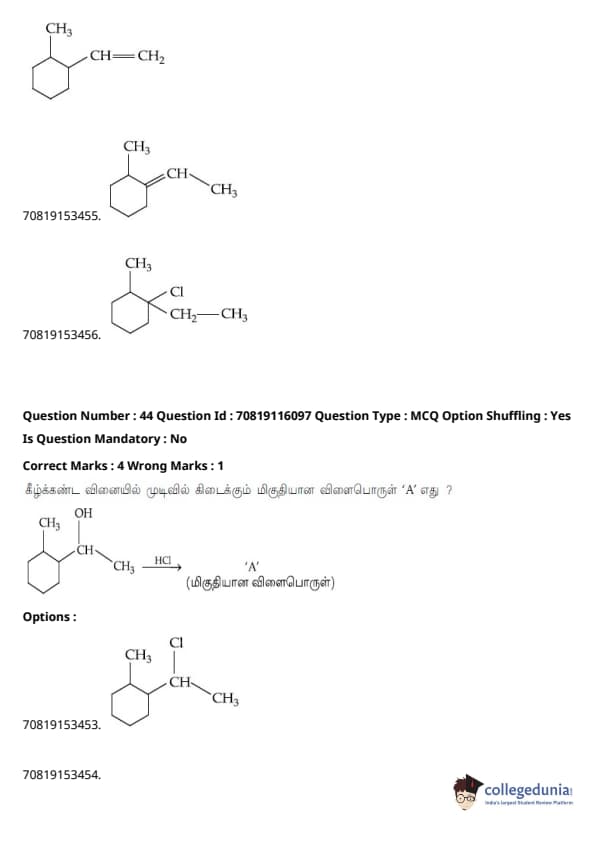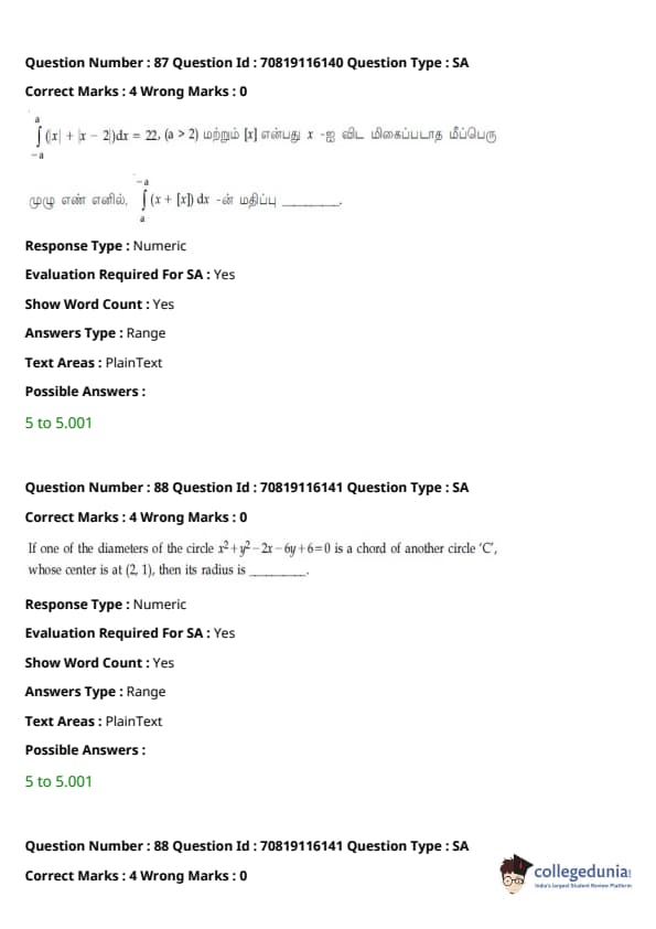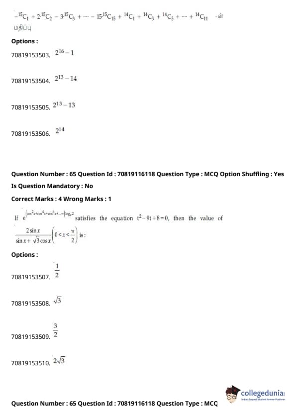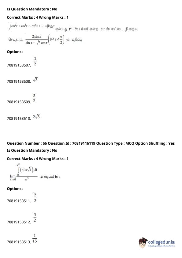 JEE Main கணிதம்வினாத்தாள் | JEE Main வேதியியல்வினாத்தாள் |