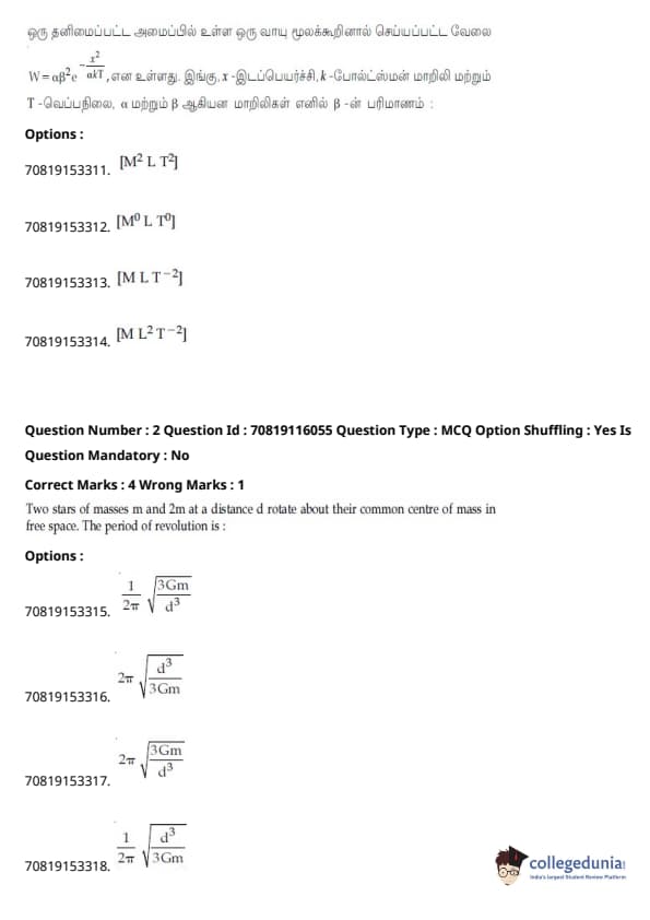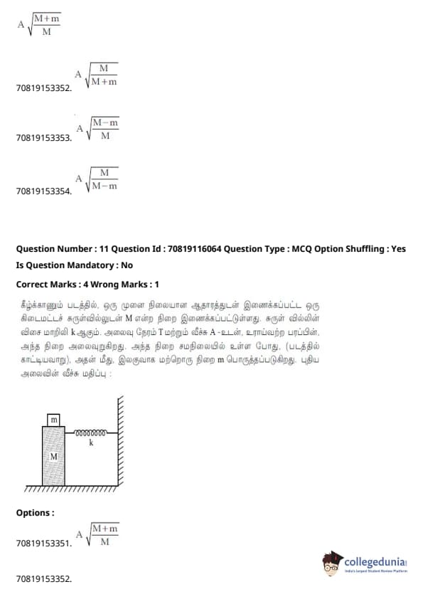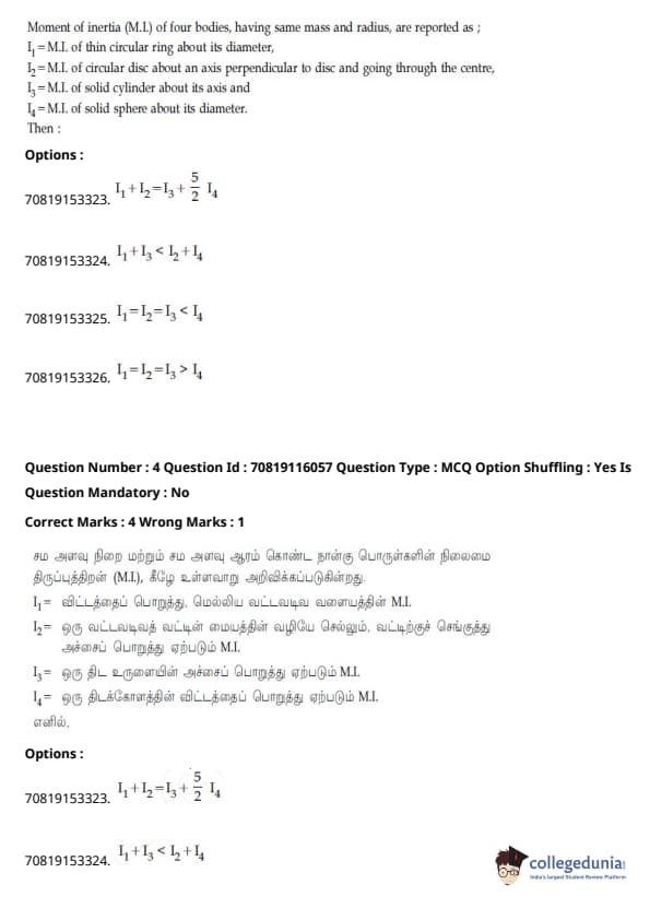 | JEE Main இயற்பியல் வினாத்தாள் |