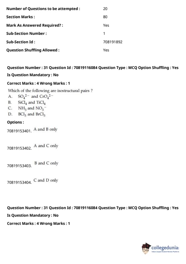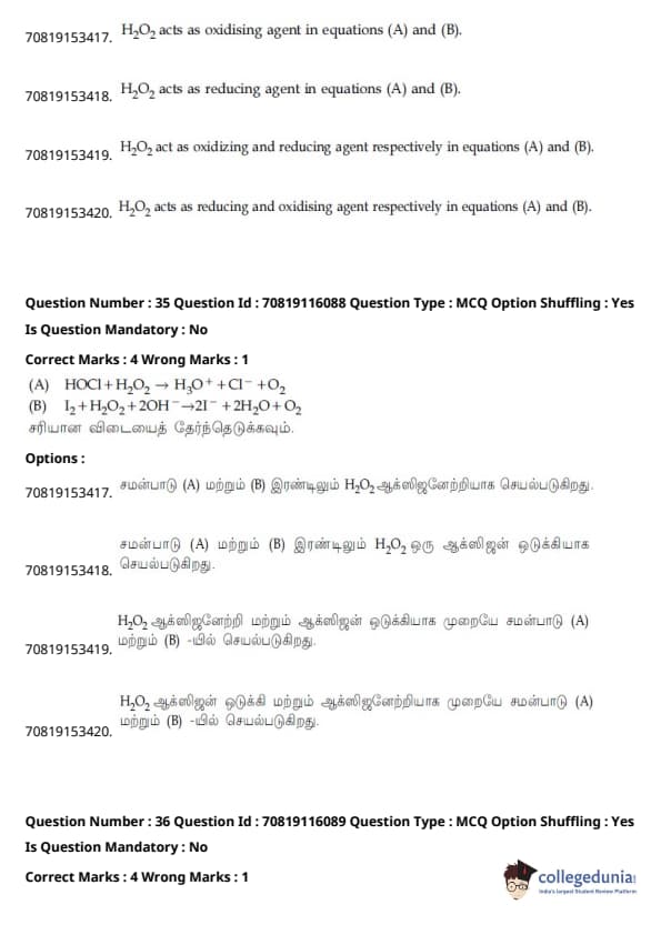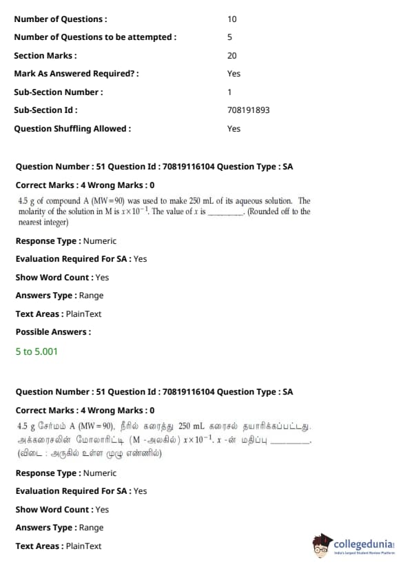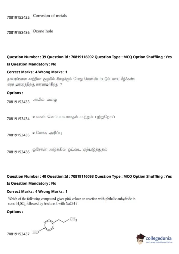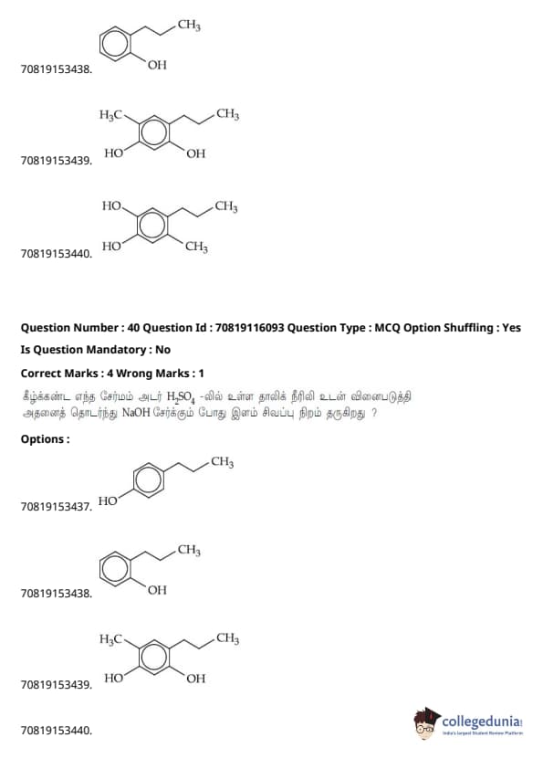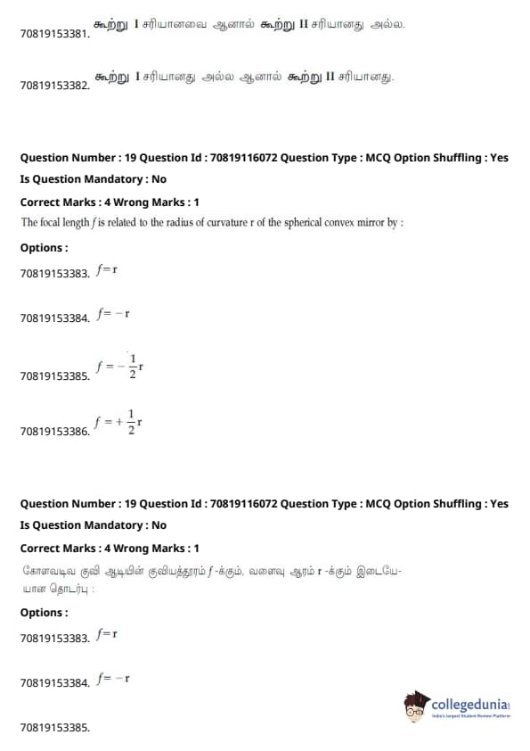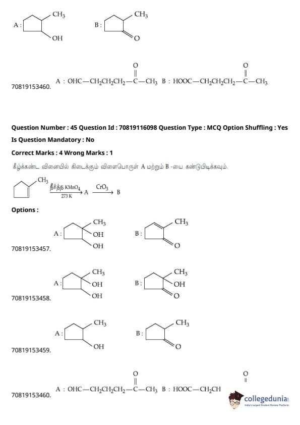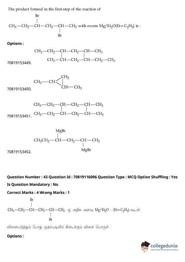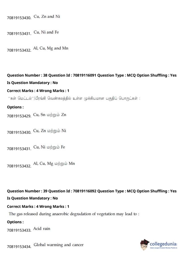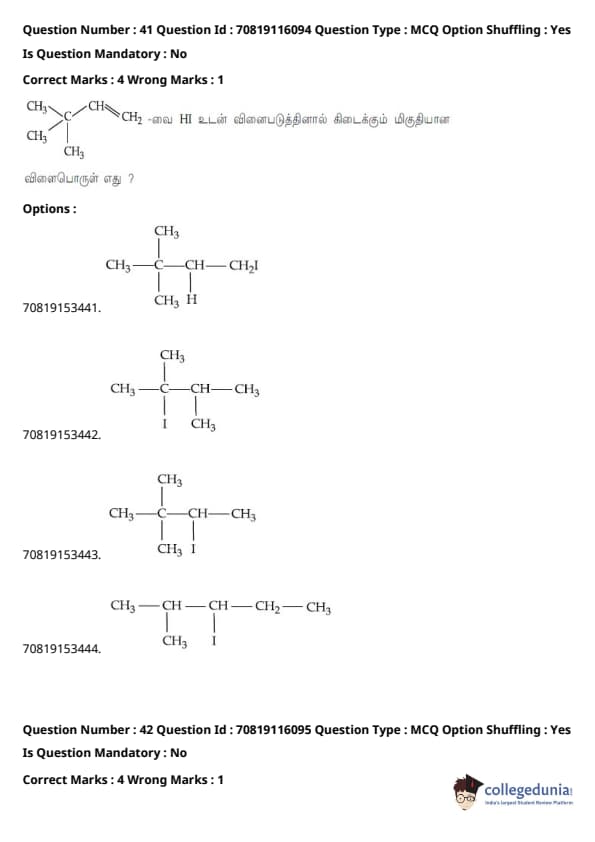 - தாளில் பன்னிரண்டாம் வகுப்பு பாடத்திட்டத்தில் இருந்து சுமார் 48 கேள்விகளும், பன்னிரெண்டாம் வகுப்பு பாடத்திட்டத்தில் இருந்து சுமார் 42 கேள்விகளும் கேட்கப்பட்டன.
