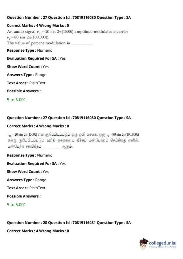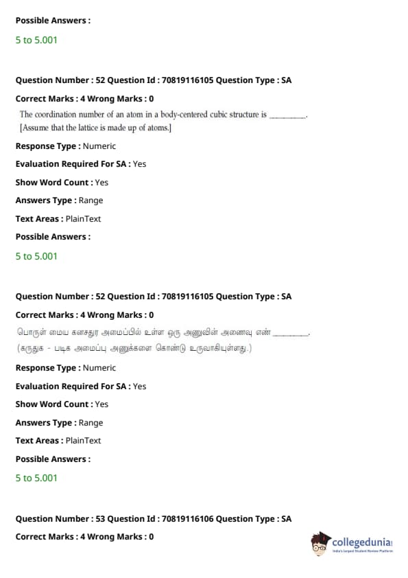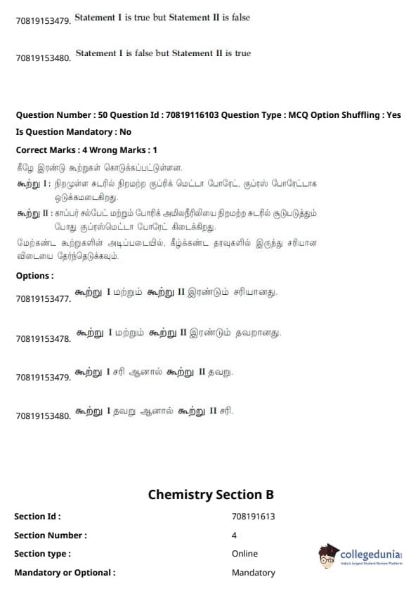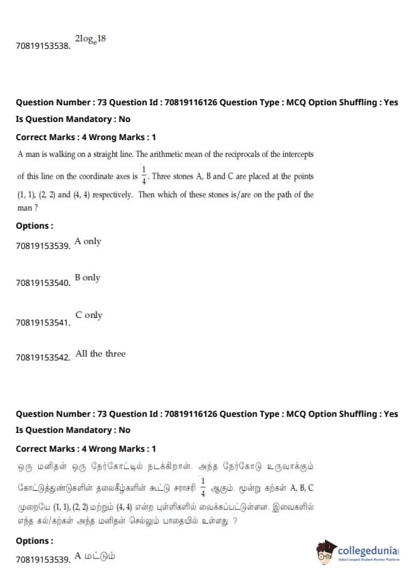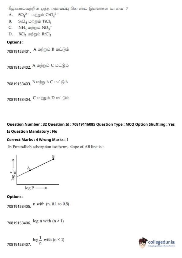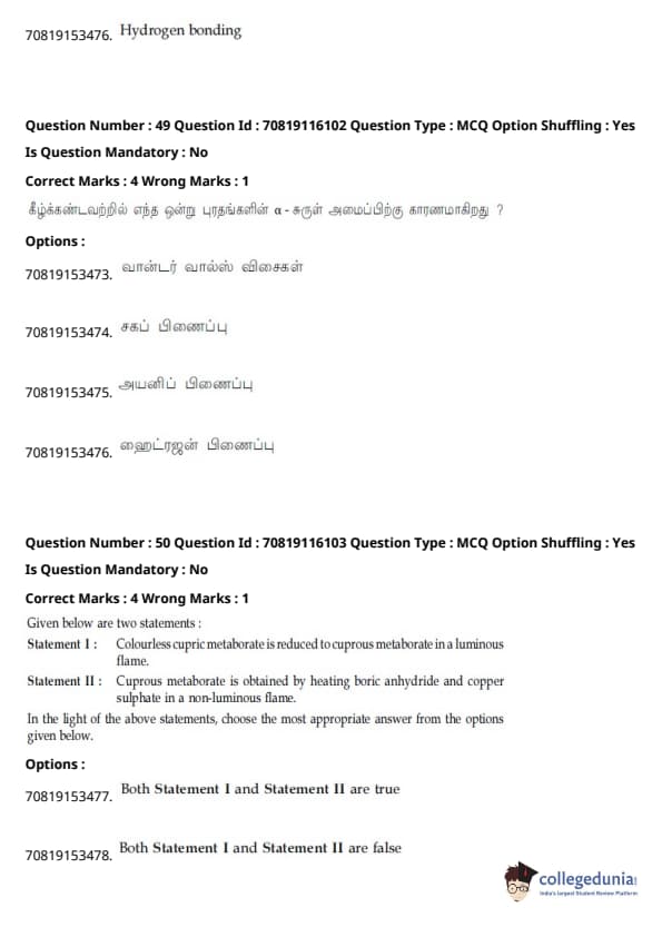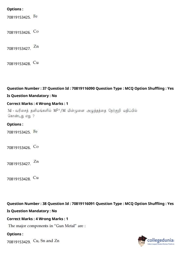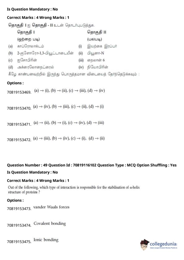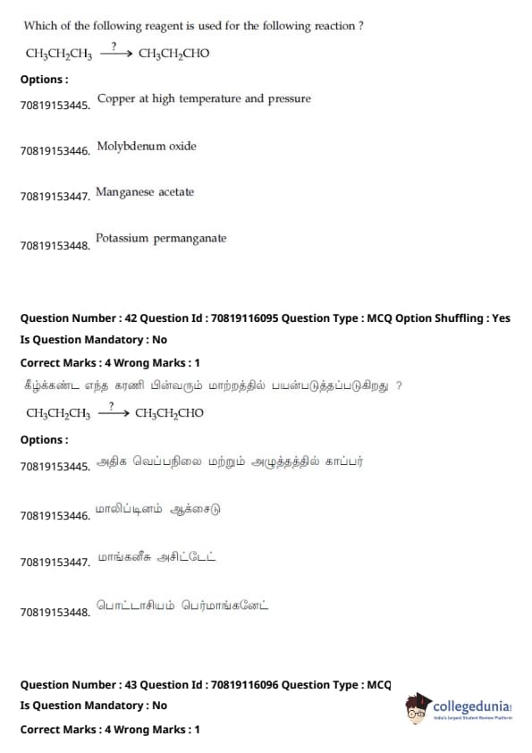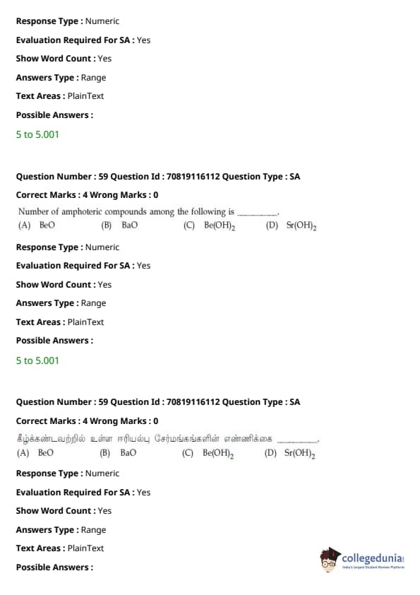 - தாளில் பன்னிரண்டாம் வகுப்பு பாடத்திட்டத்தில் இருந்து சுமார் 48 கேள்விகளும், பன்னிரெண்டாம் வகுப்பு பாடத்திட்டத்தில் இருந்து சுமார் 42 கேள்விகளும் கேட்கப்பட்டன.