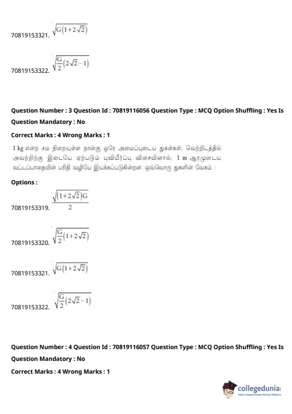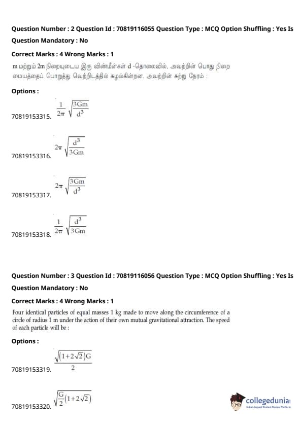 | JEE Main 2020 வினாத்தாள் | JEE Main 2019 வினாத்தாள் | JEE Main 2018 வினாத்தாள் |