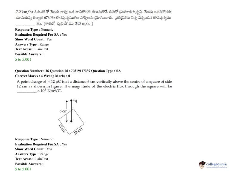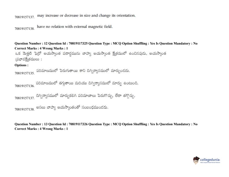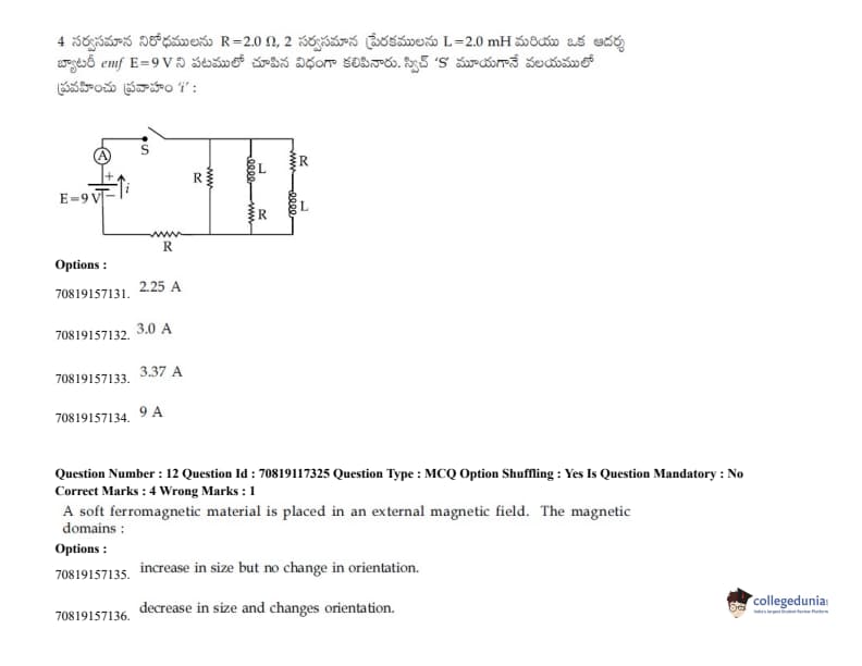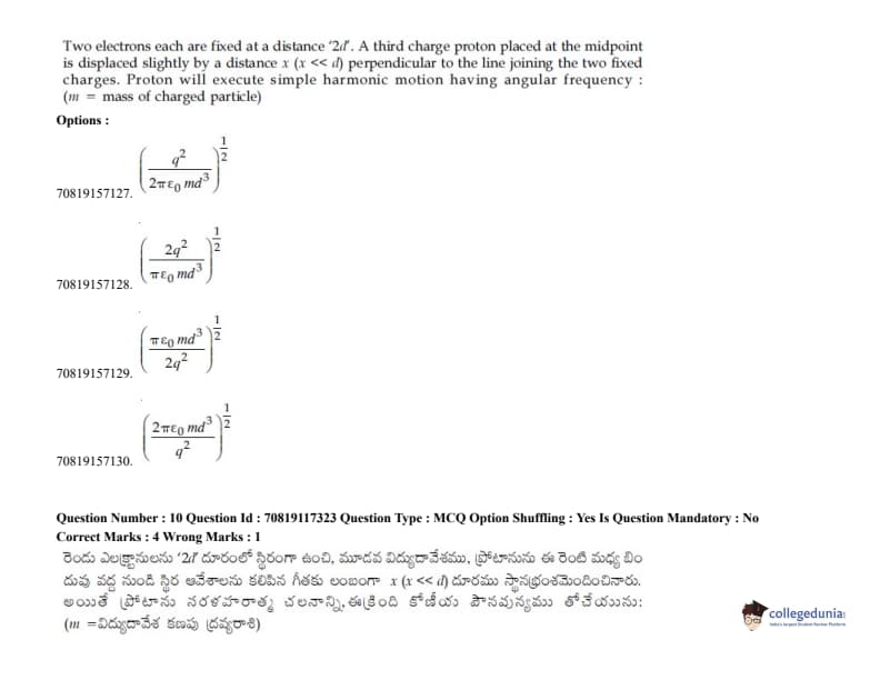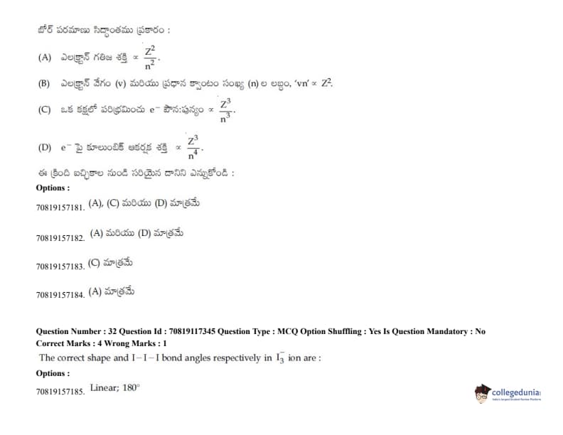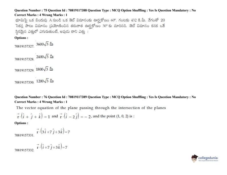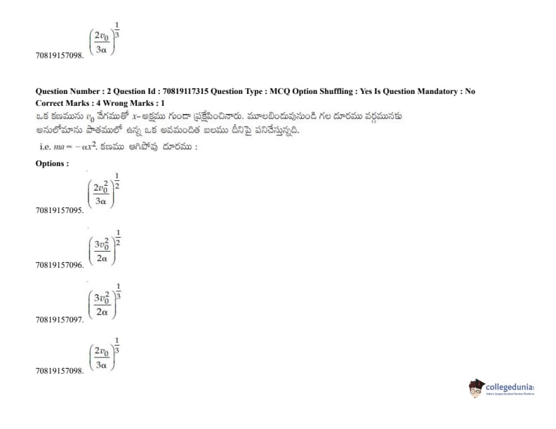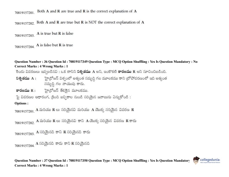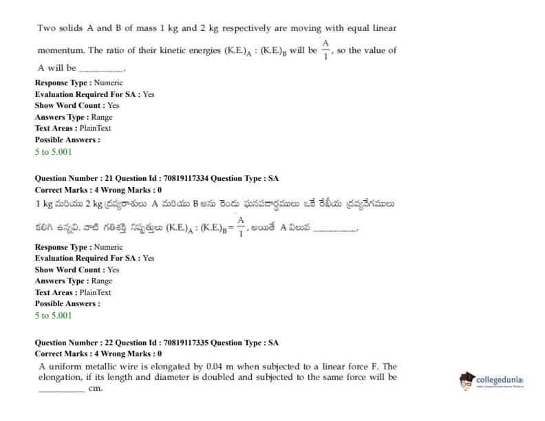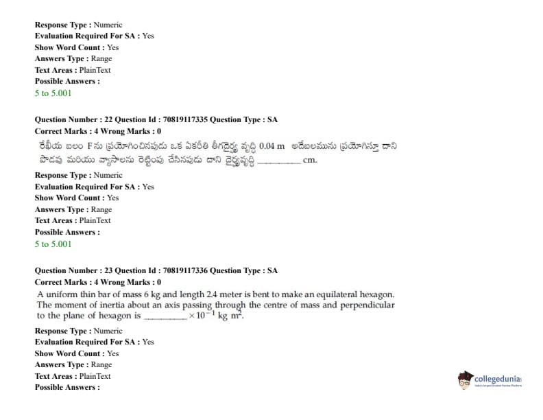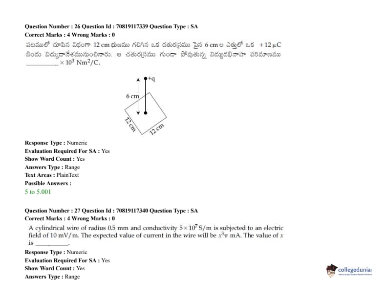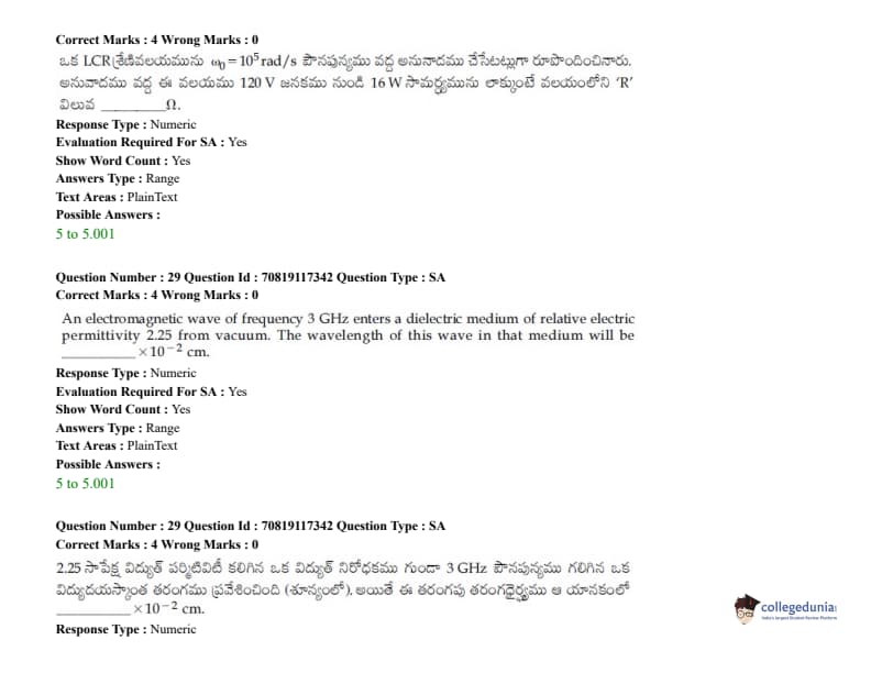 | JEE Main ఫిజిక్స్ ప్రశ్నాపత్రం | జేఈఈ Main మ్యాథ్స్ ప్రశ్నాపత్రం | JEE Main కెమిస్ట్రీ ప్రశ్నాపత్రం |