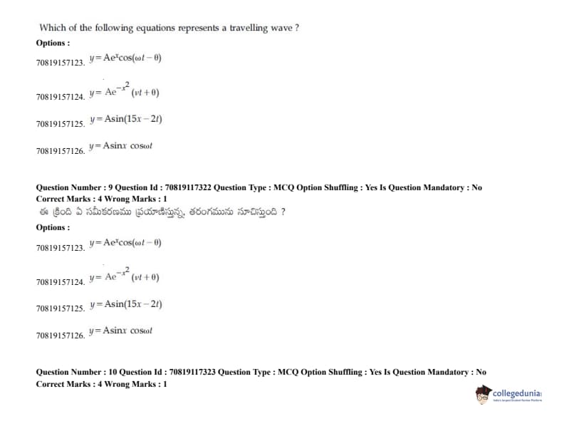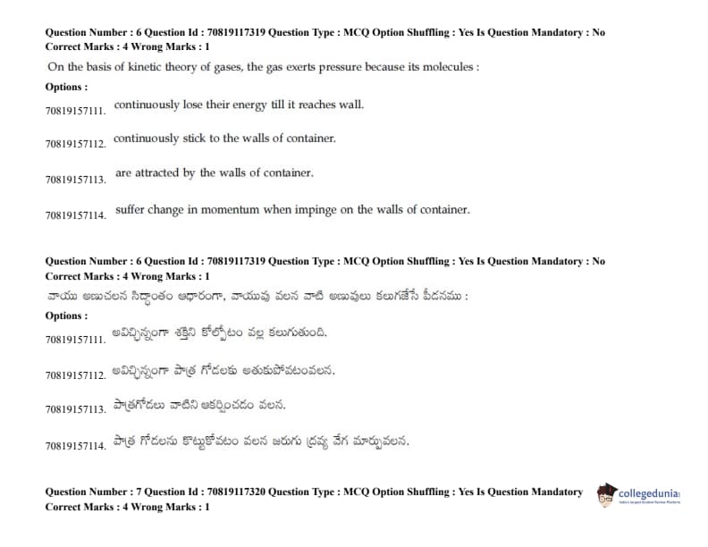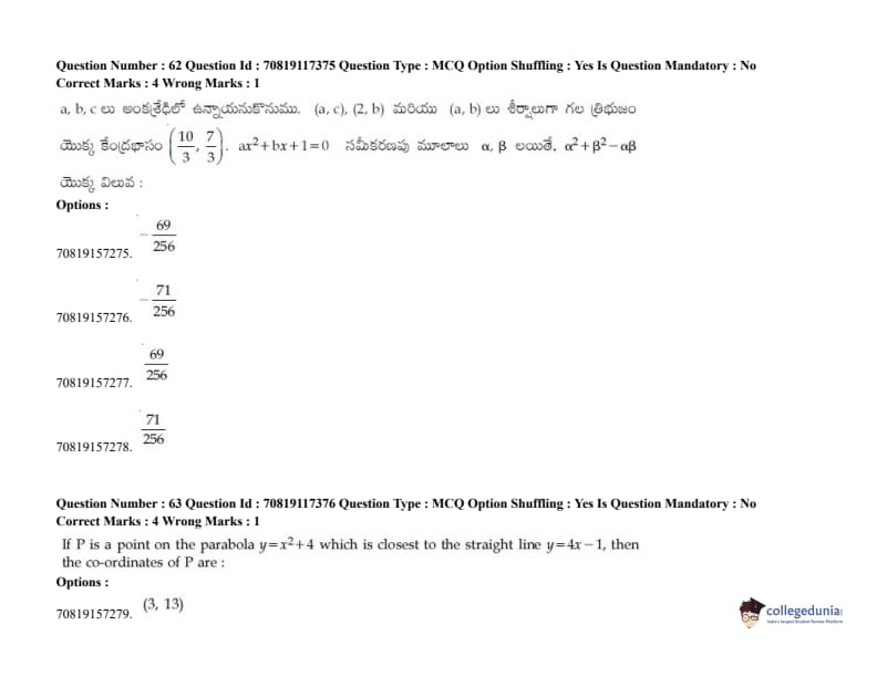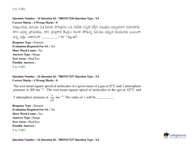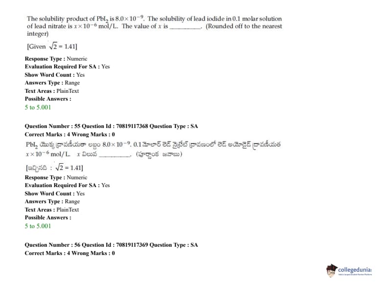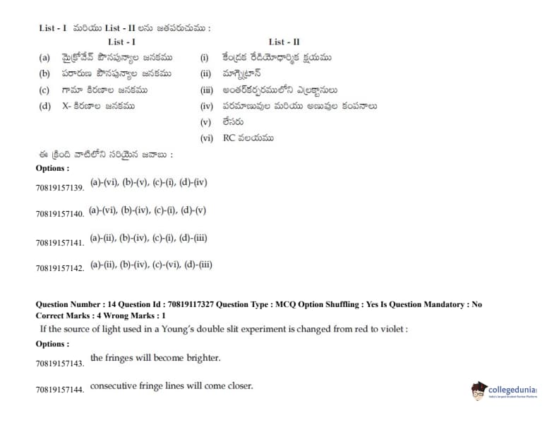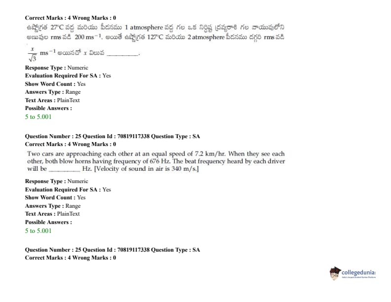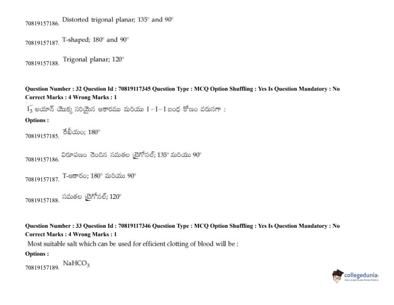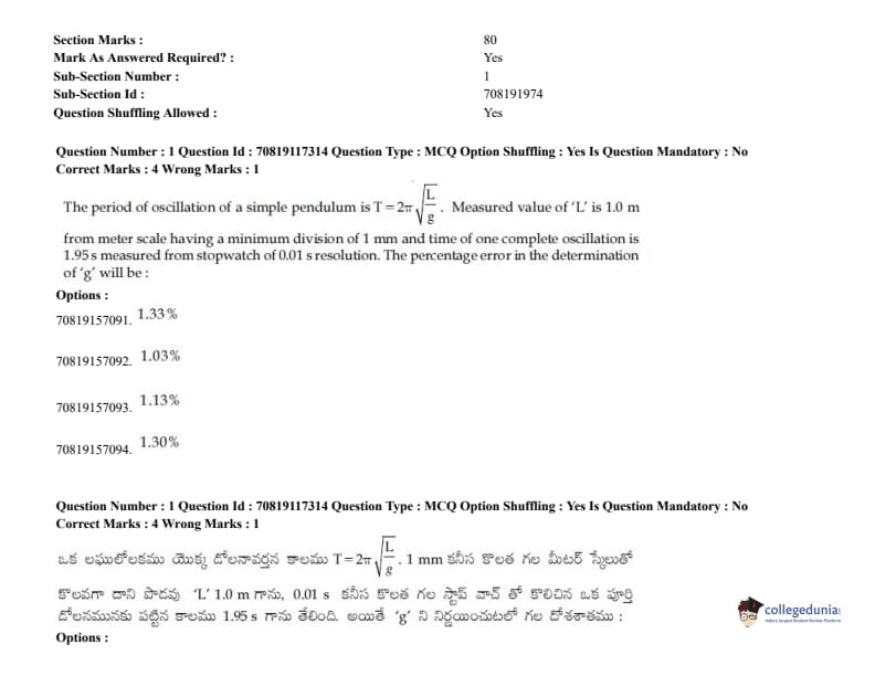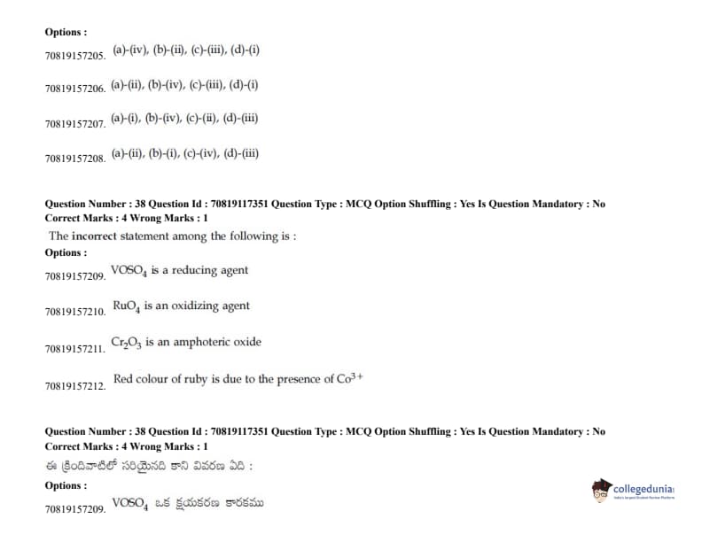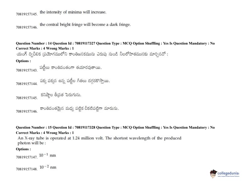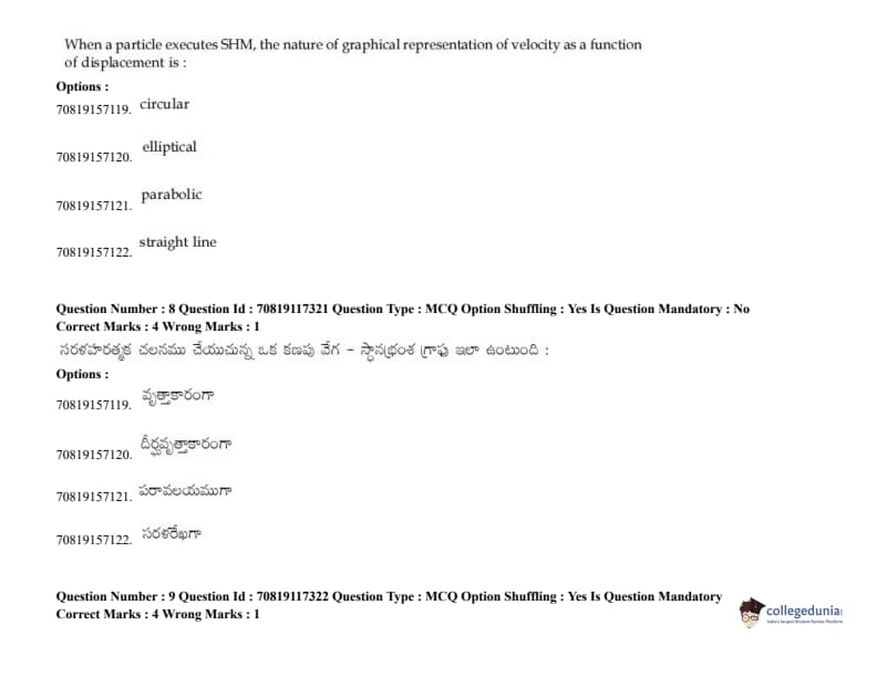 | JEE Main ఫిజిక్స్ ప్రశ్నాపత్రం | జేఈఈ Main మ్యాథ్స్ ప్రశ్నాపత్రం | JEE Main కెమిస్ట్రీ ప్రశ్నాపత్రం |