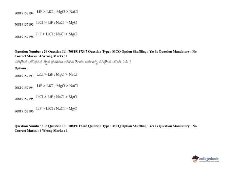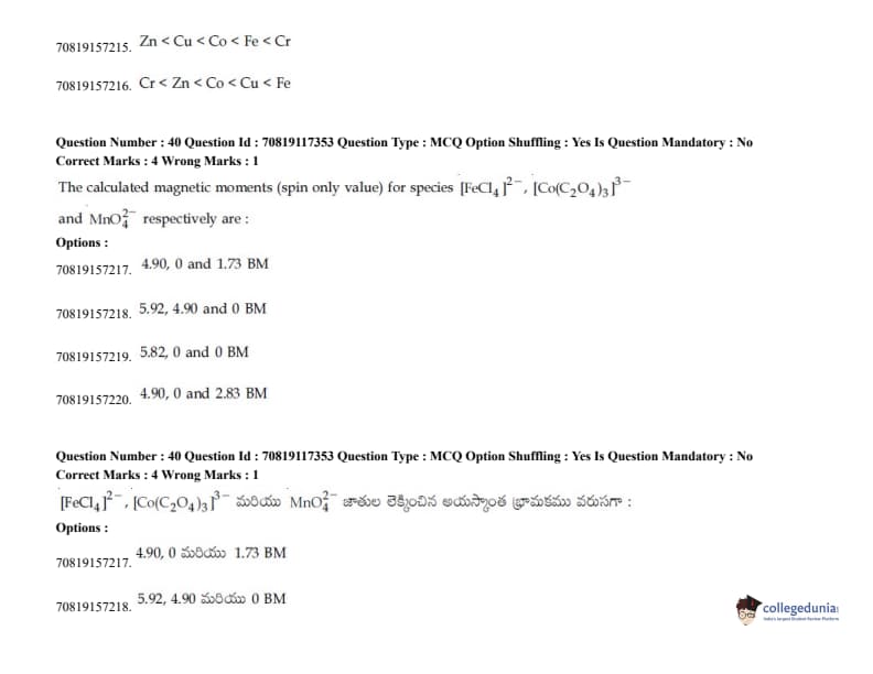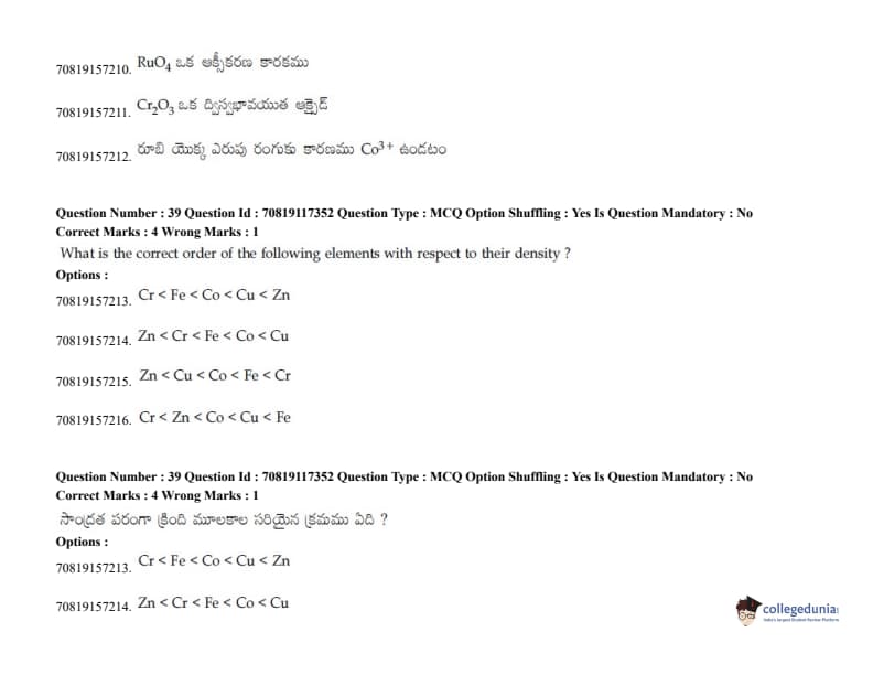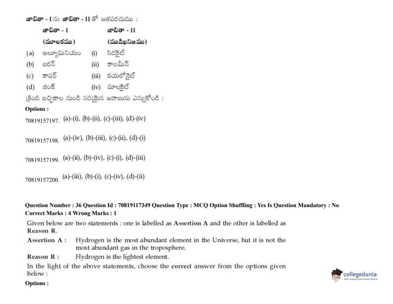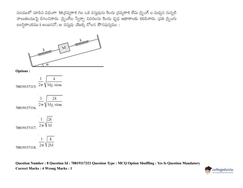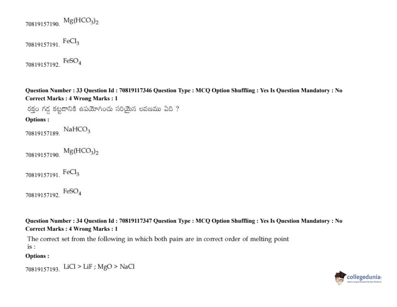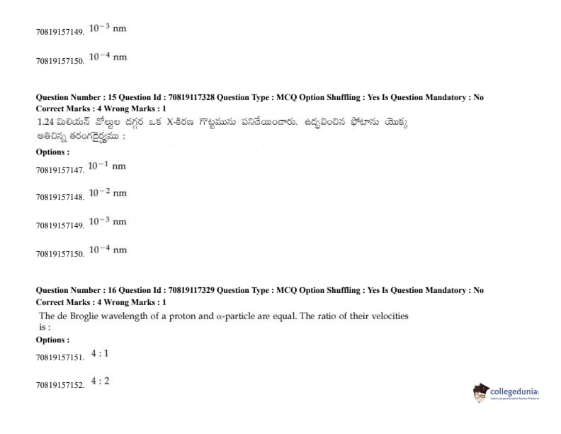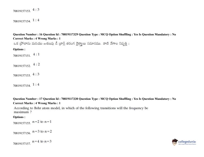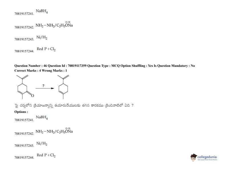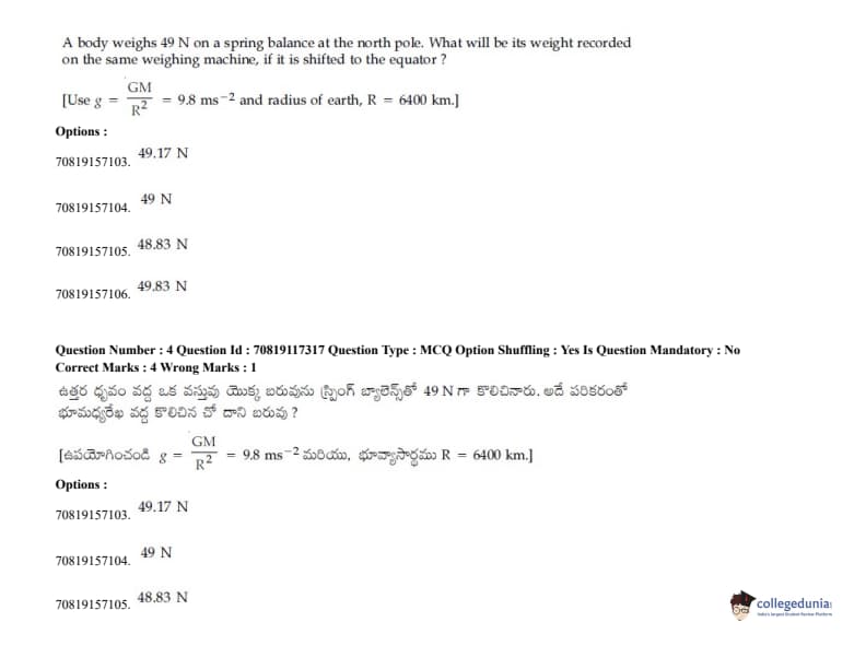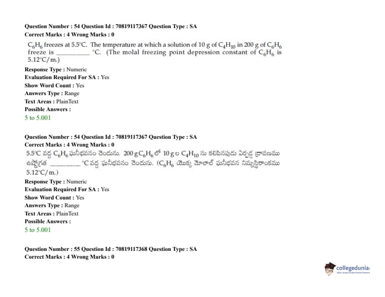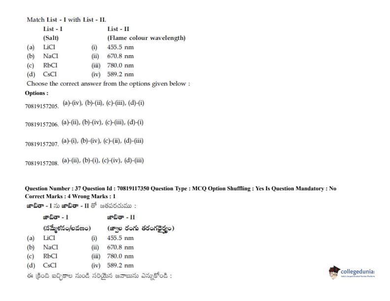 | JEE Main ఫిజిక్స్ ప్రశ్నాపత్రం | జేఈఈ Main మ్యాథ్స్ ప్రశ్నాపత్రం | JEE Main కెమిస్ట్రీ ప్రశ్నాపత్రం |