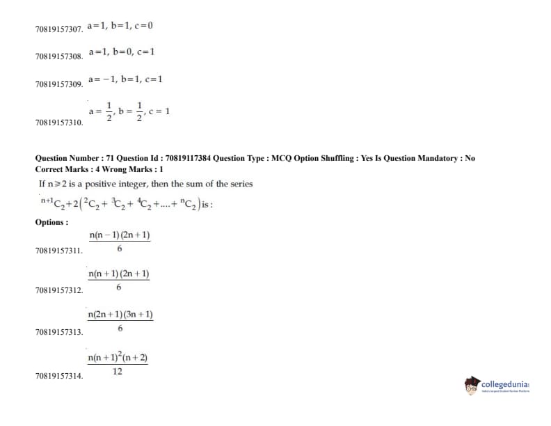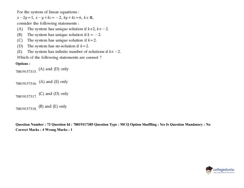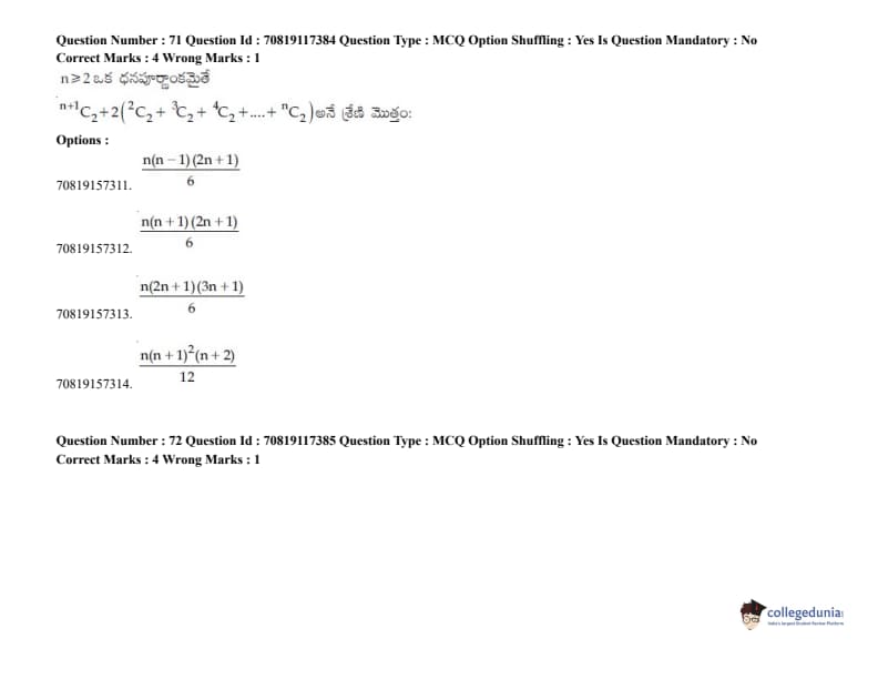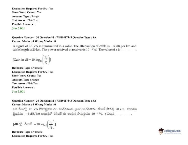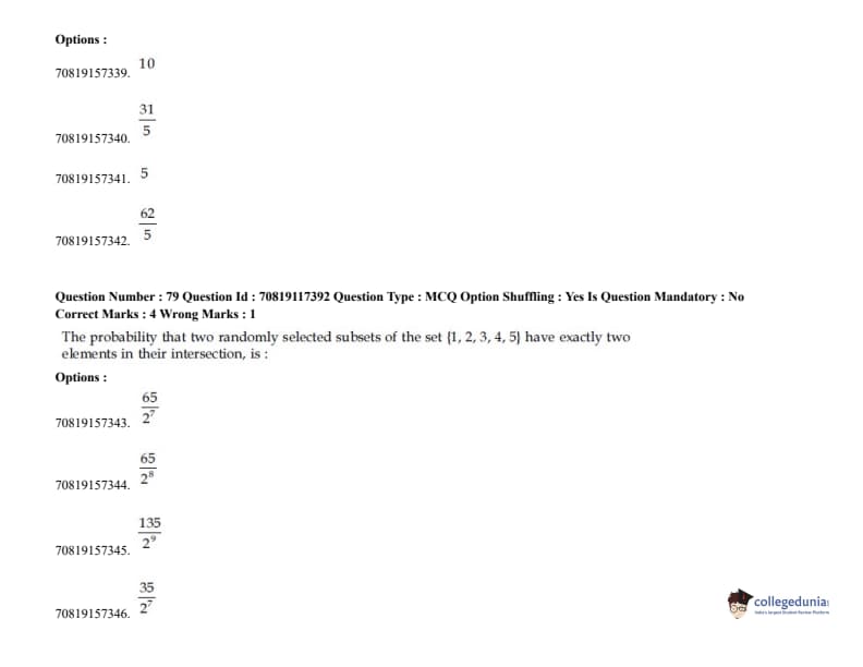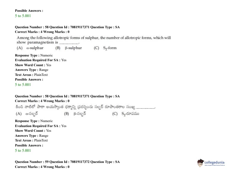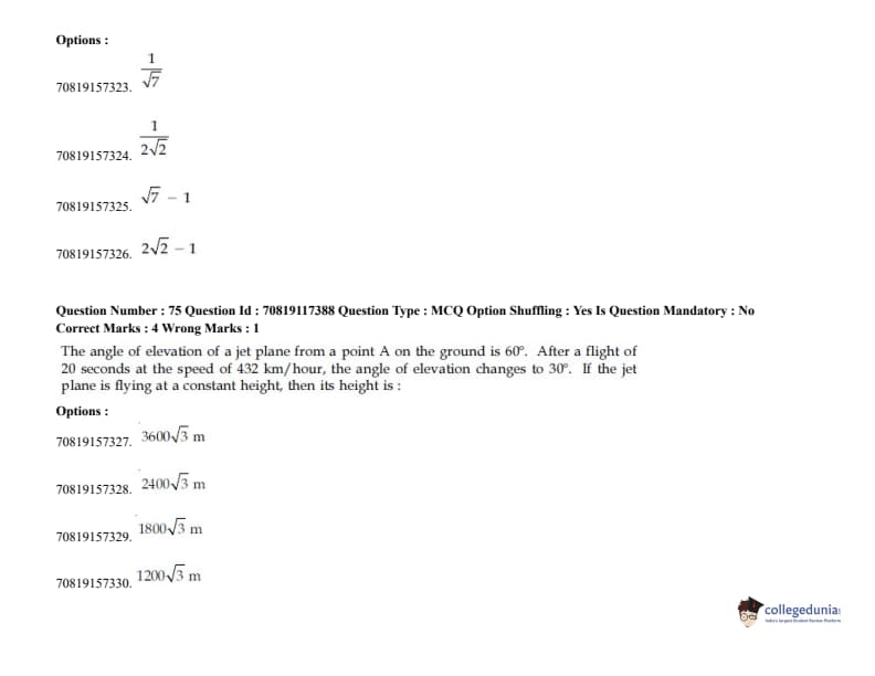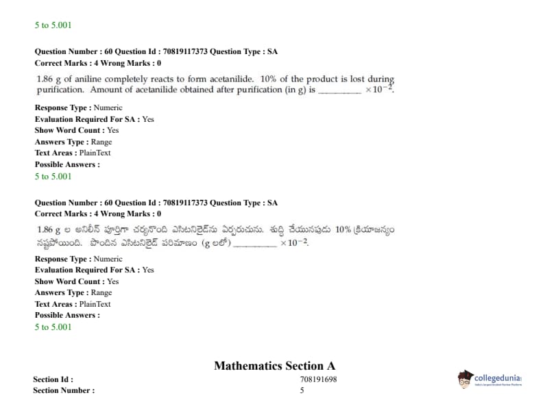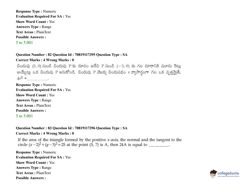 - ప్రతి విభాగంలో 10 పూర్ణాంకాల రకం సంఖ్యాపరమైన సమాధాన ప్రశ్నలు ఉన్నాయి, వీటిలో అభ్యర్థి ఏదైనా 5ని ప్రయత్నించాలి.