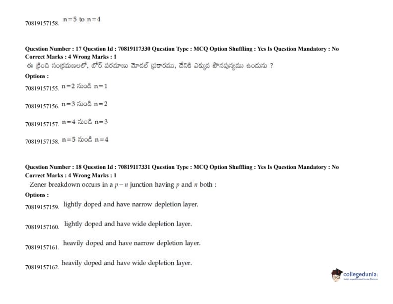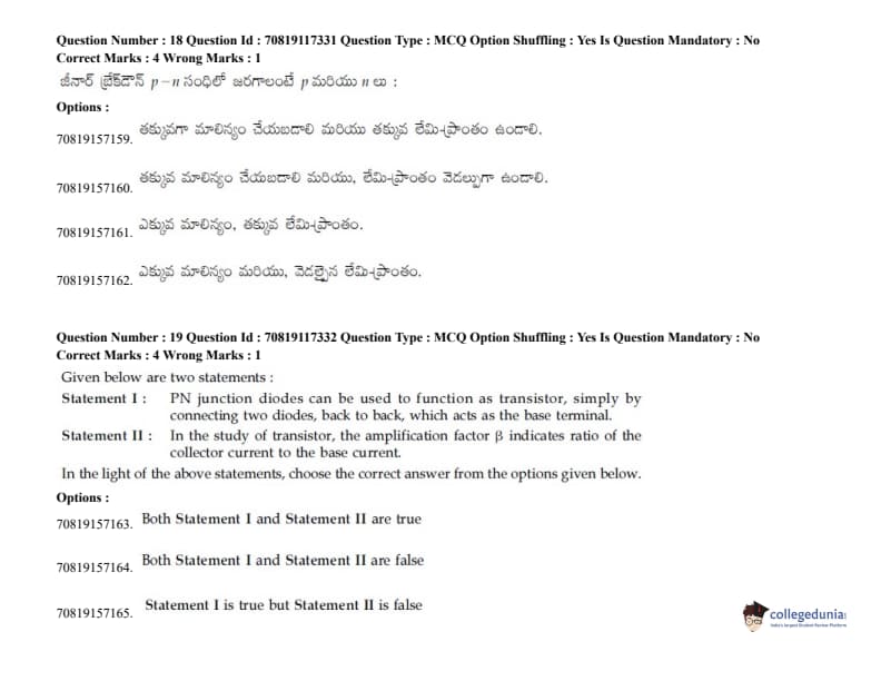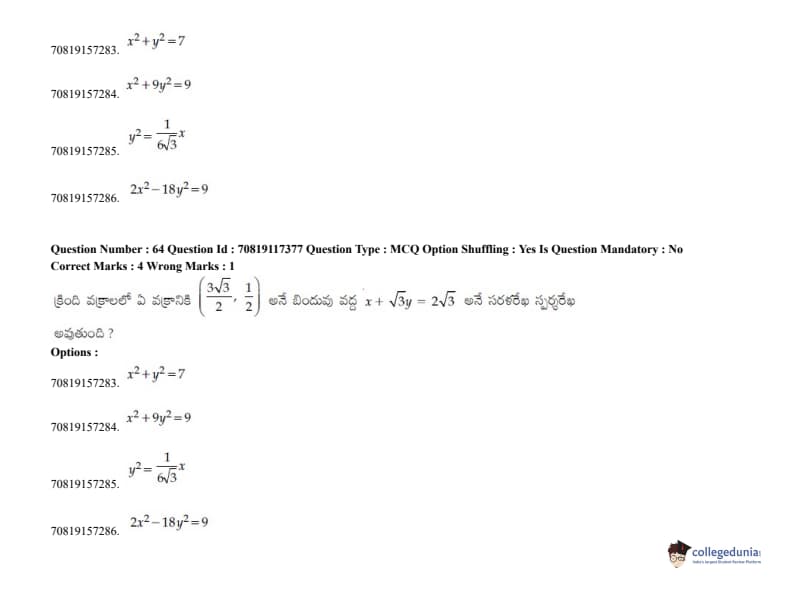| JEE Main 2020 ప్రశ్నాపత్రం | JEE Main 2019 ప్రశ్నాపత్రం | JEE Main 2018 ప్రశ్నాపత్రం |