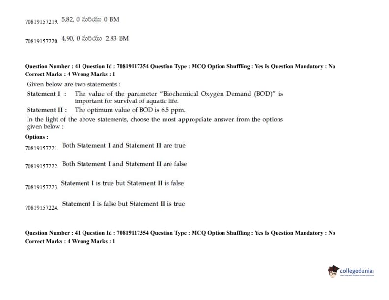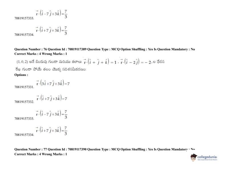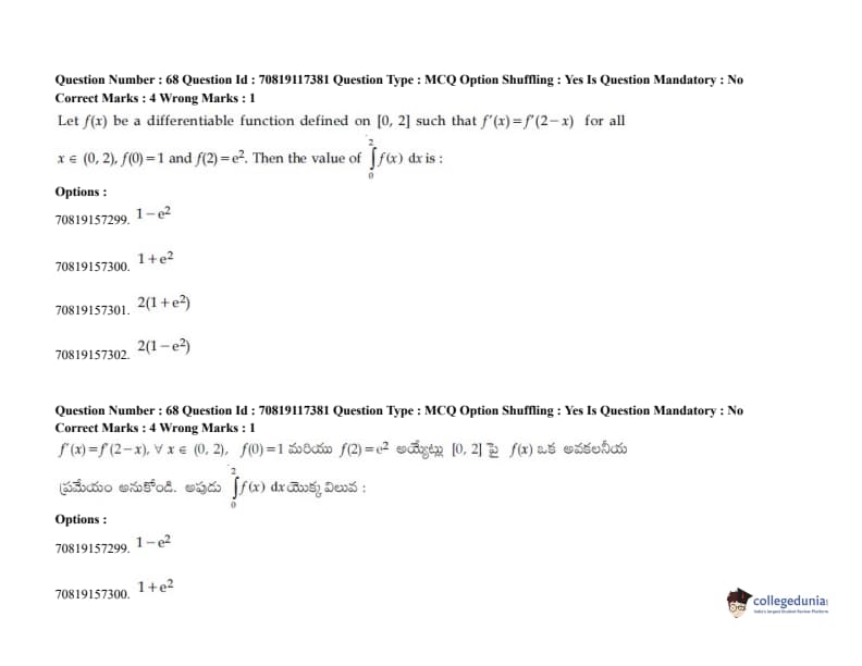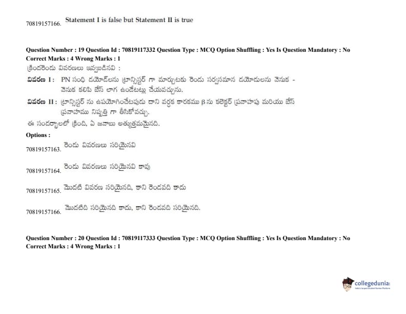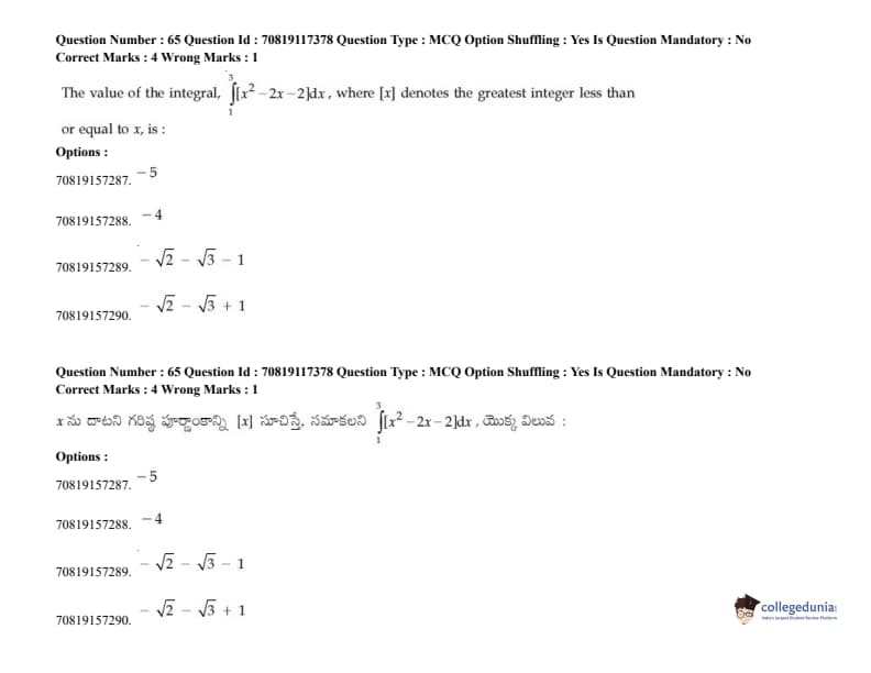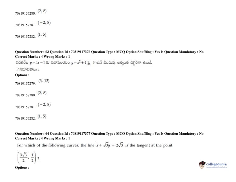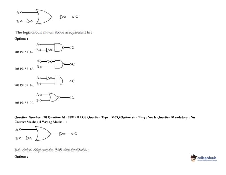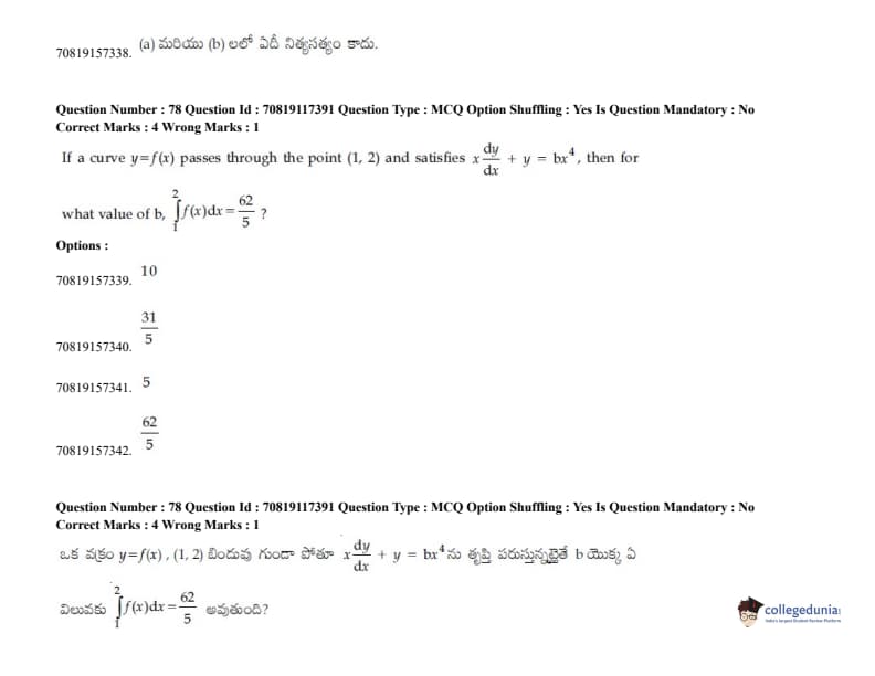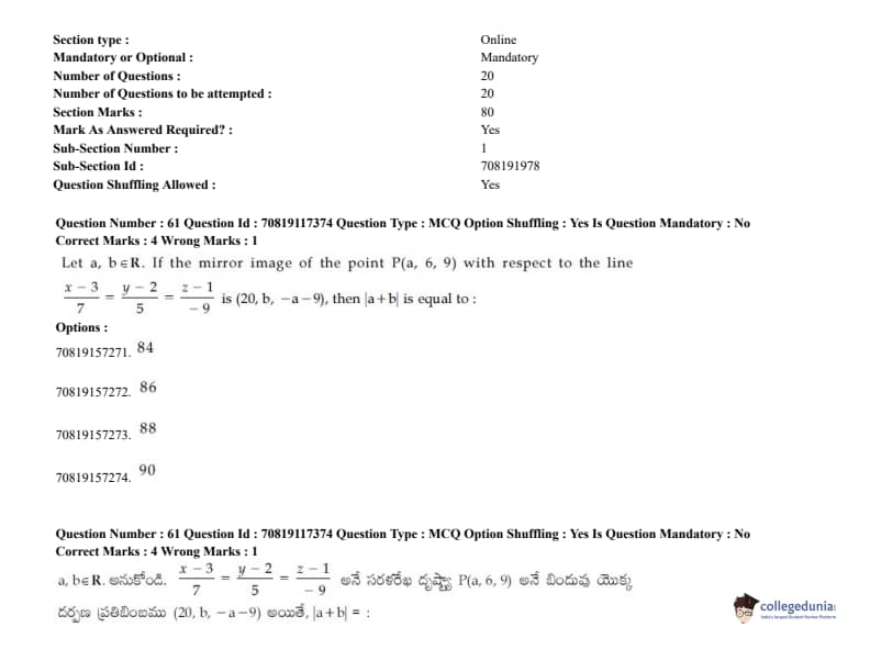 JEE Main B.E./B.Tech ప్రశ్నాపత్రం- ఫిబ్రవరి 24,2021 (మధ్యాహ్నం)