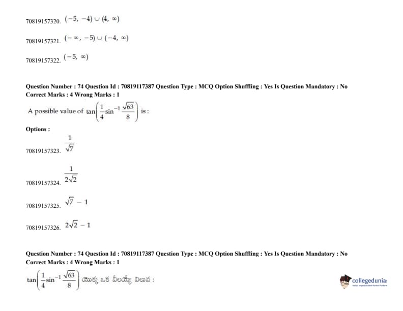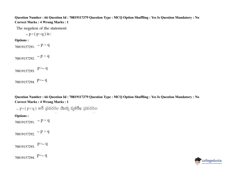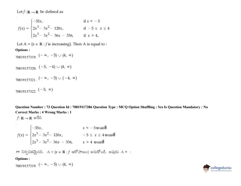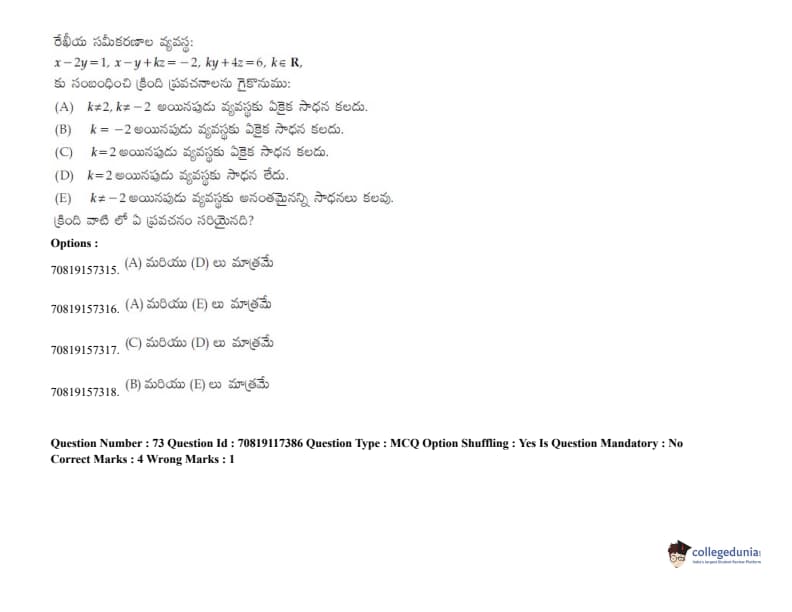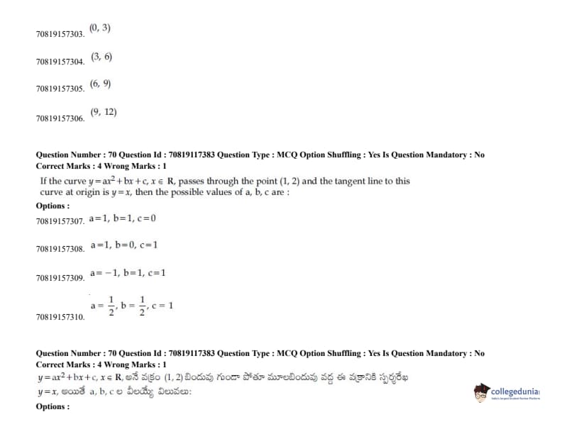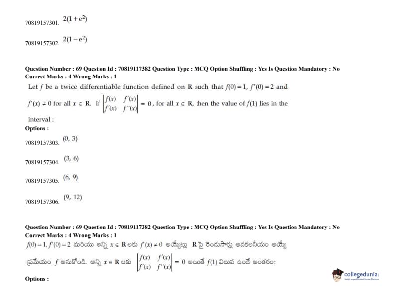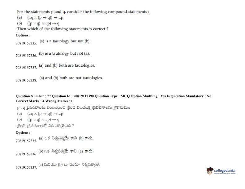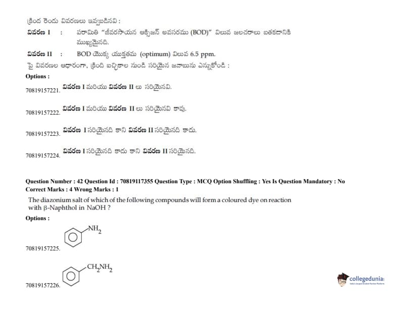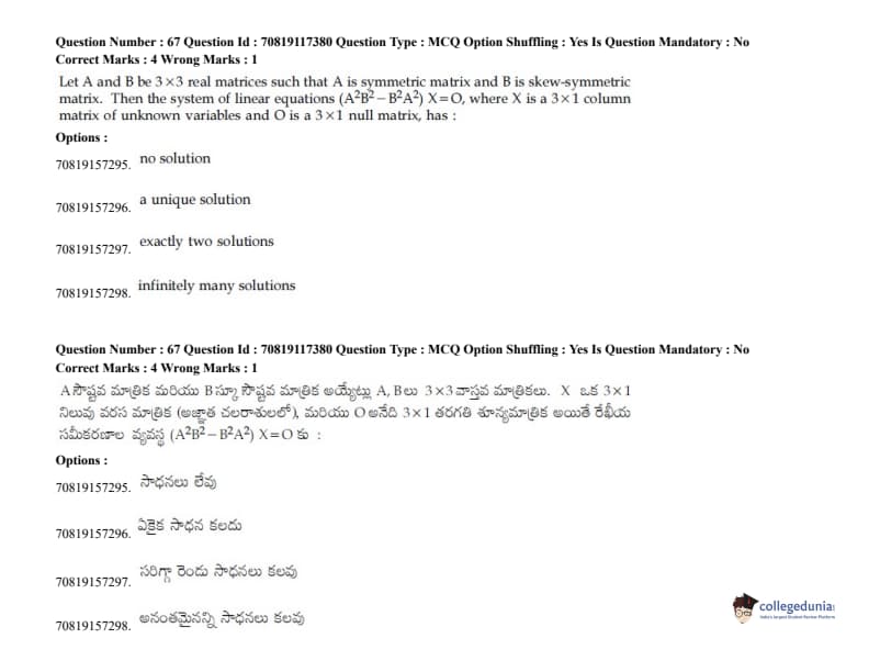 JEE Main B.E./B.Tech ప్రశ్నాపత్రం- ఫిబ్రవరి 24,2021 (మధ్యాహ్నం)