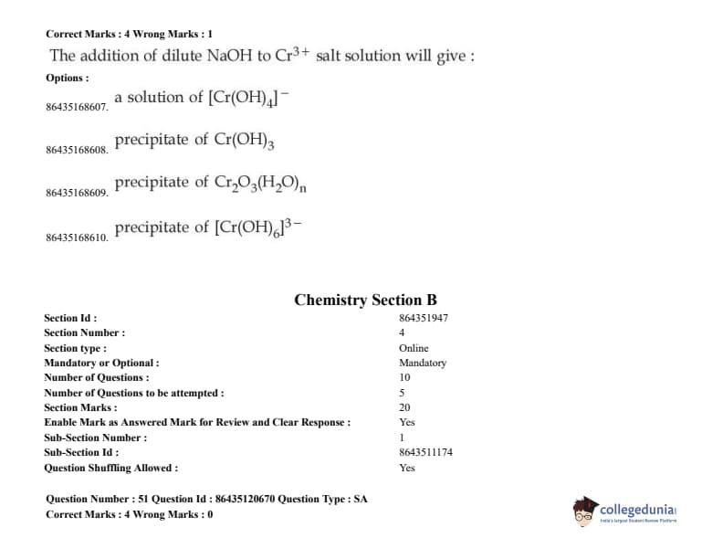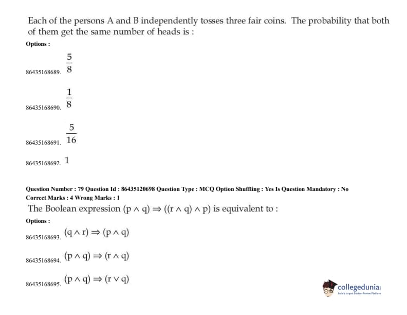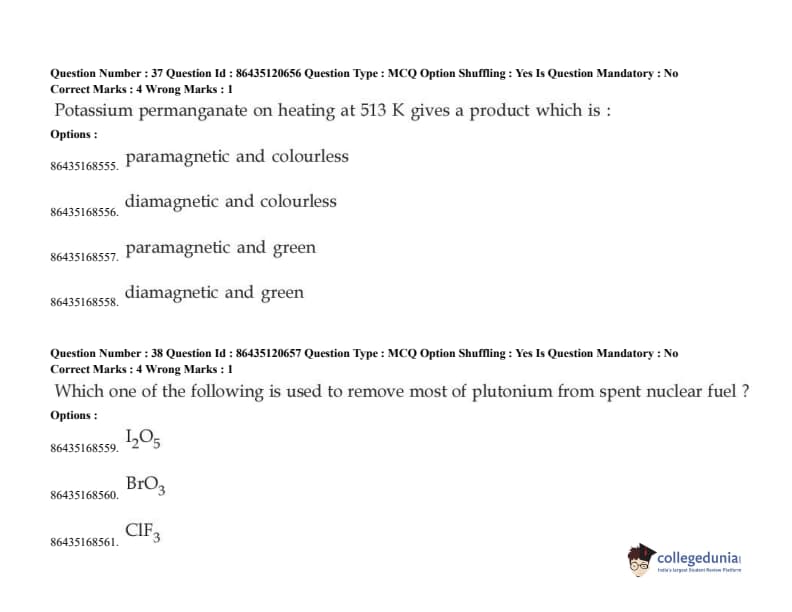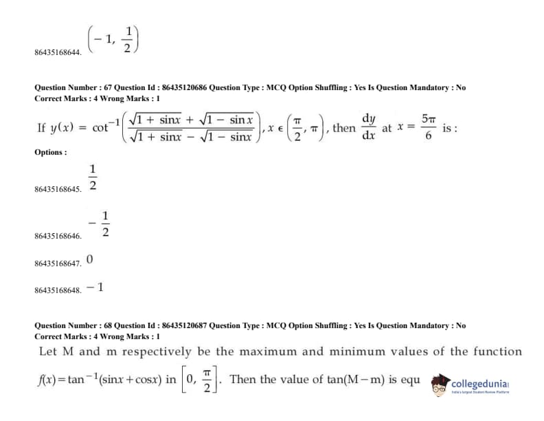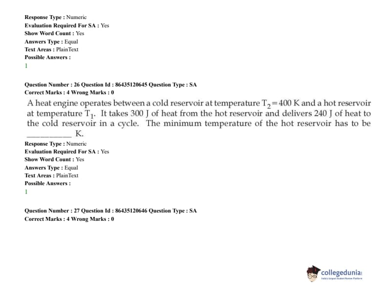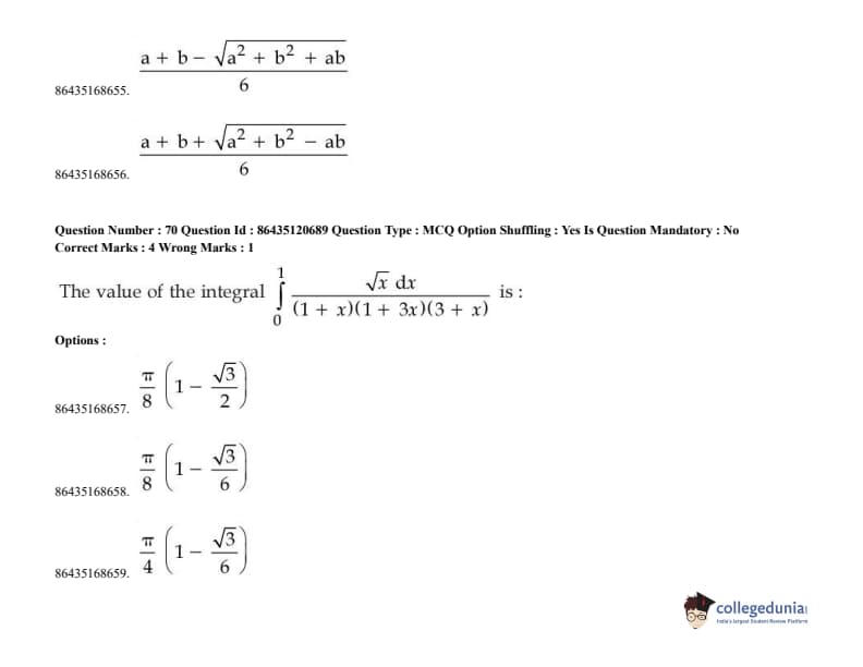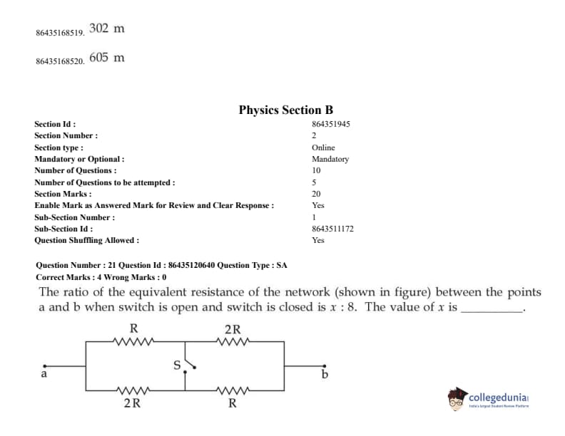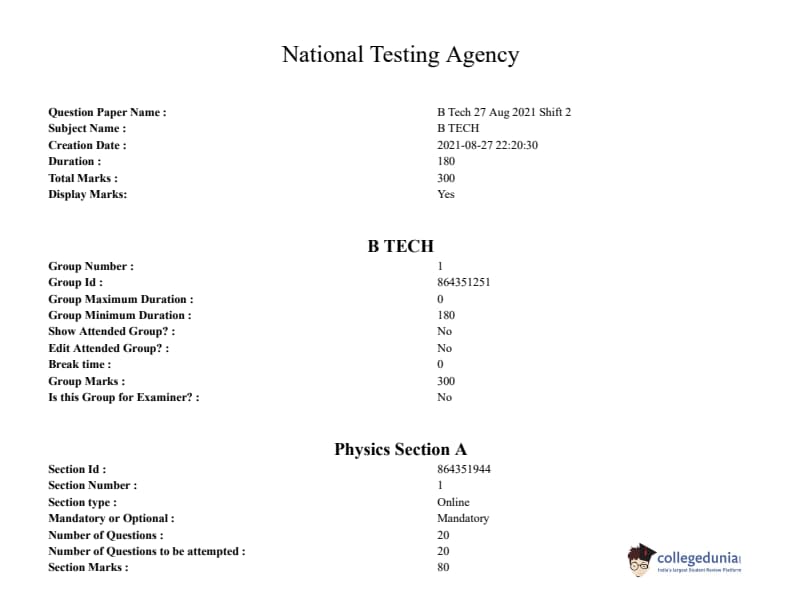 JEE Main B.E./B.Tech Question Paper- August 27, 2021 Afternoon