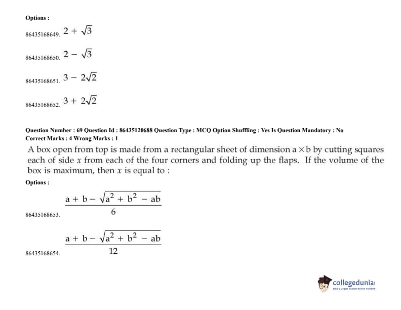 | JEE Main 2020 Question Paper | JEE Main 2019 Question Paper | JEE Main 2018 Question Paper |