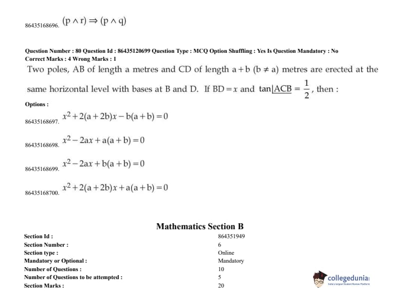 JEE Main 2021 B.E./B.Tech Question Paper for August 27, 2021 Afternoon session, was declared to be of moderate difficulty by expert educational instructors. The paper was relatively easier than that of the forenoon session. Mathematics was the toughest section of the paper, followed by Chemistry and then the Physics section. JEE Main August 27, 2021 Afternoon (Shift 2) Question Paper and Answer Key are available below for JEE Main 2022 aspirants to practice from.
