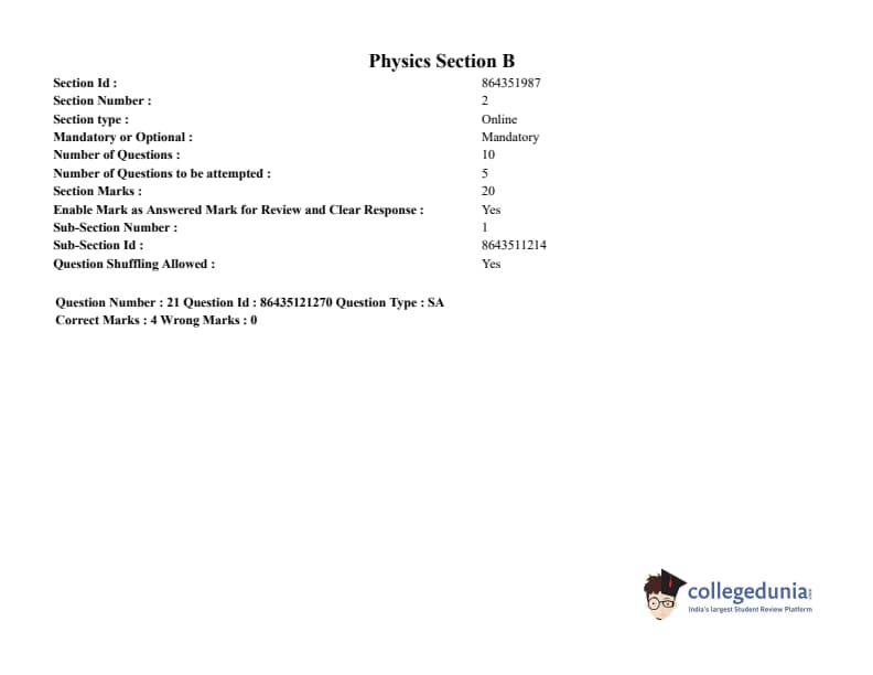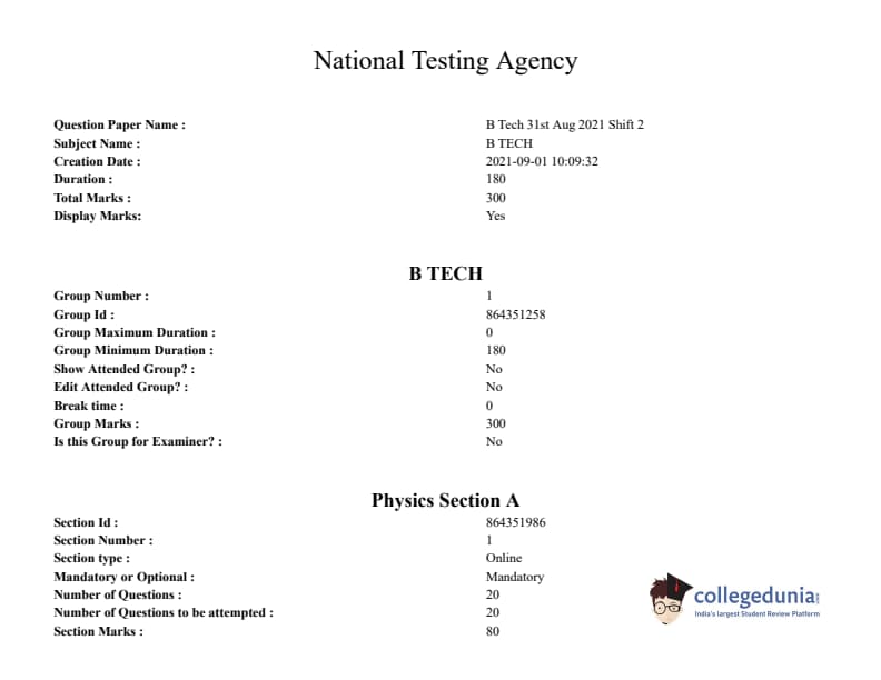 JEE Main August 31, 2021 Afternoon (Shift 2) paper was conducted from 3.00 PM to 6.00 PM. The sectional analysis of the paper is as follows: