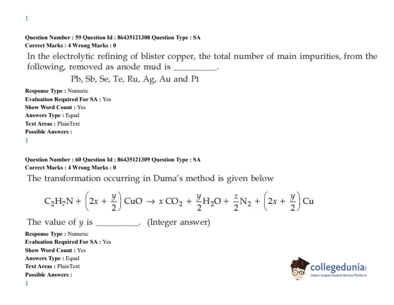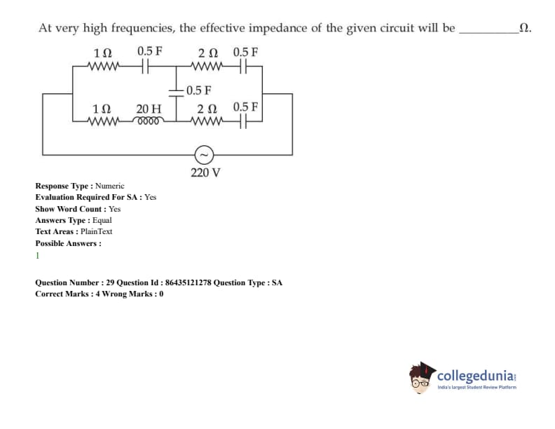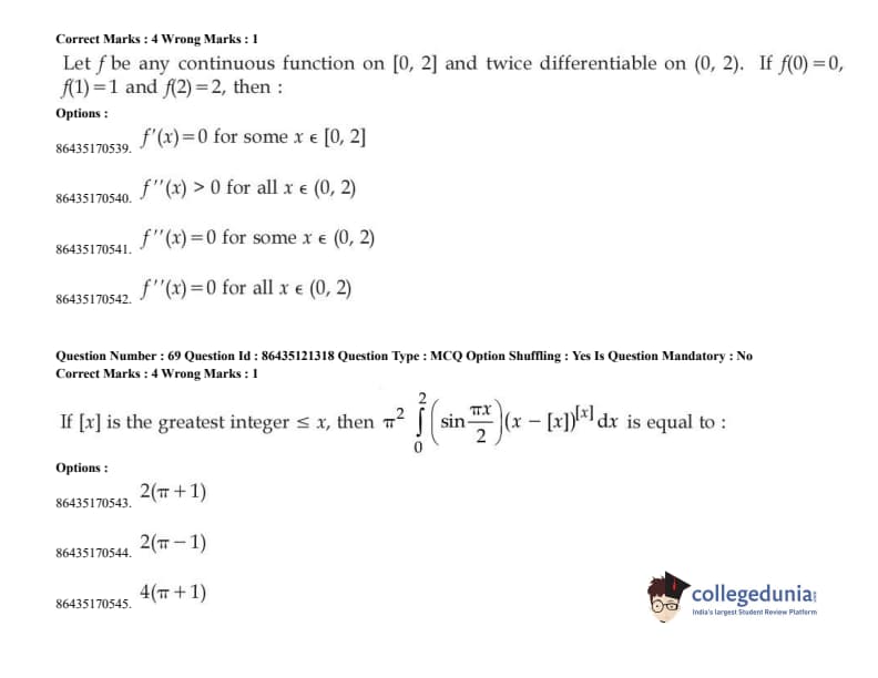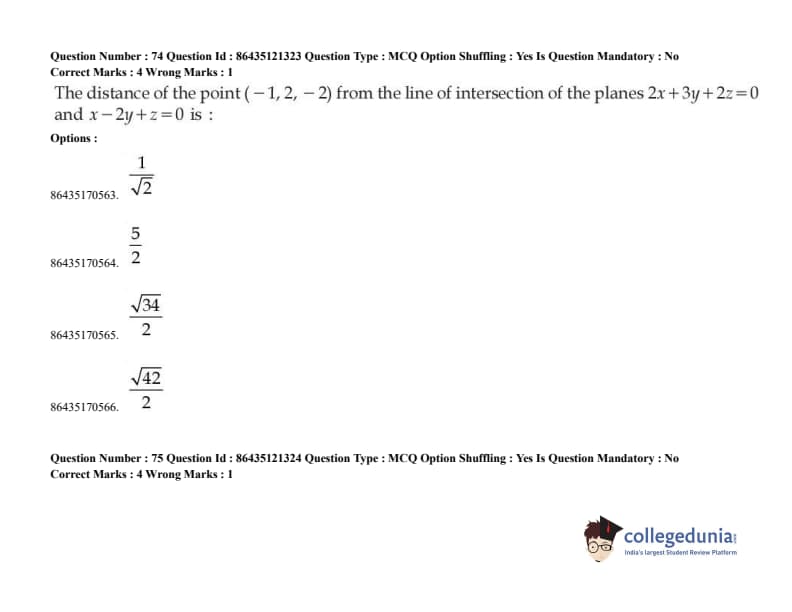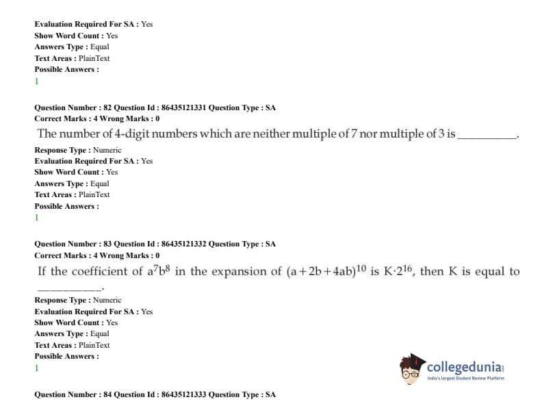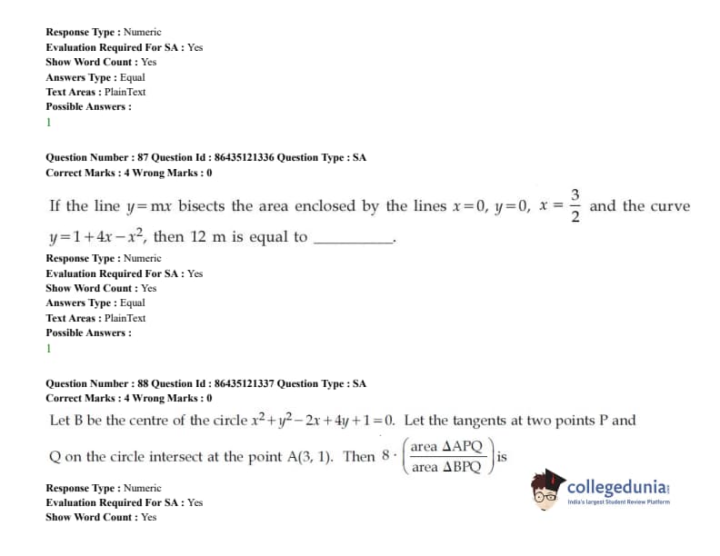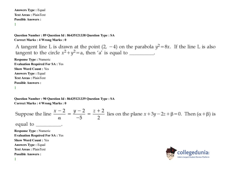JEE Main 2021 B.E./B.Tech Question Paper - August 31, 2021- Afternoon Session was termed to be of above-average difficulty by the expert educators. This was largely due to the high difficulty level of the Mathematics section, which included lengthy and intricate questions on Integral Calculus, Vector and 3D, and Coordinate geometry. The Physics section came second in terms of difficultly and included a few complex numerical from Mechanics and Thermodynamics. The Chemistry section was relatively the easiest section of the paper, with a significant amount of questions being framed from Organic Chemistry (I and II). See JEE Exam Pattern