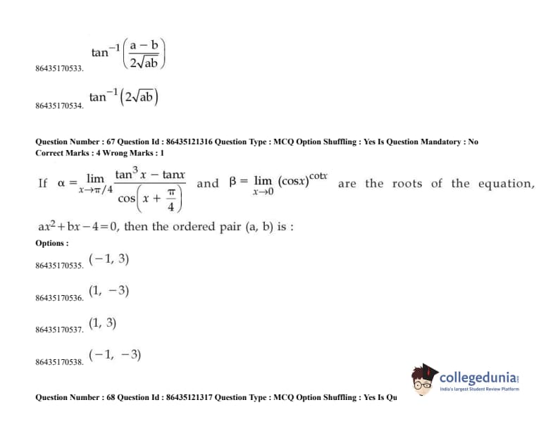 JEE Main B.E./B.Tech Question Paper- August 31, 2021 Afternoon