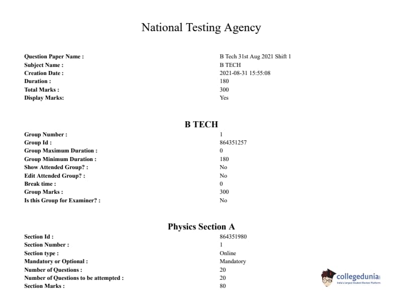 JEE Main 2021 B.E./B.Tech Question Paper August 31 (FN): Paper Analysis
