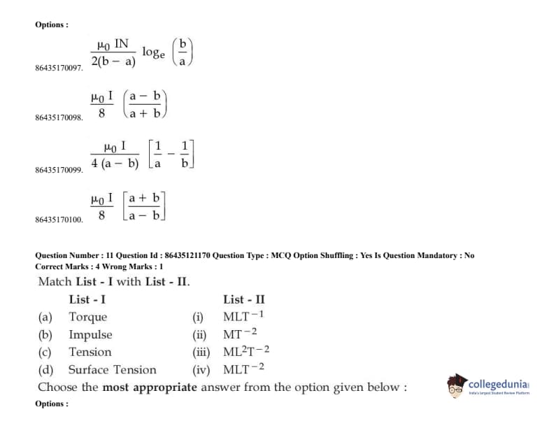 JEE Main B.E./B.Tech Question Paper- August 31, 2021 Forenoon