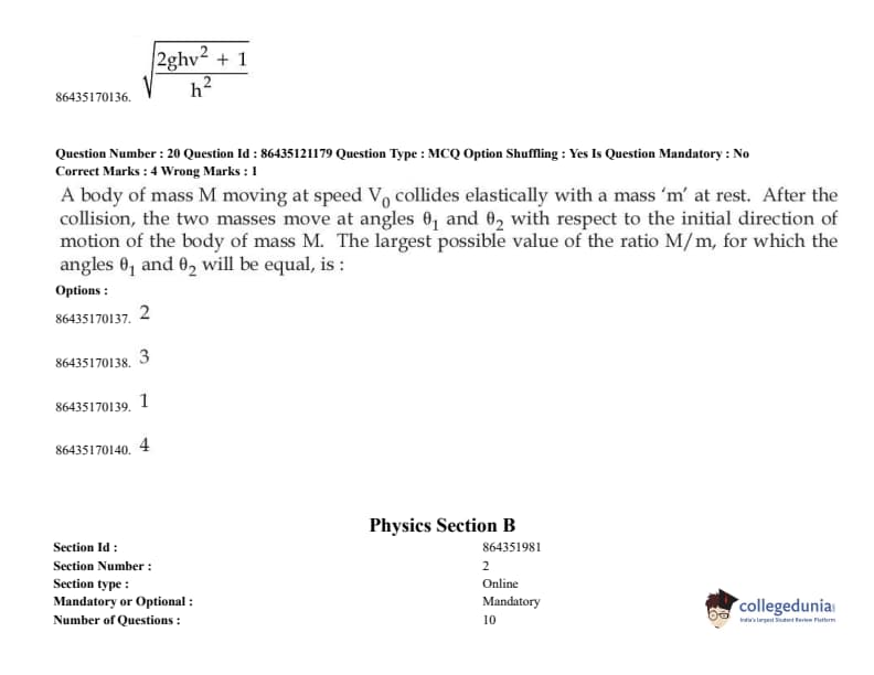 JEE Main Question Paper for August 31, 2021, Forenoon Session was termed to be of moderate difficulty by the experts. According to the test-takers, the Physics section was the most difficult section of the paper. Second on the difficulty scale was the Mathematics Section. The Chemistry section was the easiest of the three sections. In keeping with JEE Main Exam Pattern, each section featured 30 questions (20 MCQs and 10 NATs), with the option of attempting any 5 NAT questions for a total of 25 attempts by the candidates. Candidates preparing for JEE Main 2022 can download the August 31, 2021 Shift 2 Question Paper and its solutions through the links provided below.