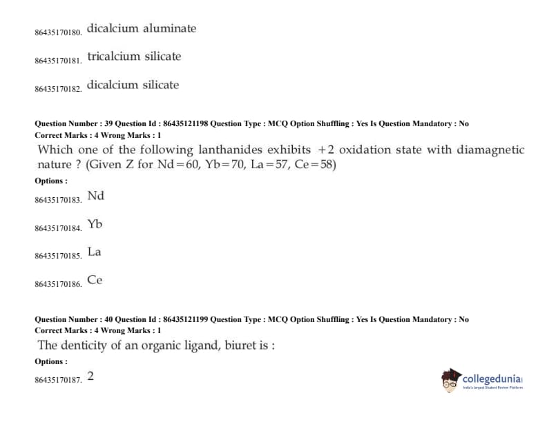 - Dominant units in the paper included: Organic Chemistry II (36%), Inorganic Chemistry I (20%), and Physical Chemistry II (20%)