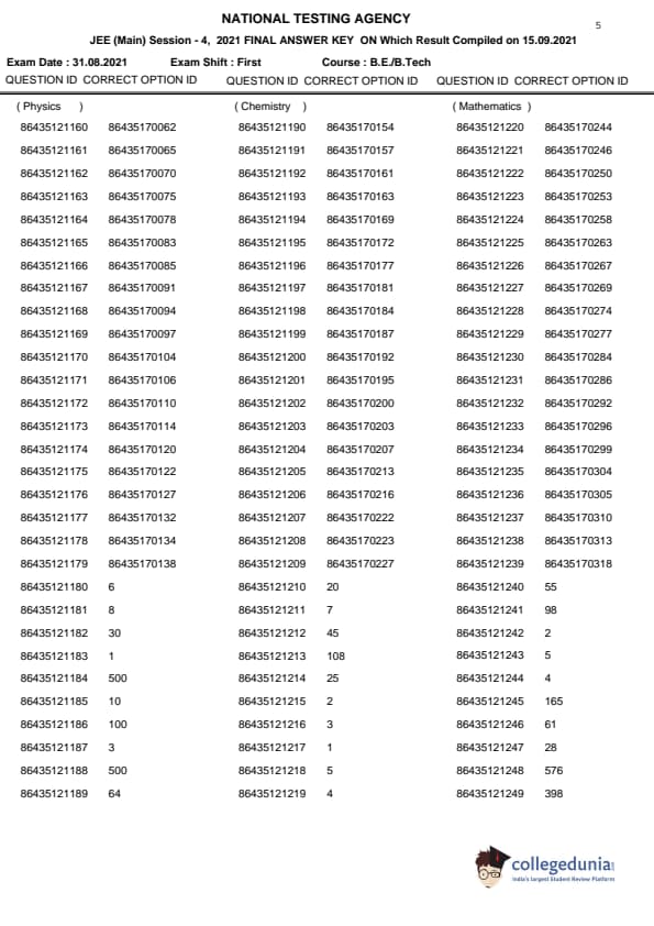 For the benefit of the aspirants, collegedunia has provided the links to downloadable JEE Main Question Paper and Answer Key PDFs below.