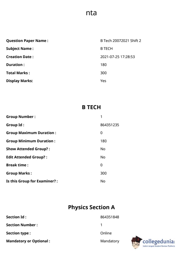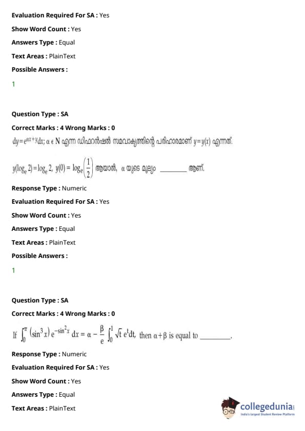 JEE Main B.E./ B.Tech ചോദ്യപേപ്പർ- ജൂലൈ 20, 2021 ഉച്ചയ്ക്ക്