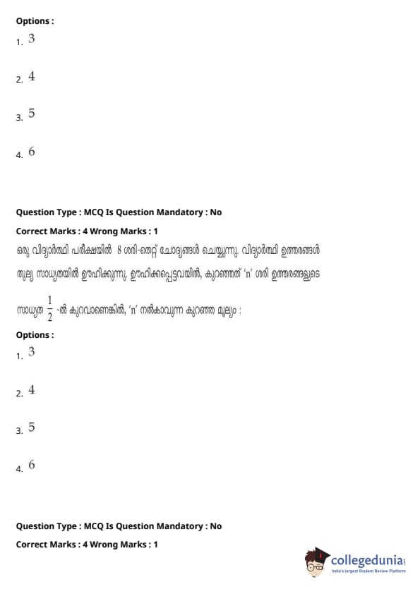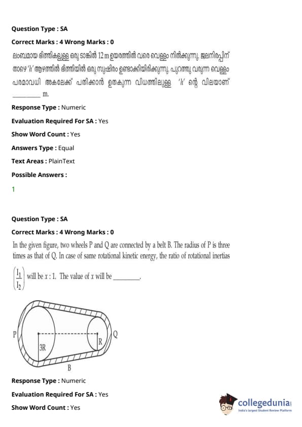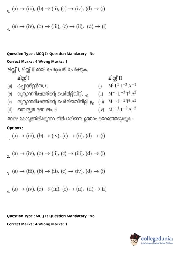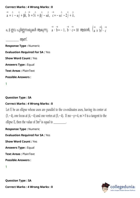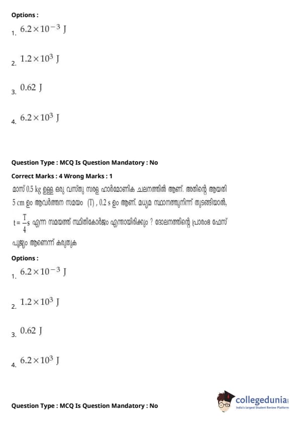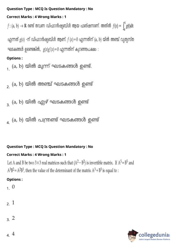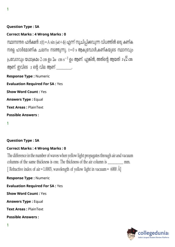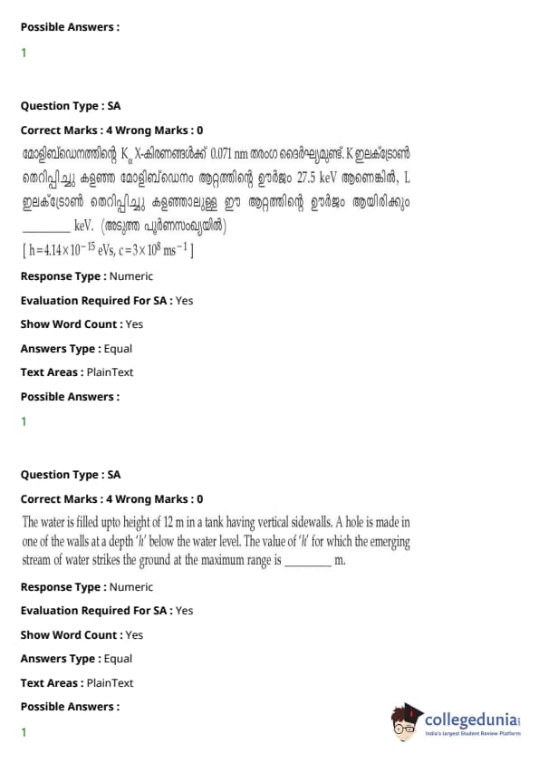 | JEE Main 2020 ചോദ്യപേപ്പർ | JEE Main 2019 ചോദ്യപേപ്പർ | JEE Main 2018 ചോദ്യപേപ്പർ |