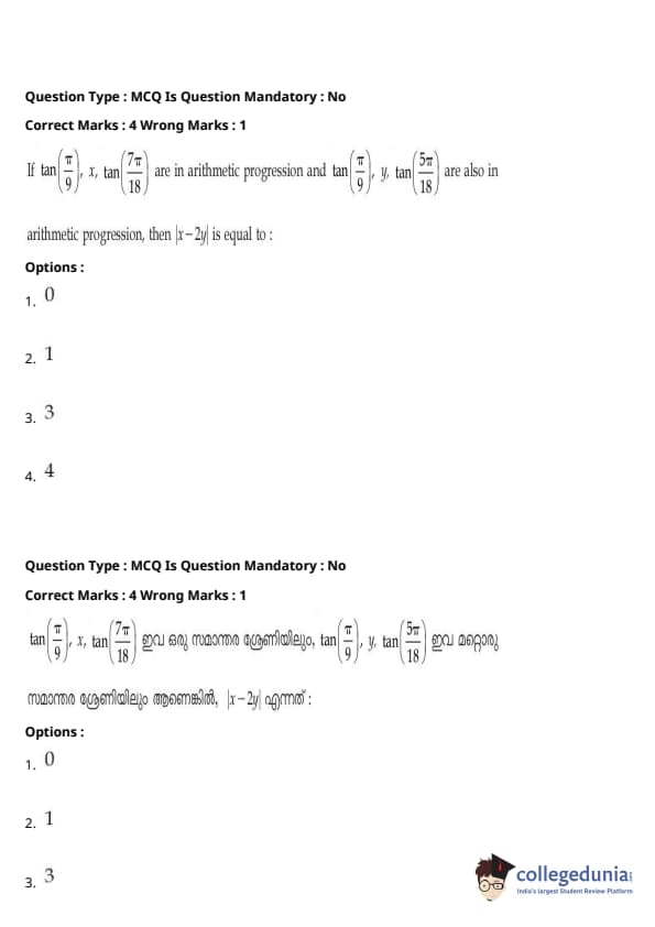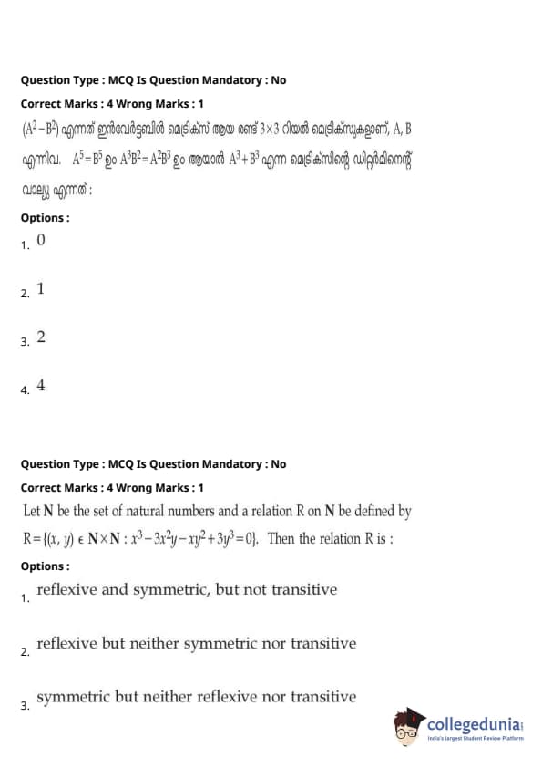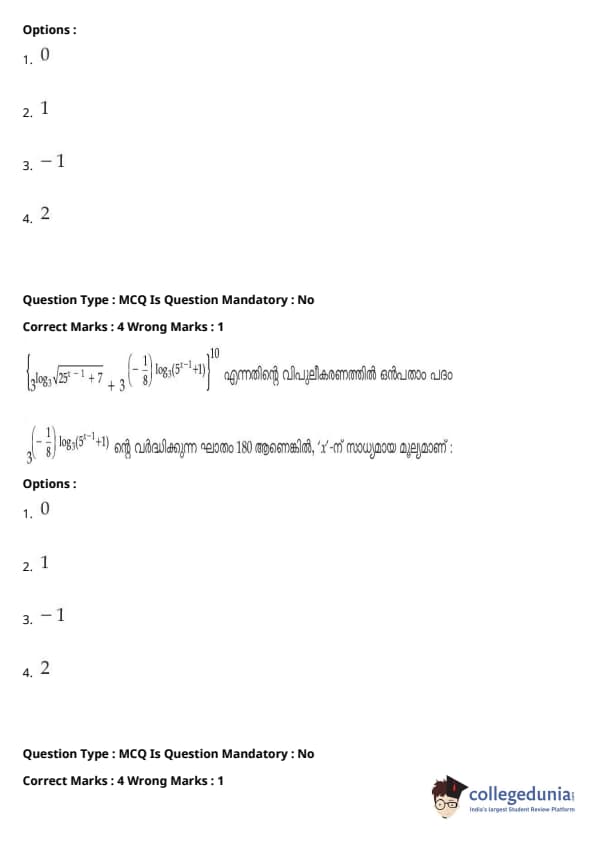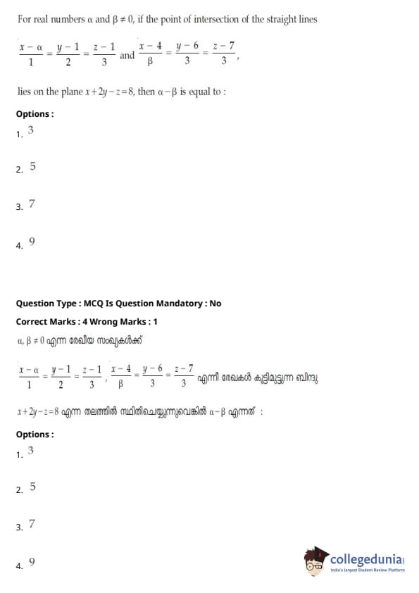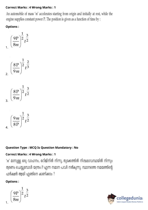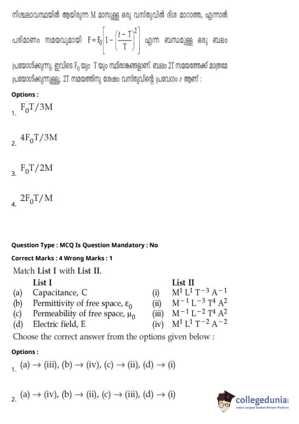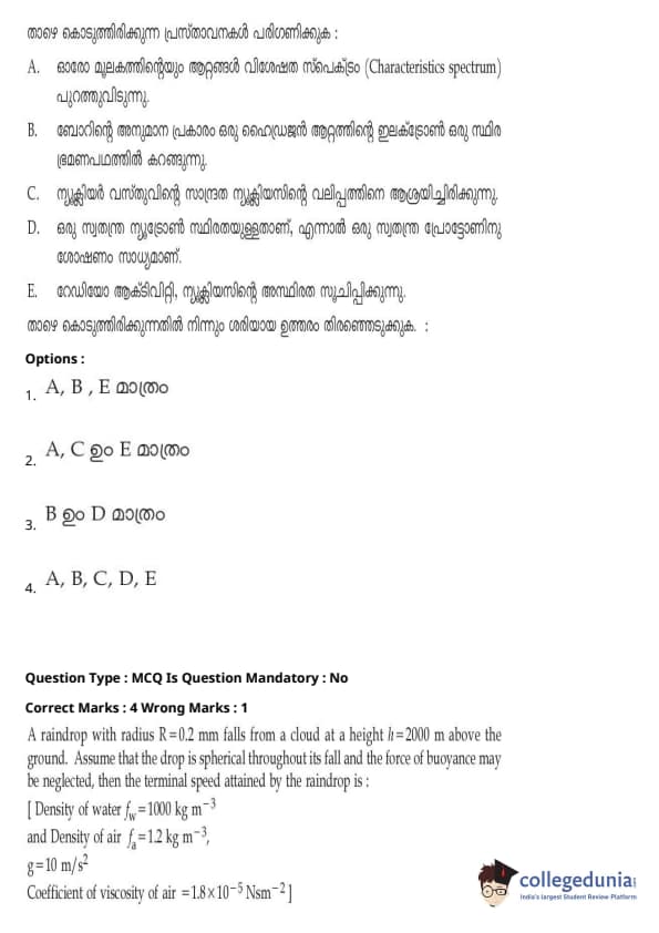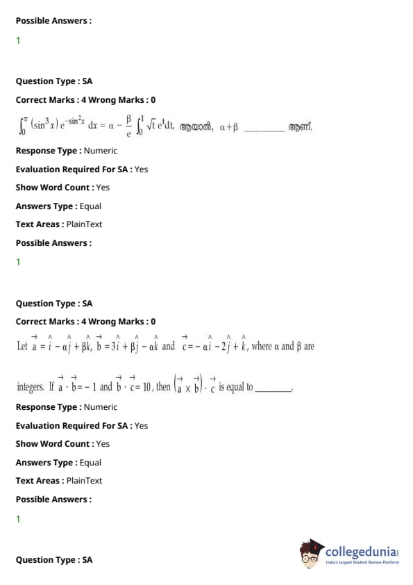 | JEE Main 2020 ചോദ്യപേപ്പർ | JEE Main 2019 ചോദ്യപേപ്പർ | JEE Main 2018 ചോദ്യപേപ്പർ |