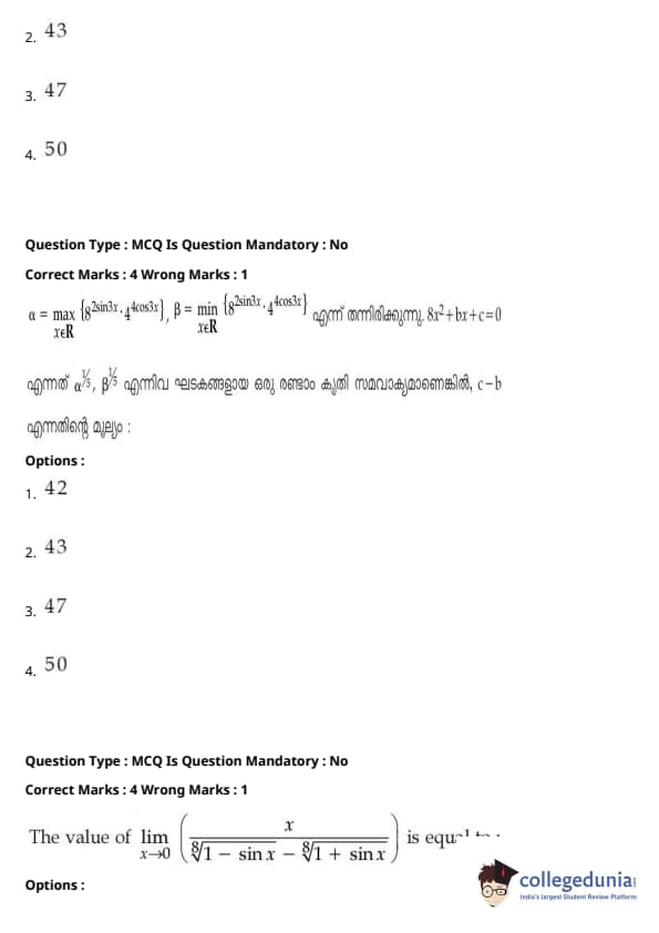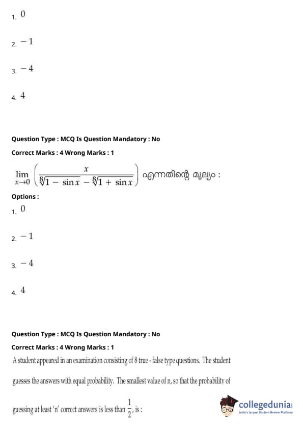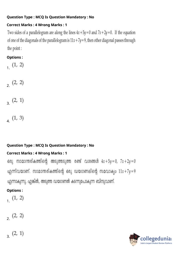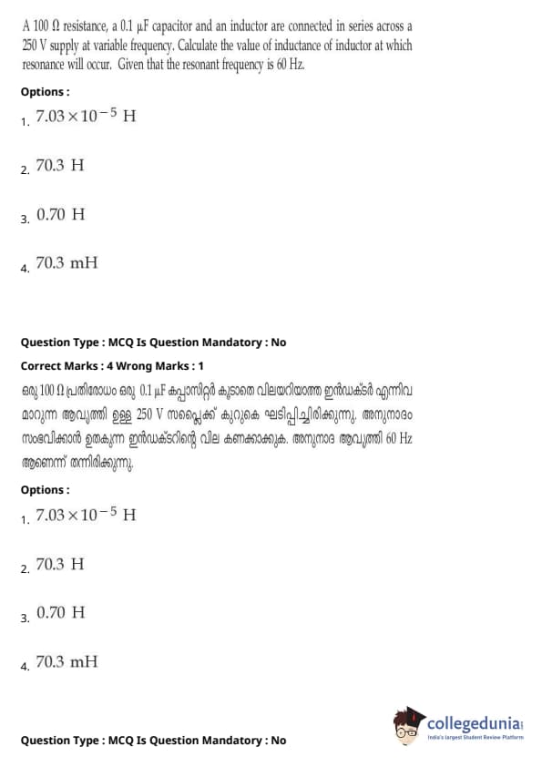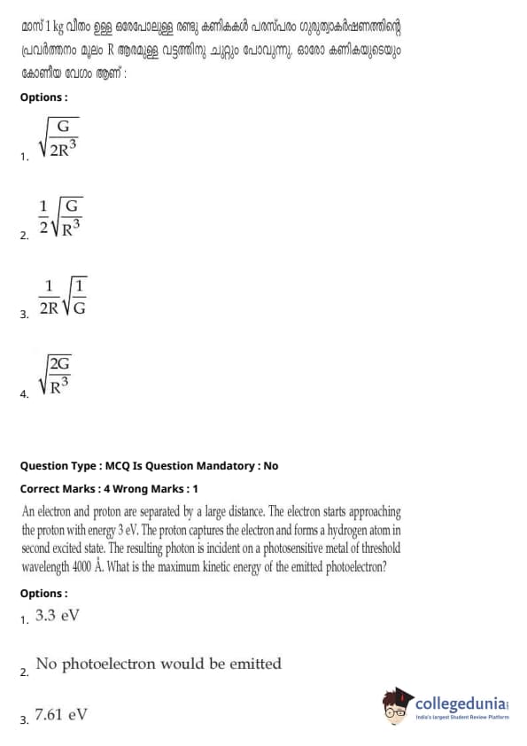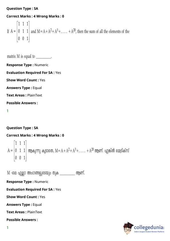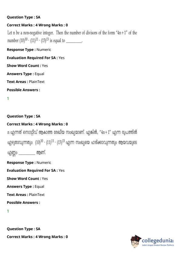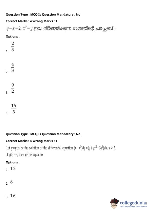 | JEE Main 2020 ചോദ്യപേപ്പർ | JEE Main 2019 ചോദ്യപേപ്പർ | JEE Main 2018 ചോദ്യപേപ്പർ |
